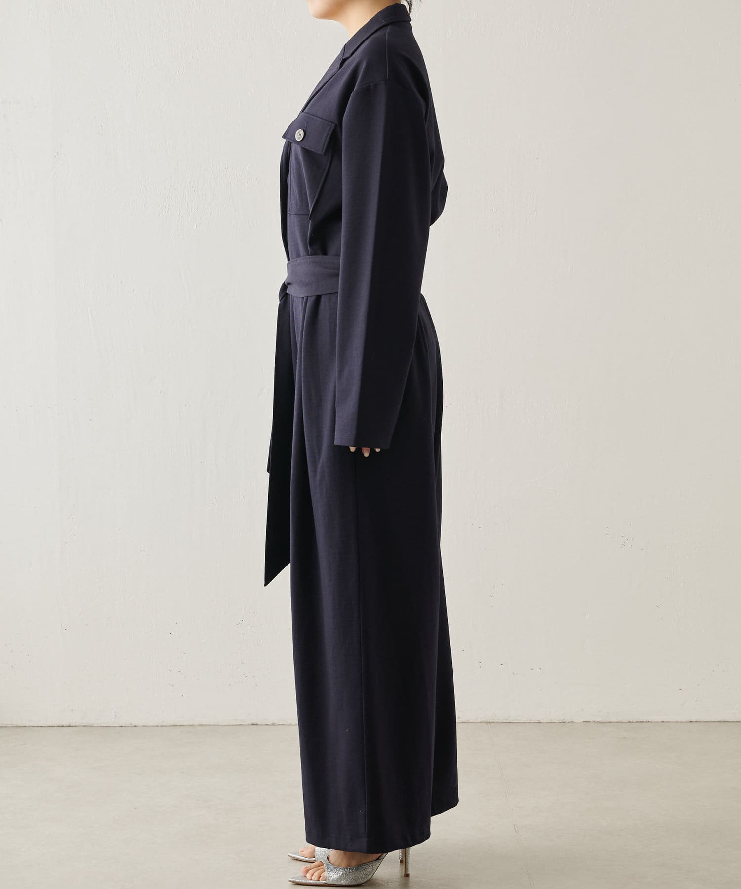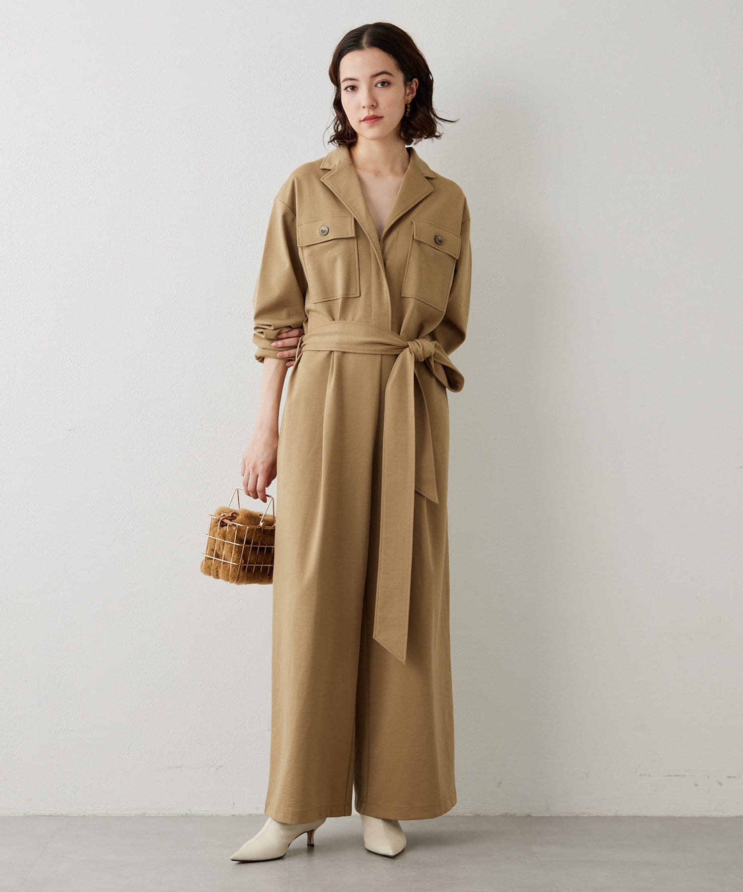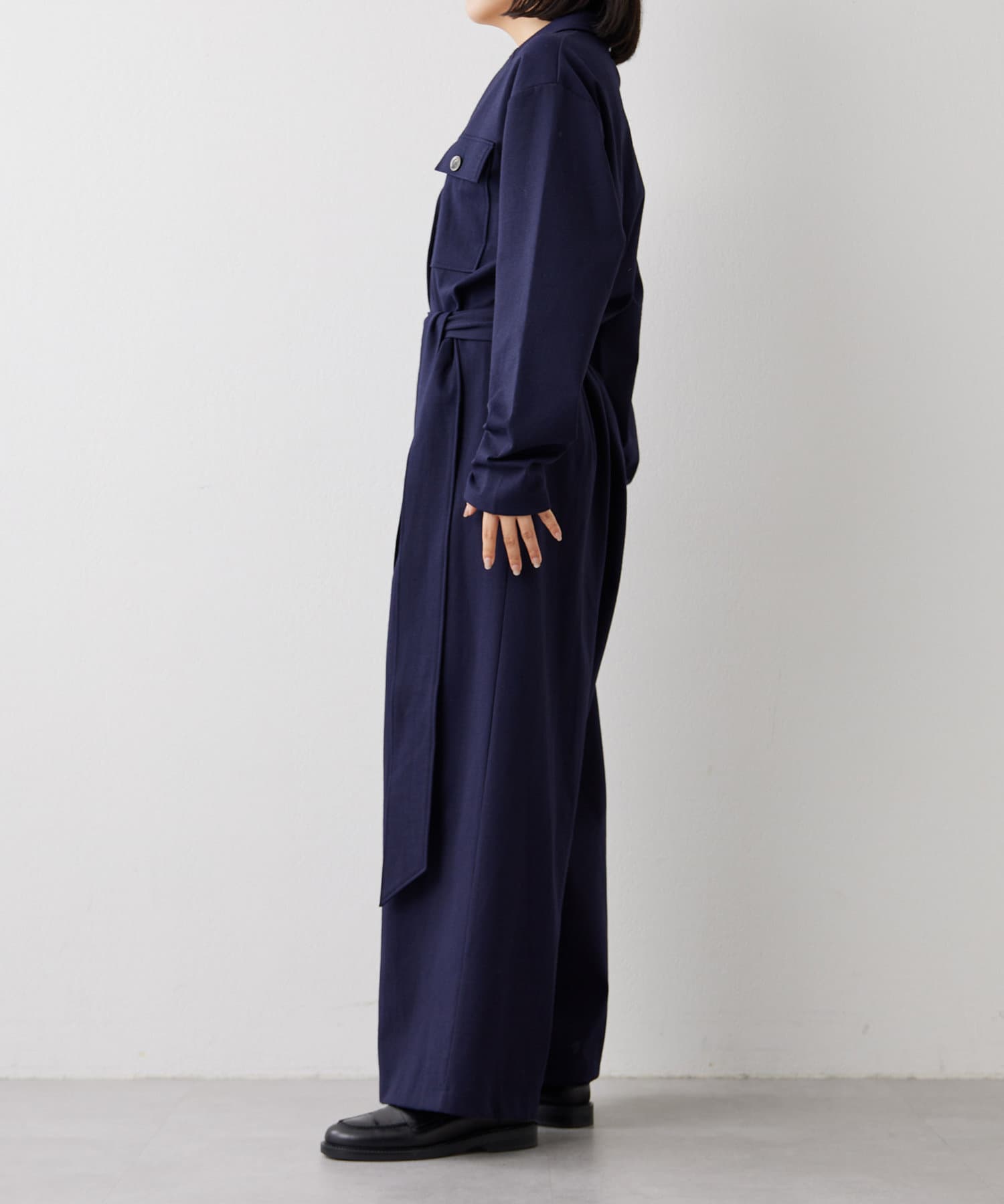 ■あえてメンズのジャンプスーツのようなデザインに仕上げた一着。