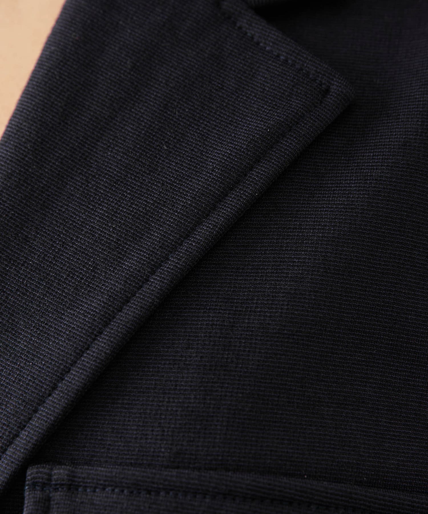 ポリウレタンを交編しているため高ストレッチ性があり、ダブルの組織で形態の安定したハリコシのある、梳毛ウール糸を用いたストレッチポンチ素材。