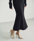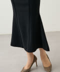 ■タイトなラインから裾に広がるスカート部分は、後ろにフレア分量を多めに入れ、足さばきによりフレアが際立つシルエットに。