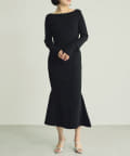 ■視覚効果で細く見えるバランスに仕上げた足首の覗く着丈など、細部までこだわりの詰まった大人のニットワンピース。