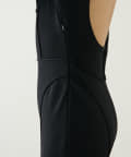 背中の開きが潔く、一気に抜け感が出ます。普段38サイズで、38サイズを着用。着心地はかなりタイトめに感じました。その分、体を引き締めて、更に体のラインを引き上げてくれるので、きれいなシルエットとなります。