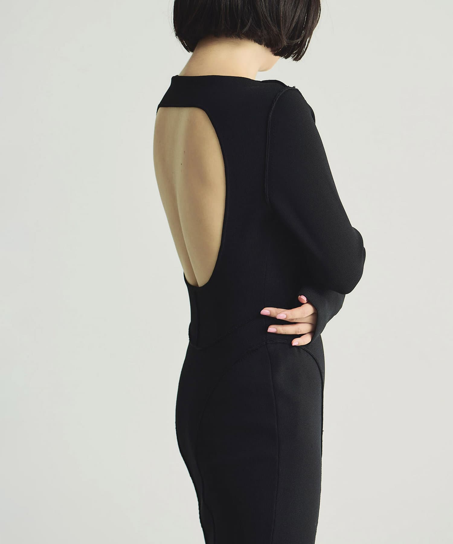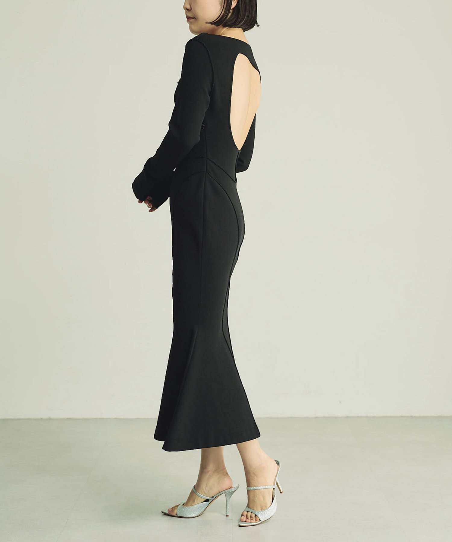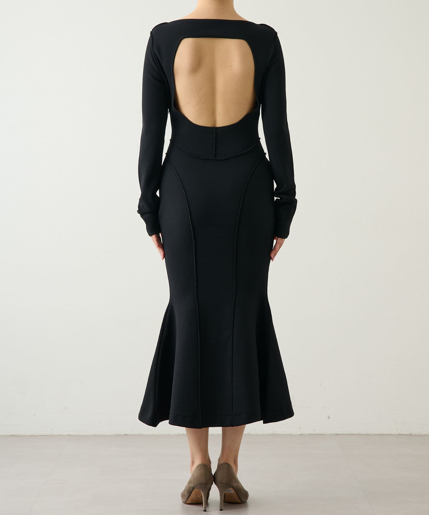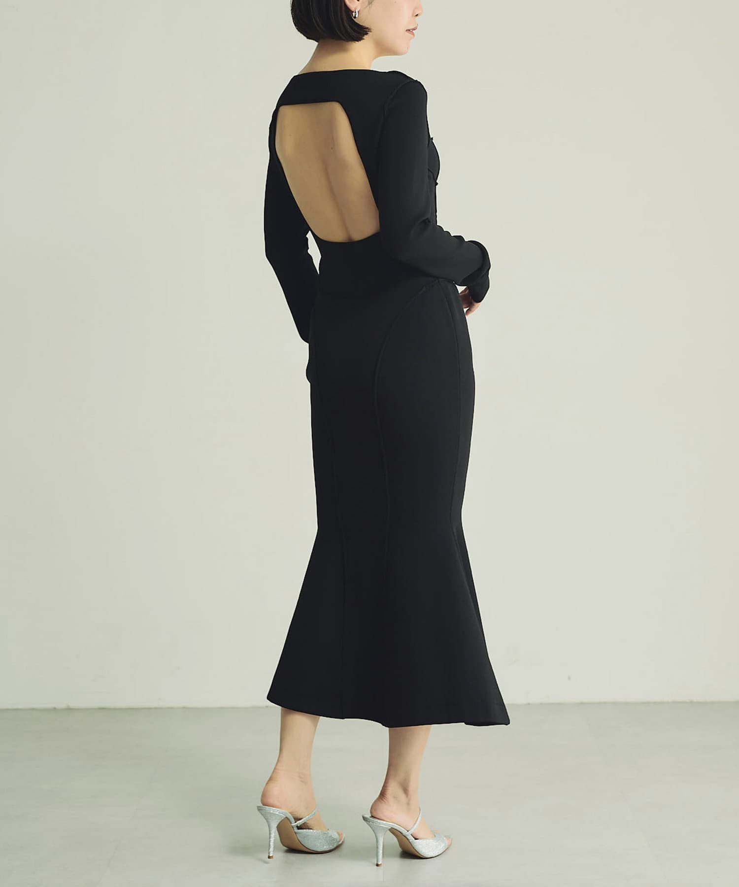 ■身体のラインを美しく見せてくれるバックオープンニットドレス。