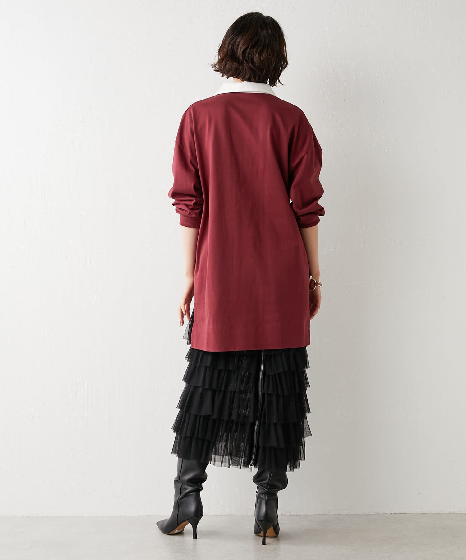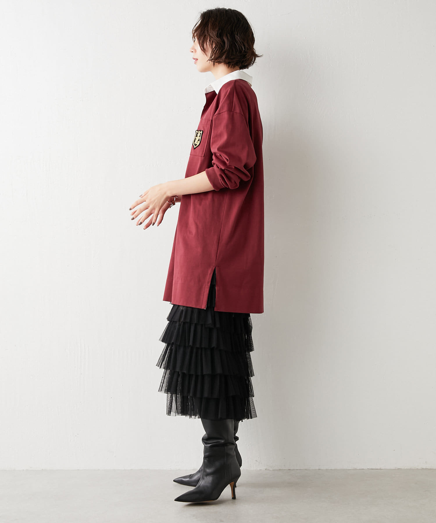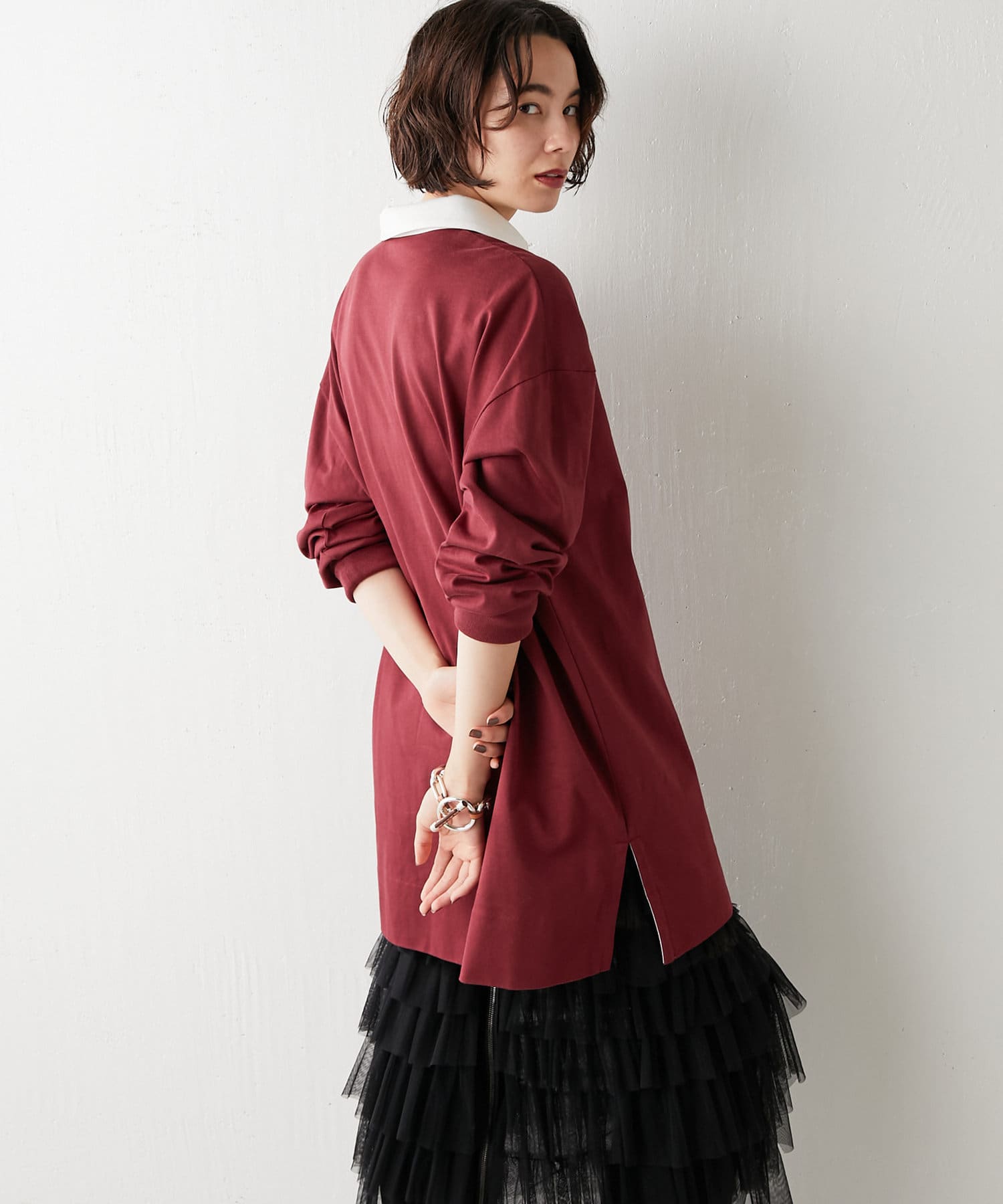 ■ビッグシルエットが新鮮なチュニック丈のラガーシャツ。