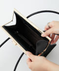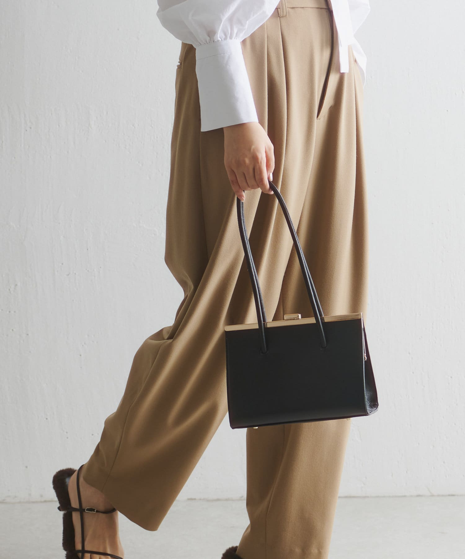■ゴールドのフレームが凛とした印象のがま口バッグ。