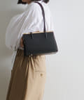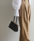 ■細めのハンドルや肩掛けできる長めのバランスに仕上げたことでモード感漂う雰囲気に。