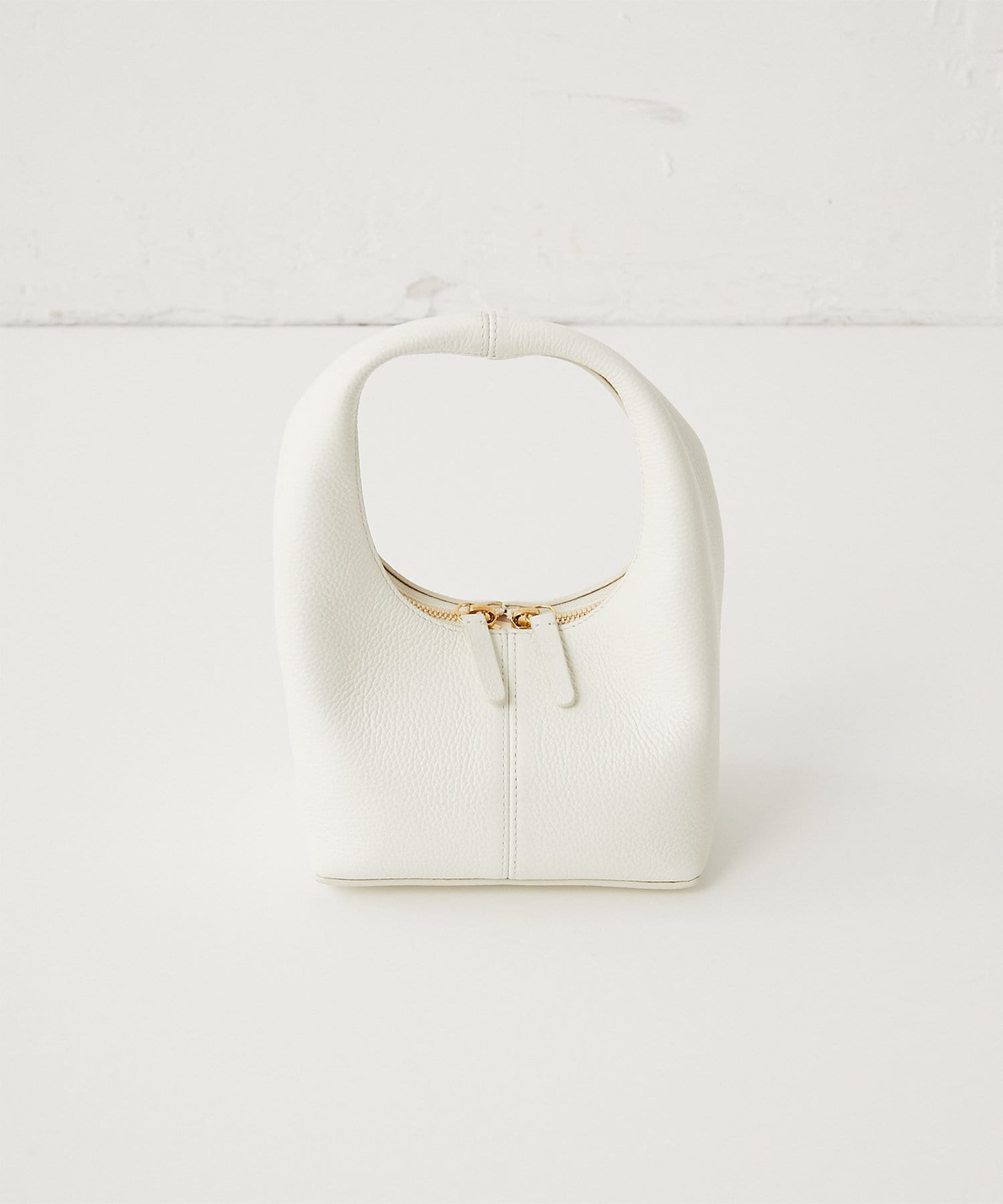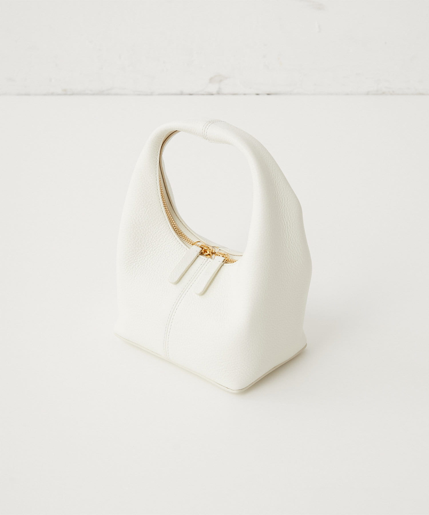 ■コロンとした丸みのあるフォルムにゴールドのジップが際立ち、シンプルながらも華やかさのあるデザイン。