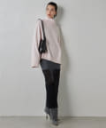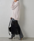 他には無いデザインが魅力的なスカート。サイズ感は細身でウエスト部分も伸びないので腰周りを美しく魅せてくれます。バックスリットがしっかり入っているのと、透けもあるので、肌見せが苦手な方はロングブーツ合わせがオススメです。