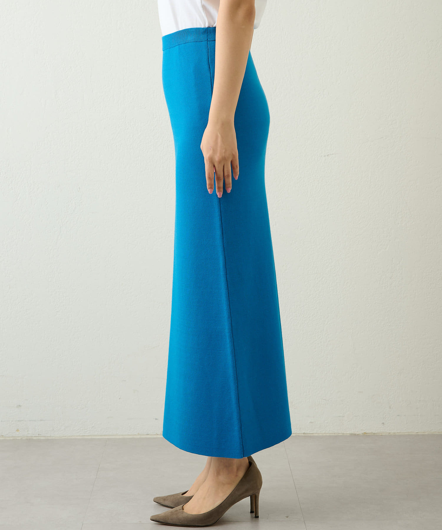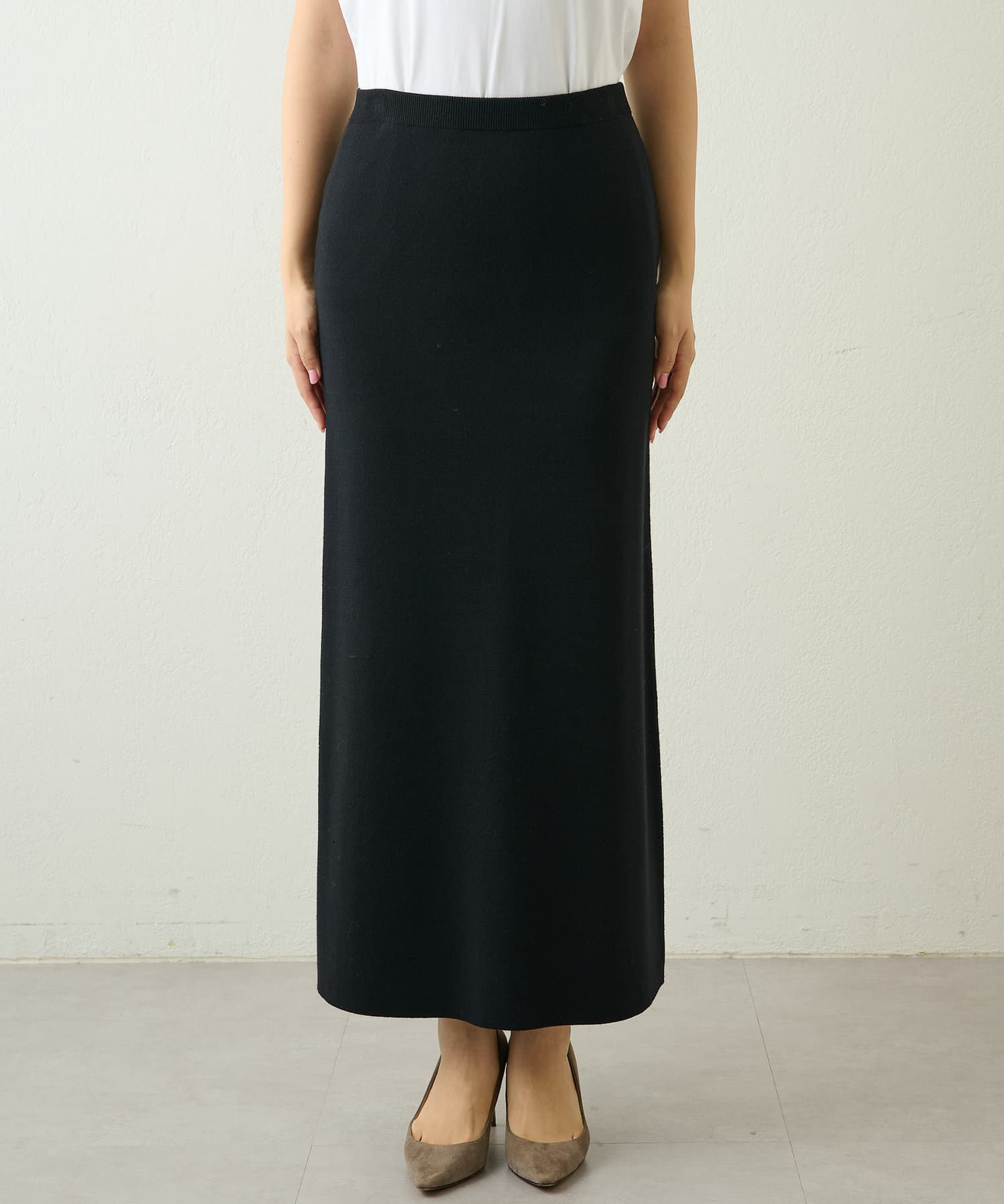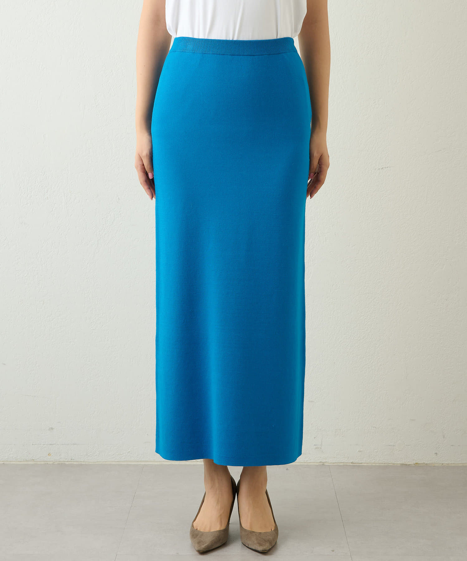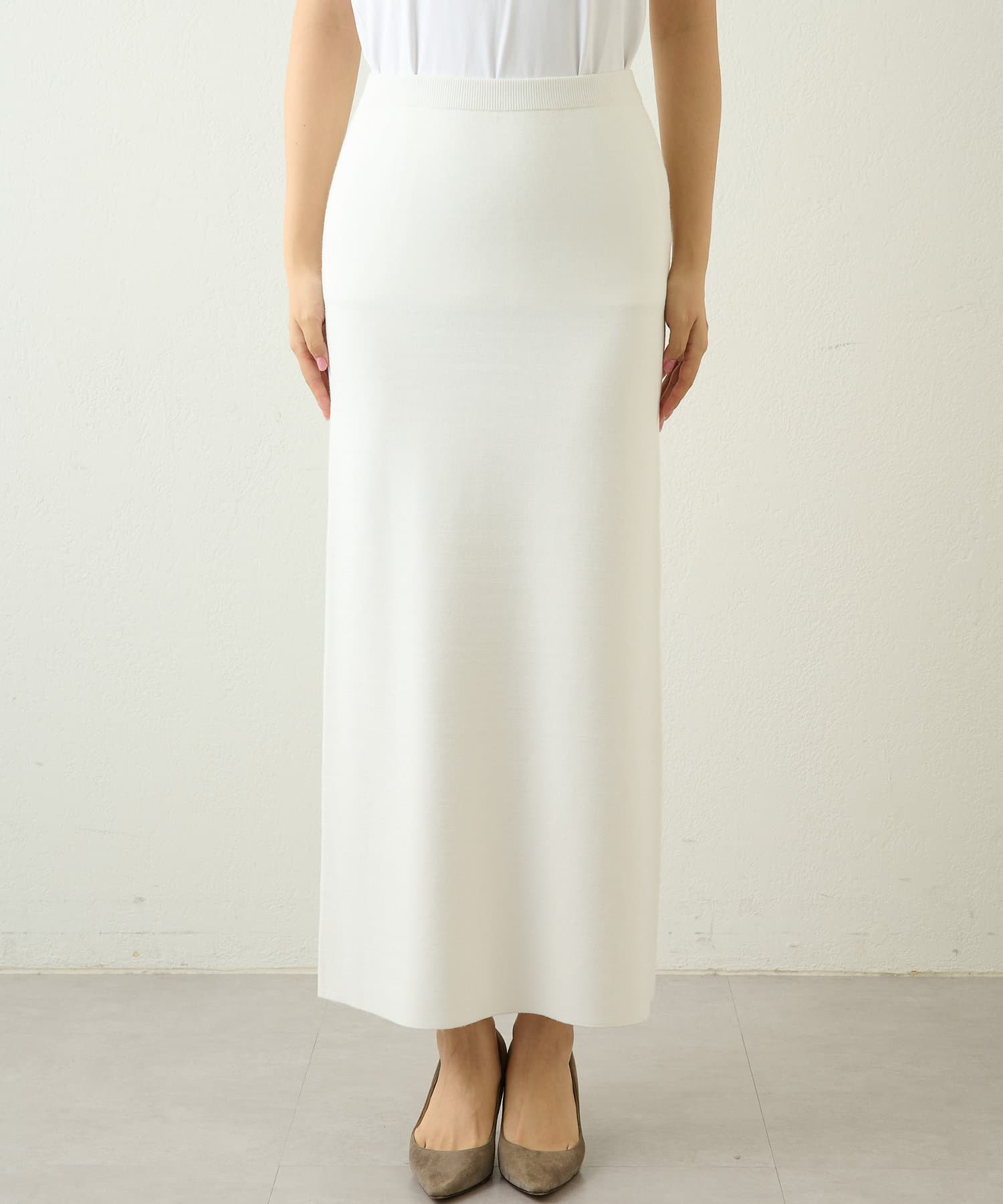 シンプルなシルエットが女性らしい、軽やかなニットスカート