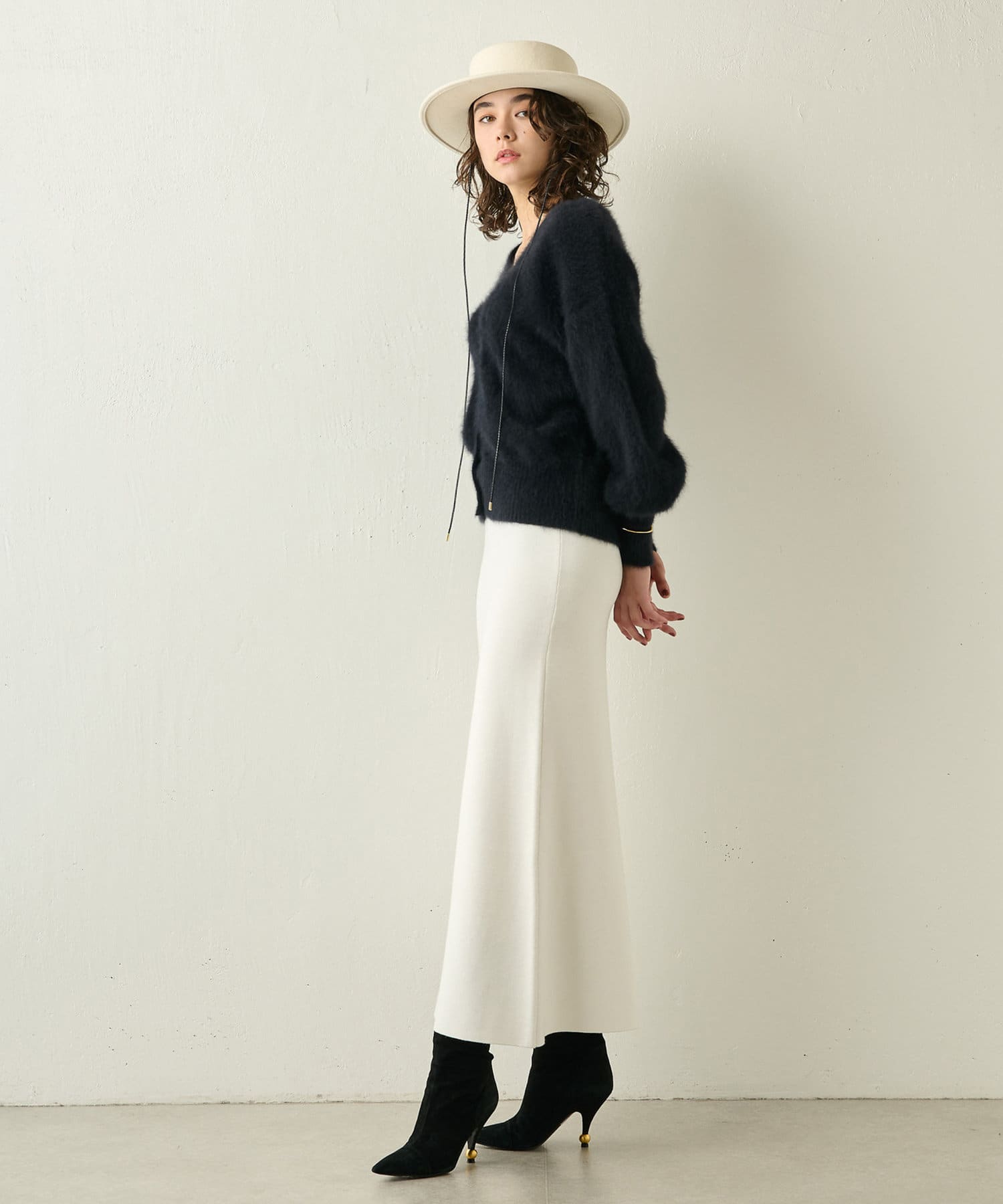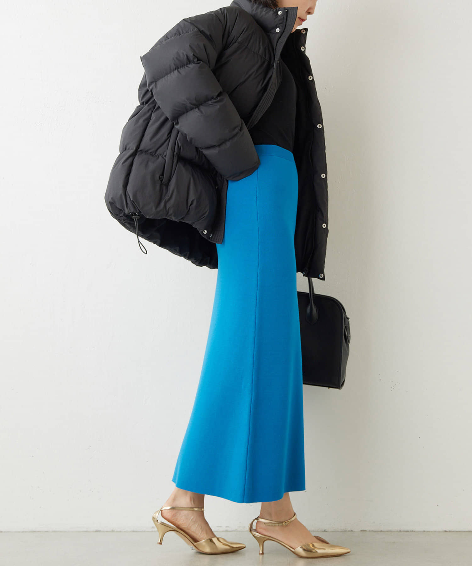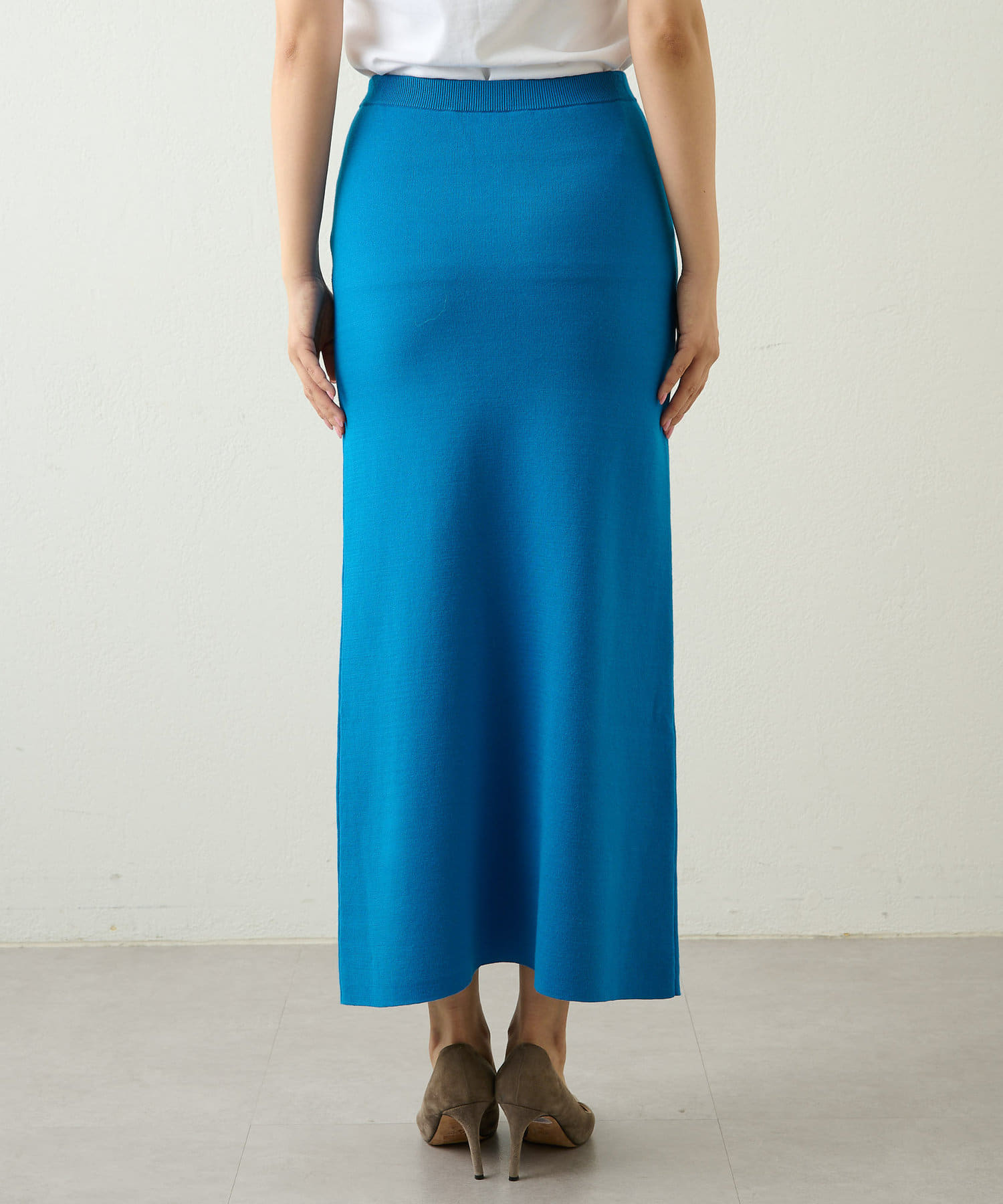 シンプルなシルエットが女性らしい、軽やかなニットスカート