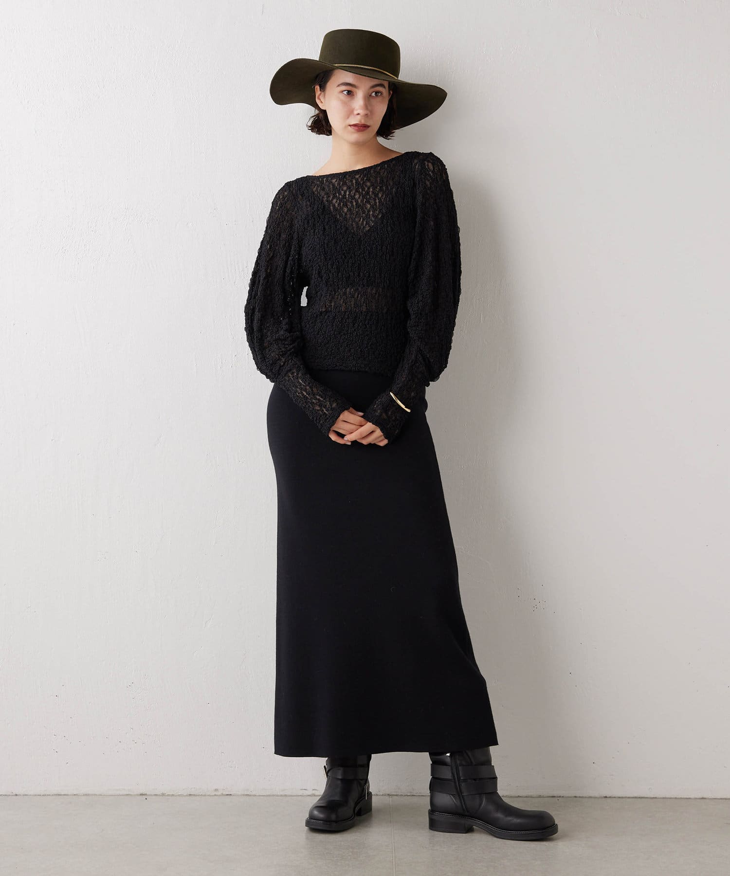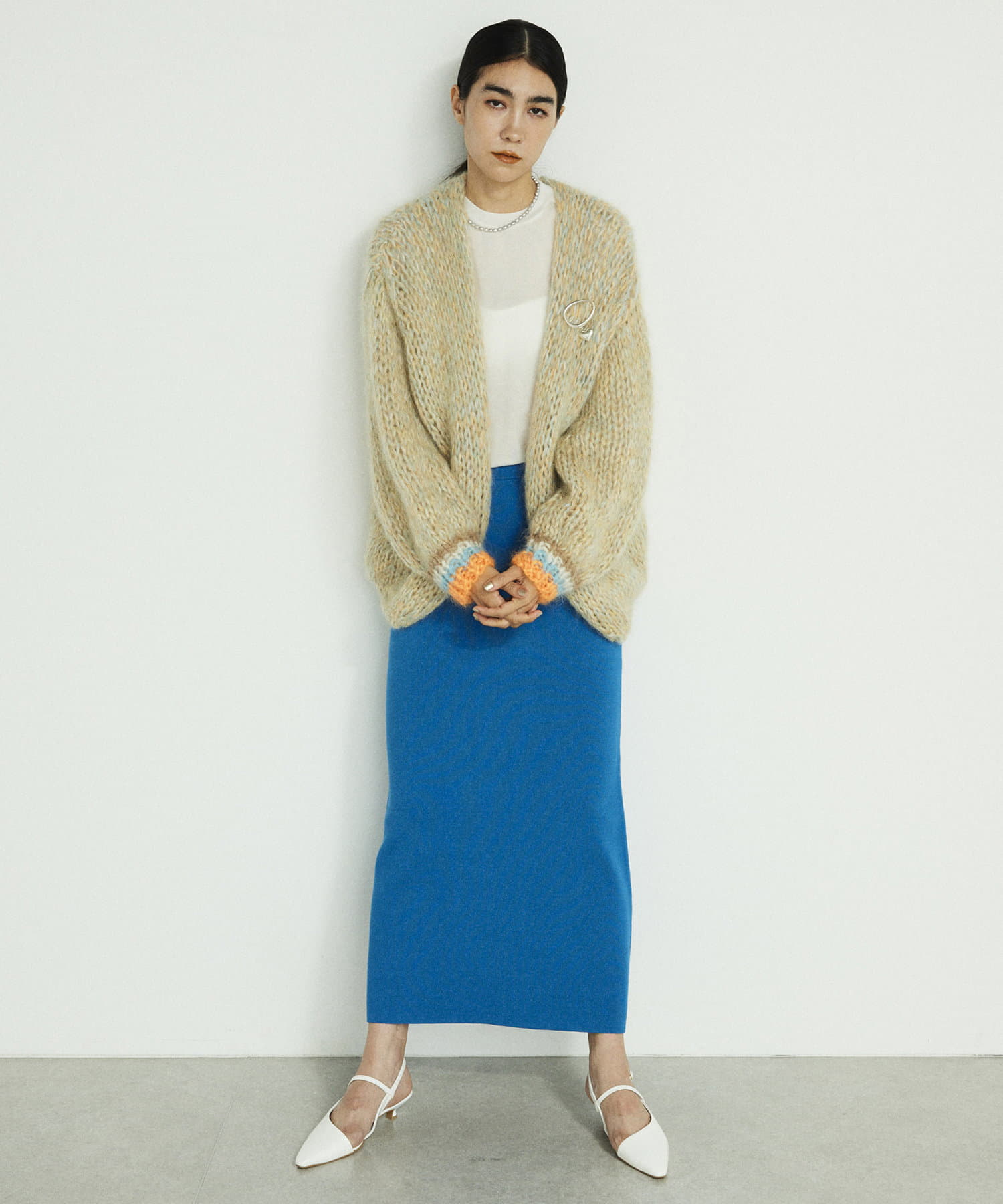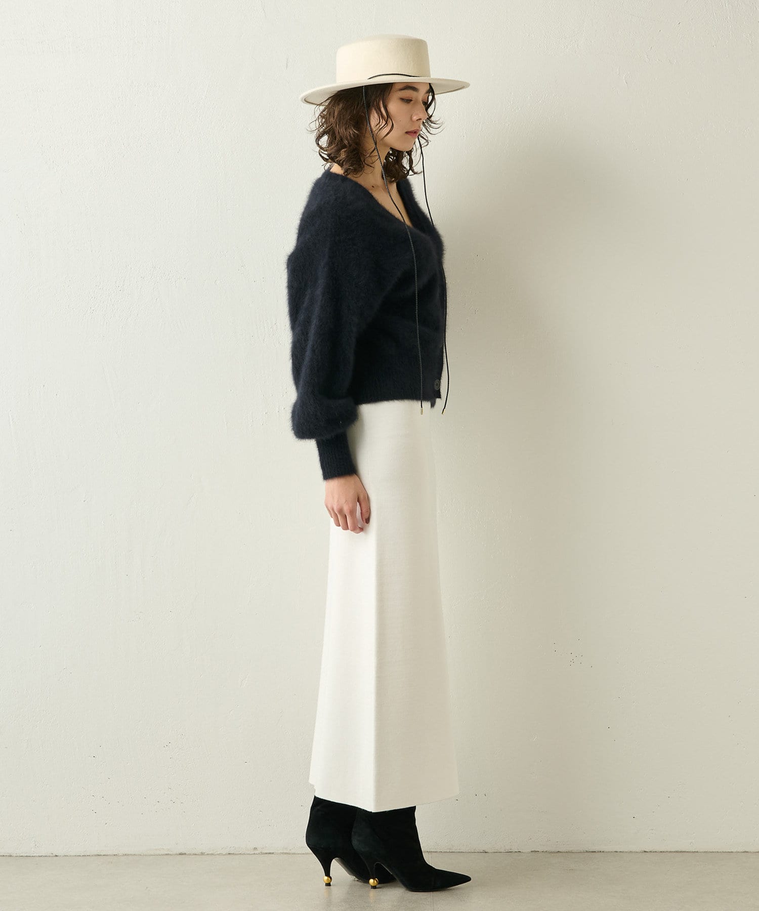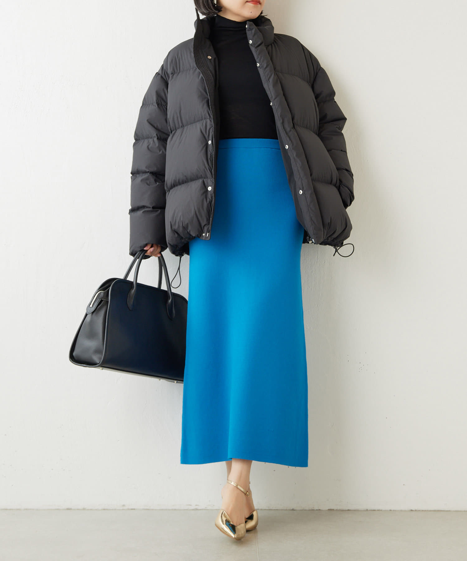 シンプルなシルエットが女性らしい、軽やかなニットスカート