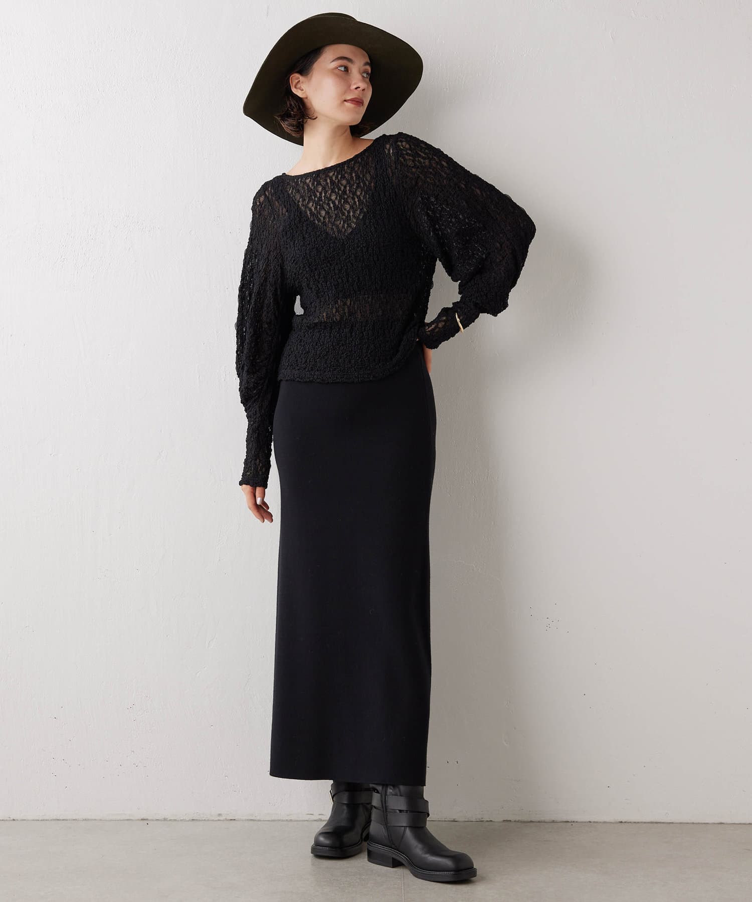 ■接結編みにすることで程よい肉感がボディラインを拾いにくく、女性らしいシルエットをきれいに演出。