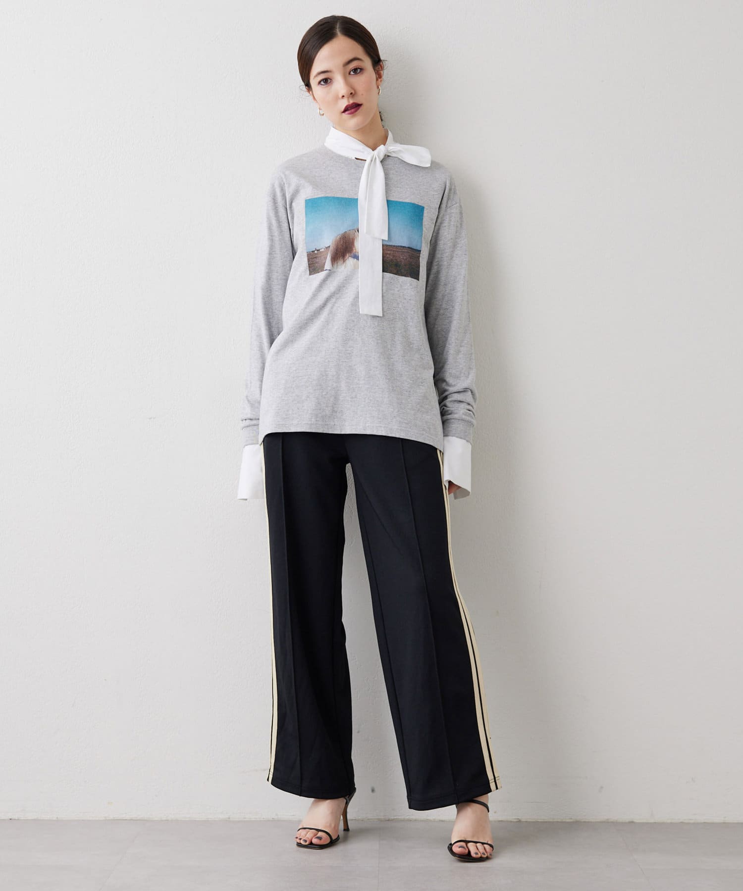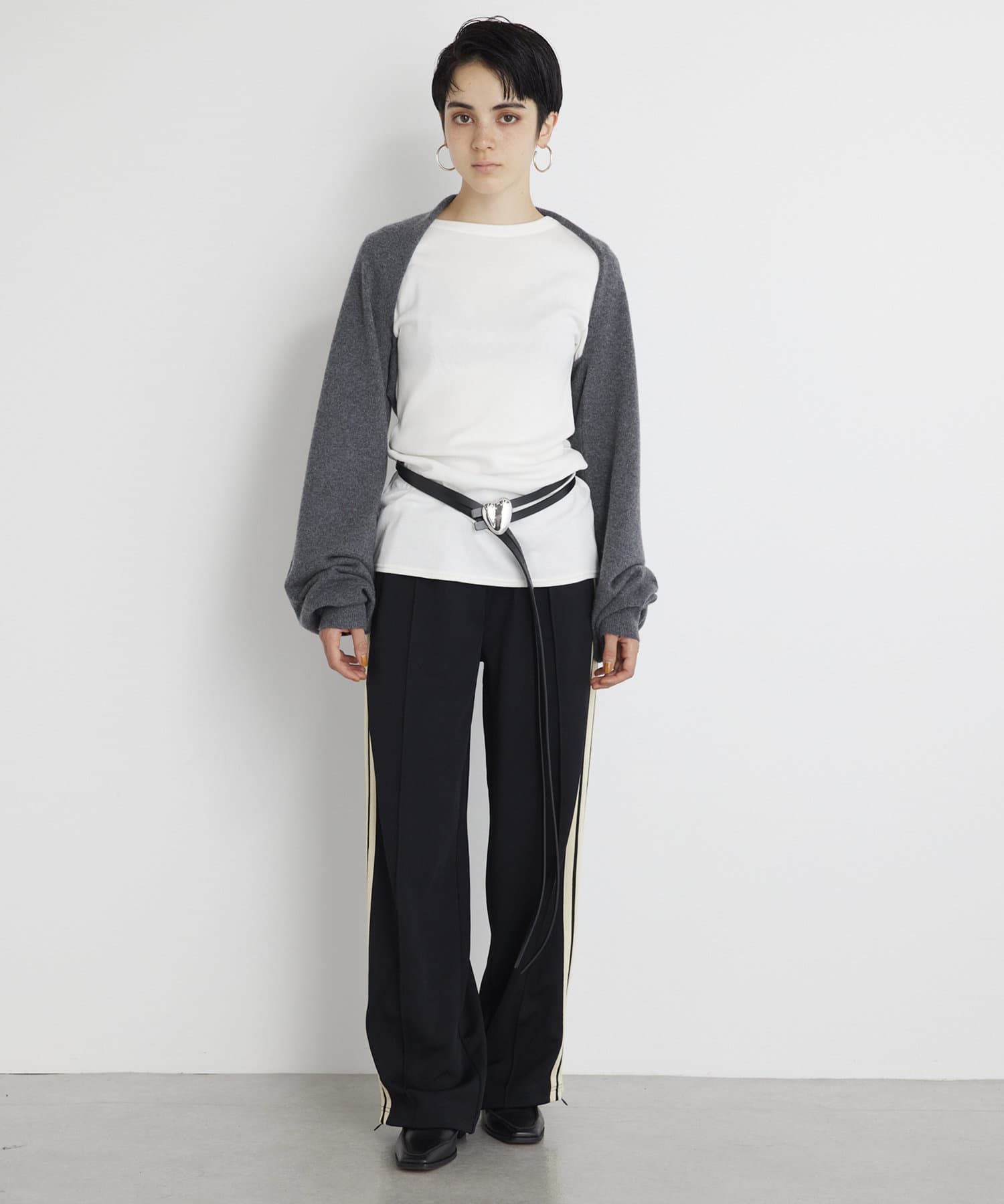 取り入れるだけで今年らしいスタイリングに決まります。肌触りも良く、伸縮性のあるジャージー素材でリラックス感のある履き心地です。裾にはファスナーがあり、シルエットを変えて楽しむ事も出来ます。