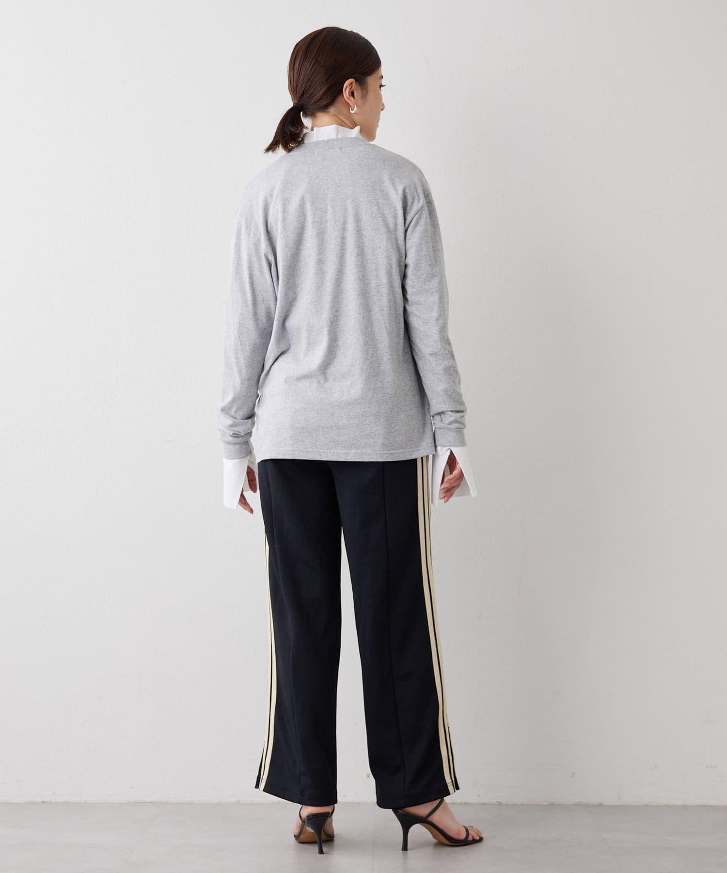 ■スポーティーなデザインながら、センタープレスや太すぎないストレートシルエットで大人が取り入れやすい一着に。