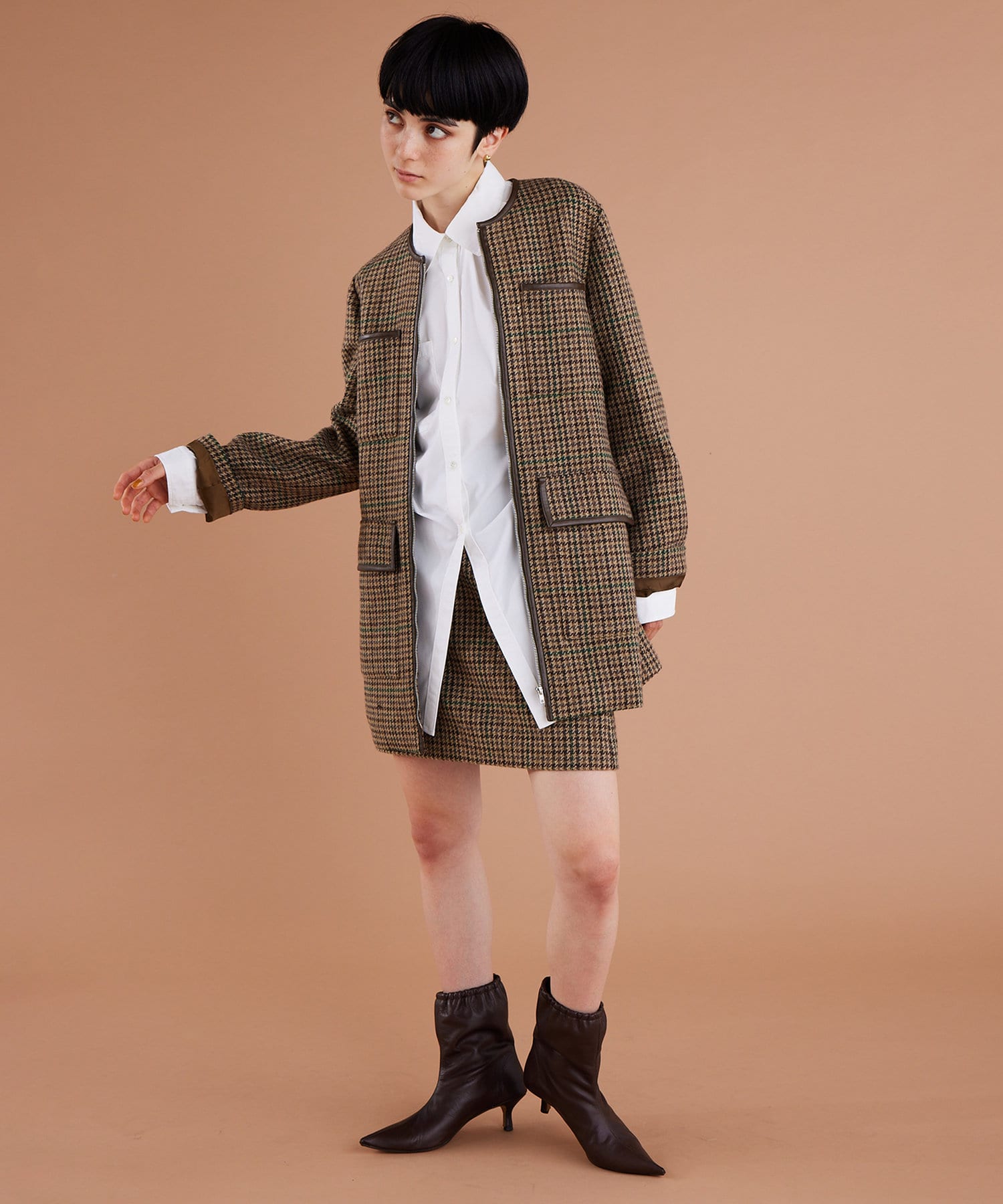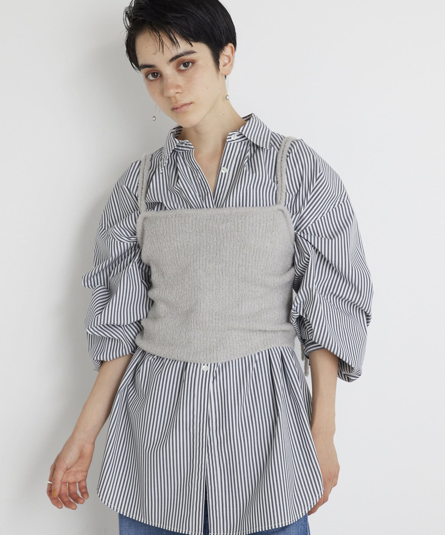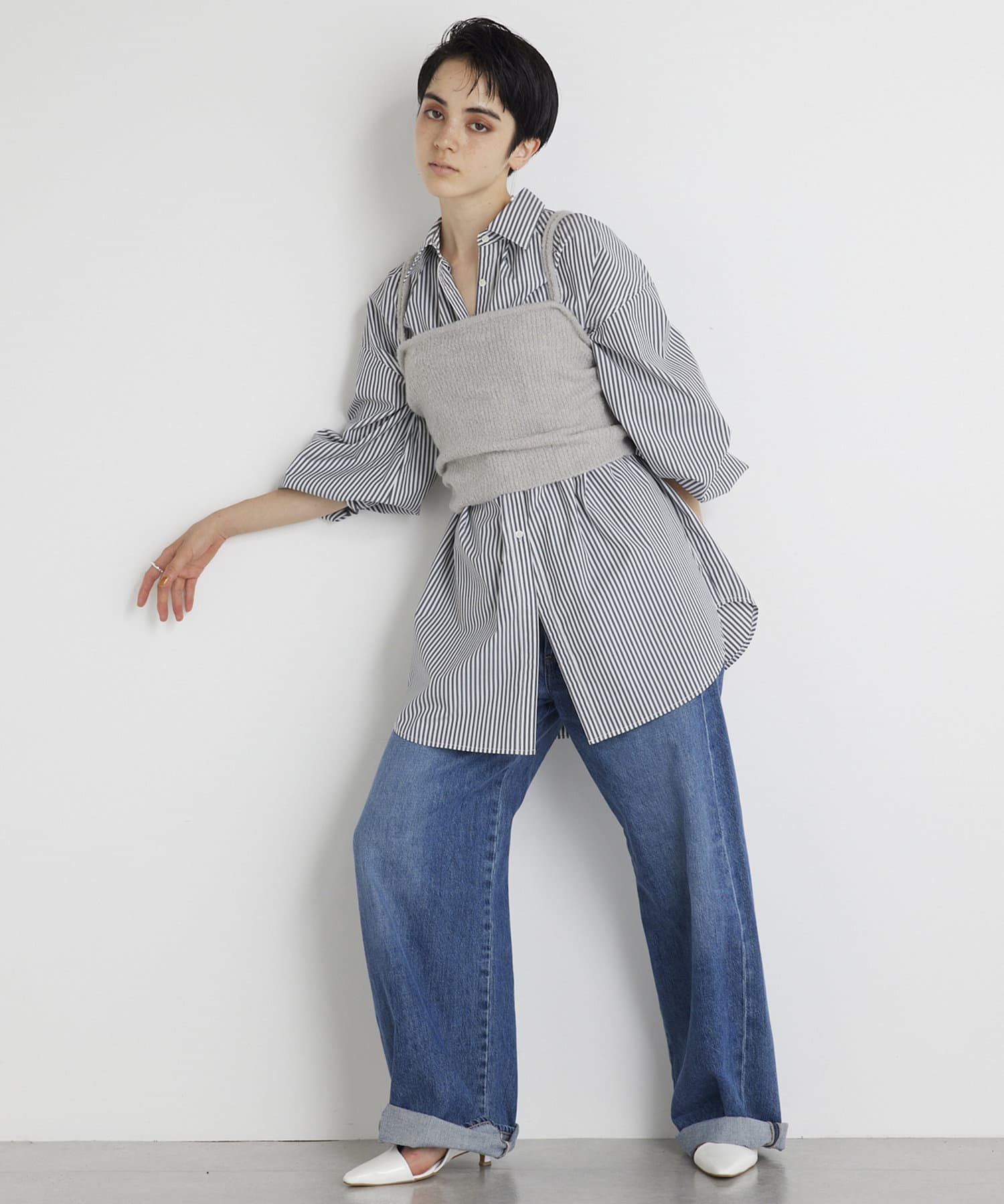 ■ニットやスウェットなどを重ねてもシャツの裾が見えるロング丈で、レイヤードスタイルにもおすすめ。