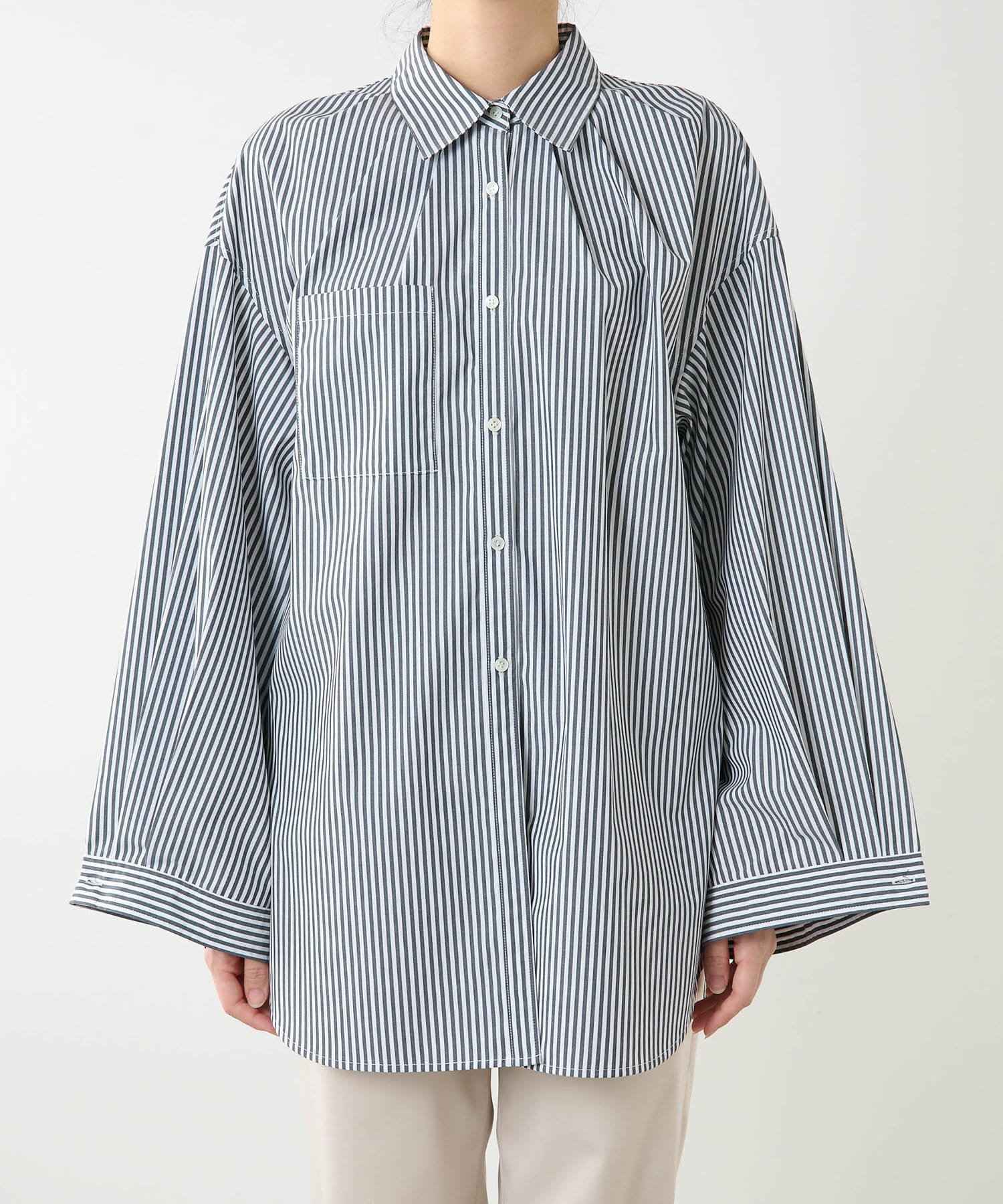 ■襟元にタックを入れた立体感のあるデザインや、大き目の胸ポケットなど、さりげないアクセントがこなれ感のある一枚。