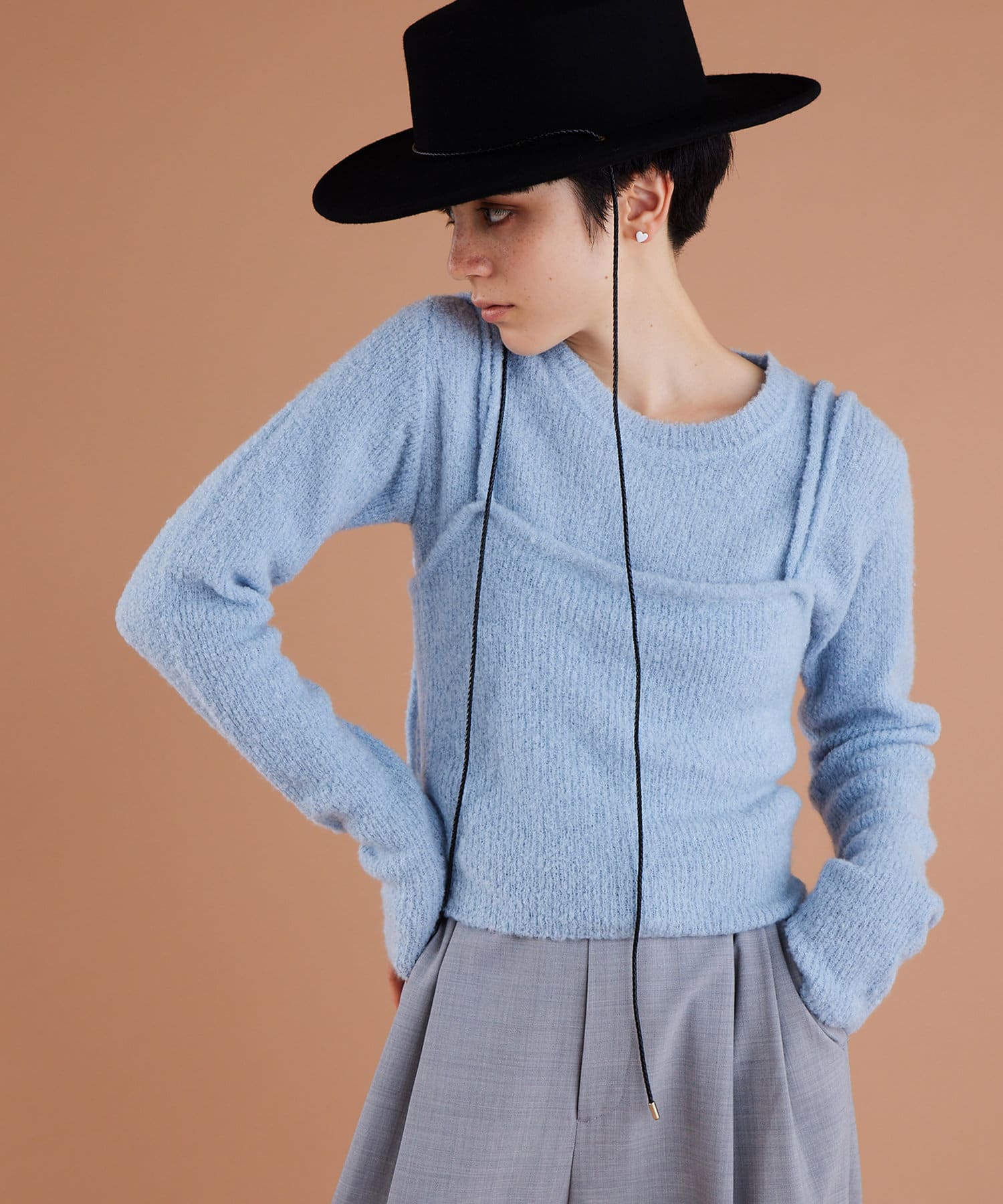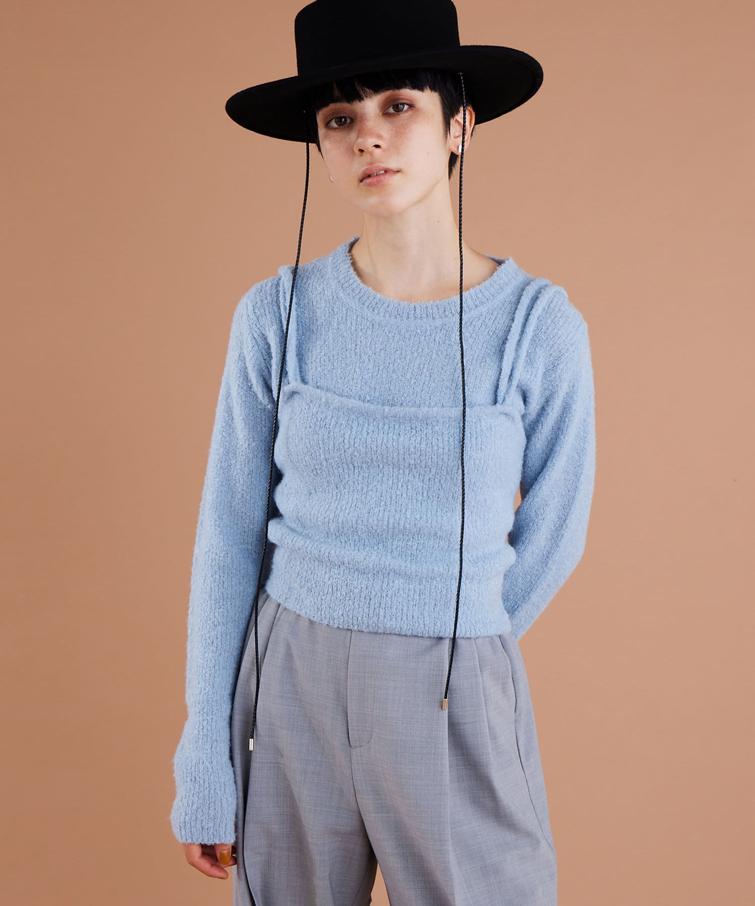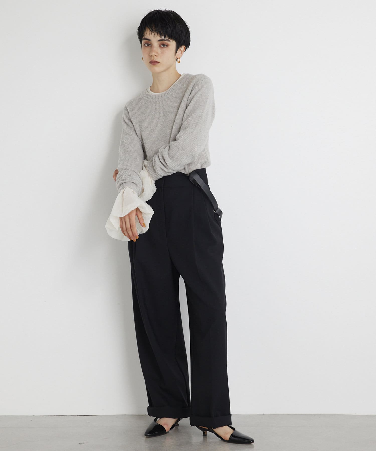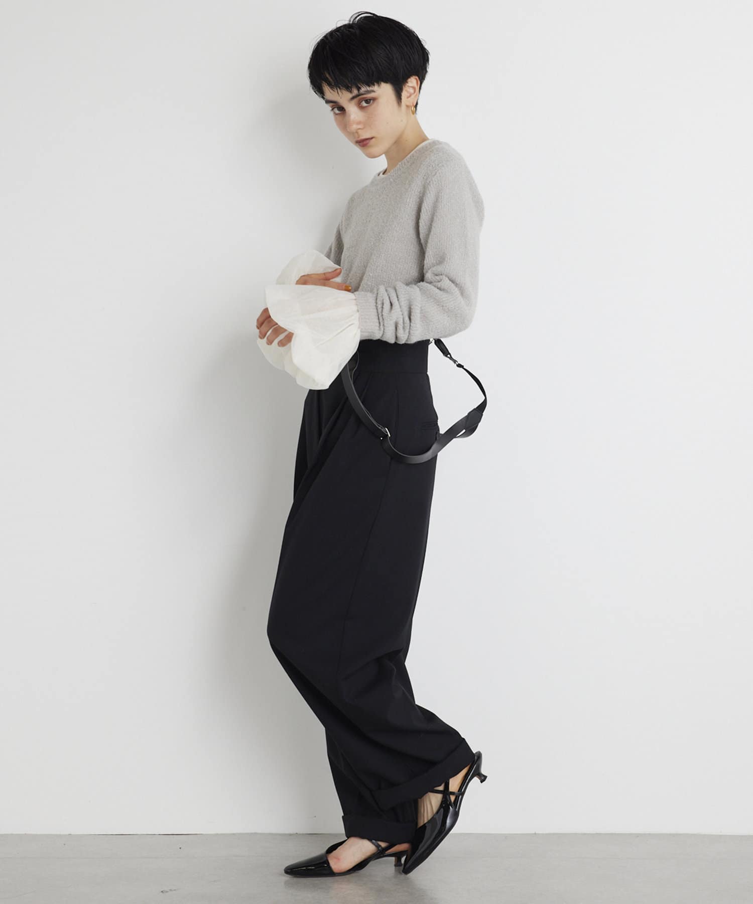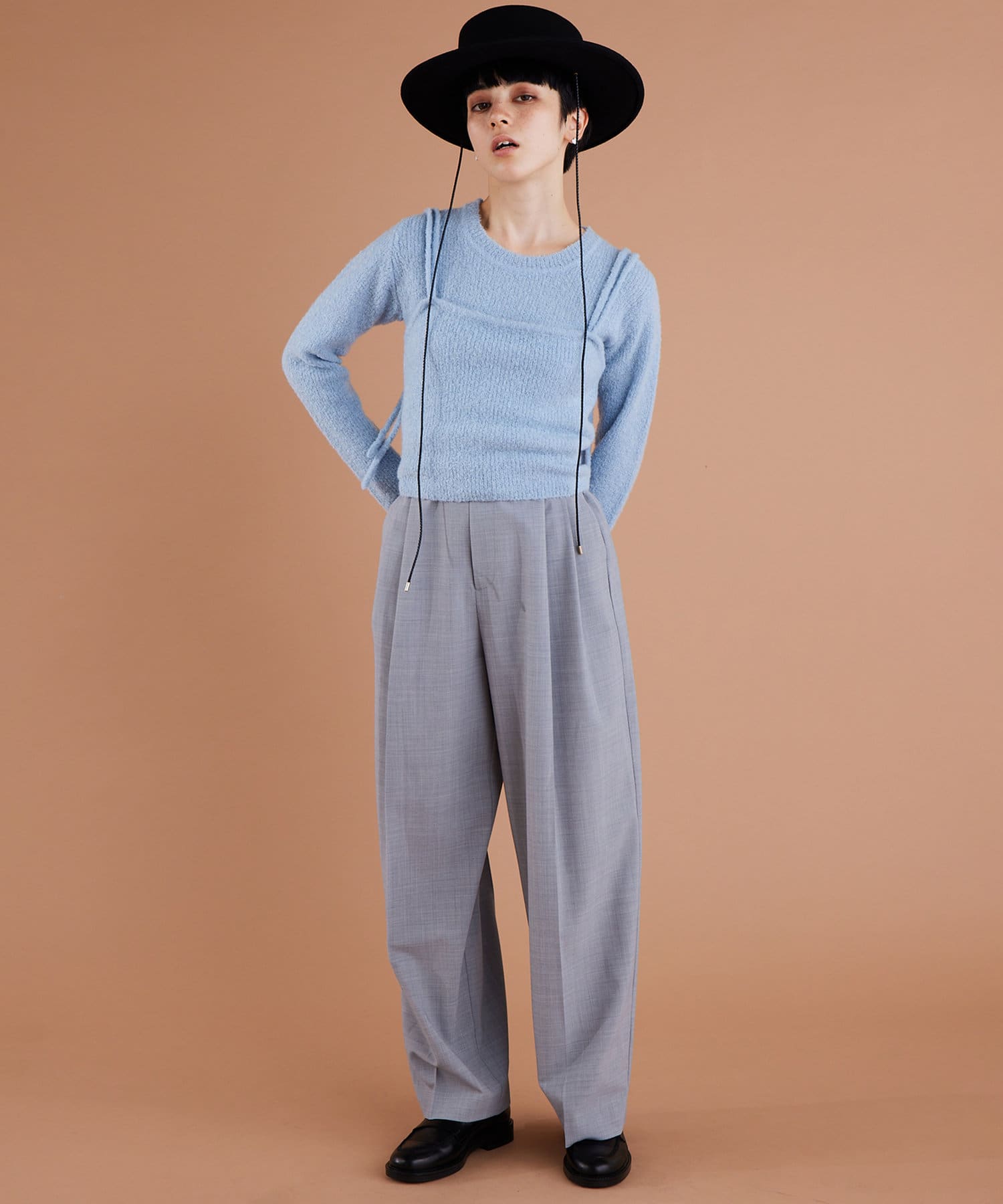 ■同素材のパンツ(ブランド品番:)とのセットアップや、キャミソール(ブランド品番:WGZ1032305A0002)とのレイヤードを楽しむのもおすすめ。