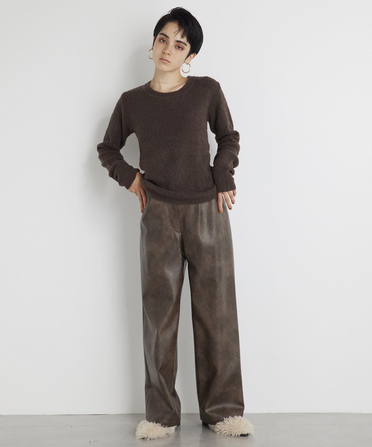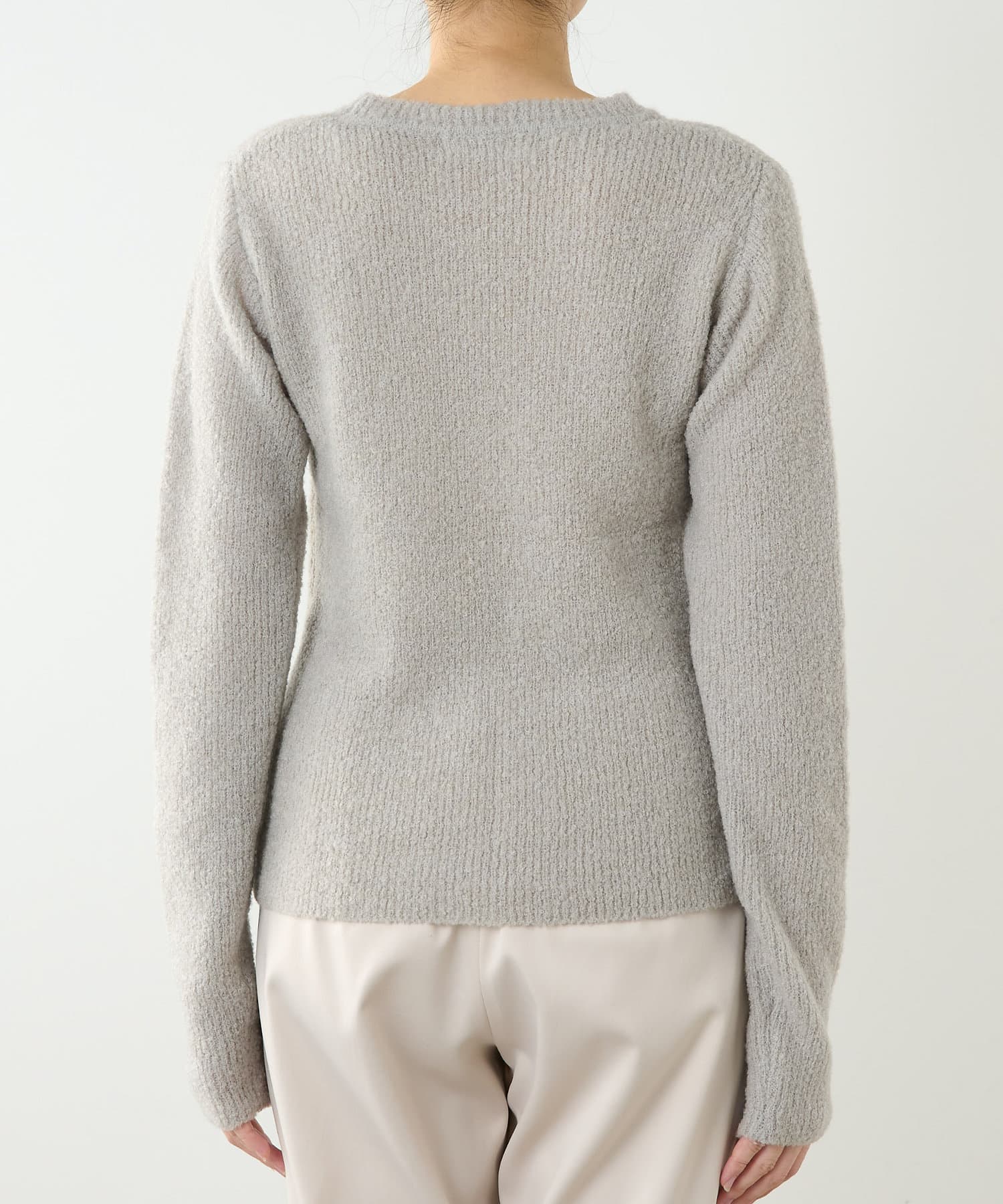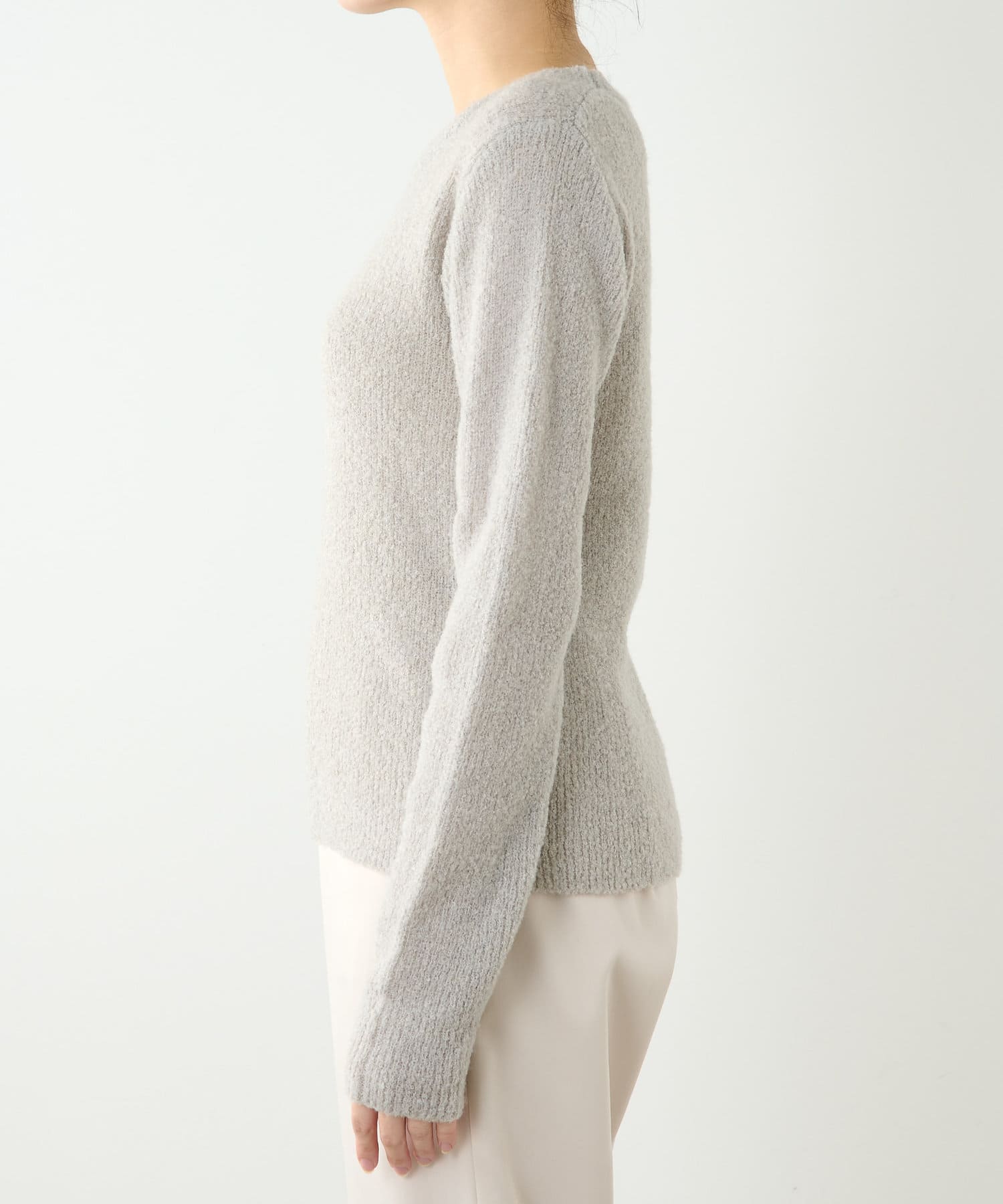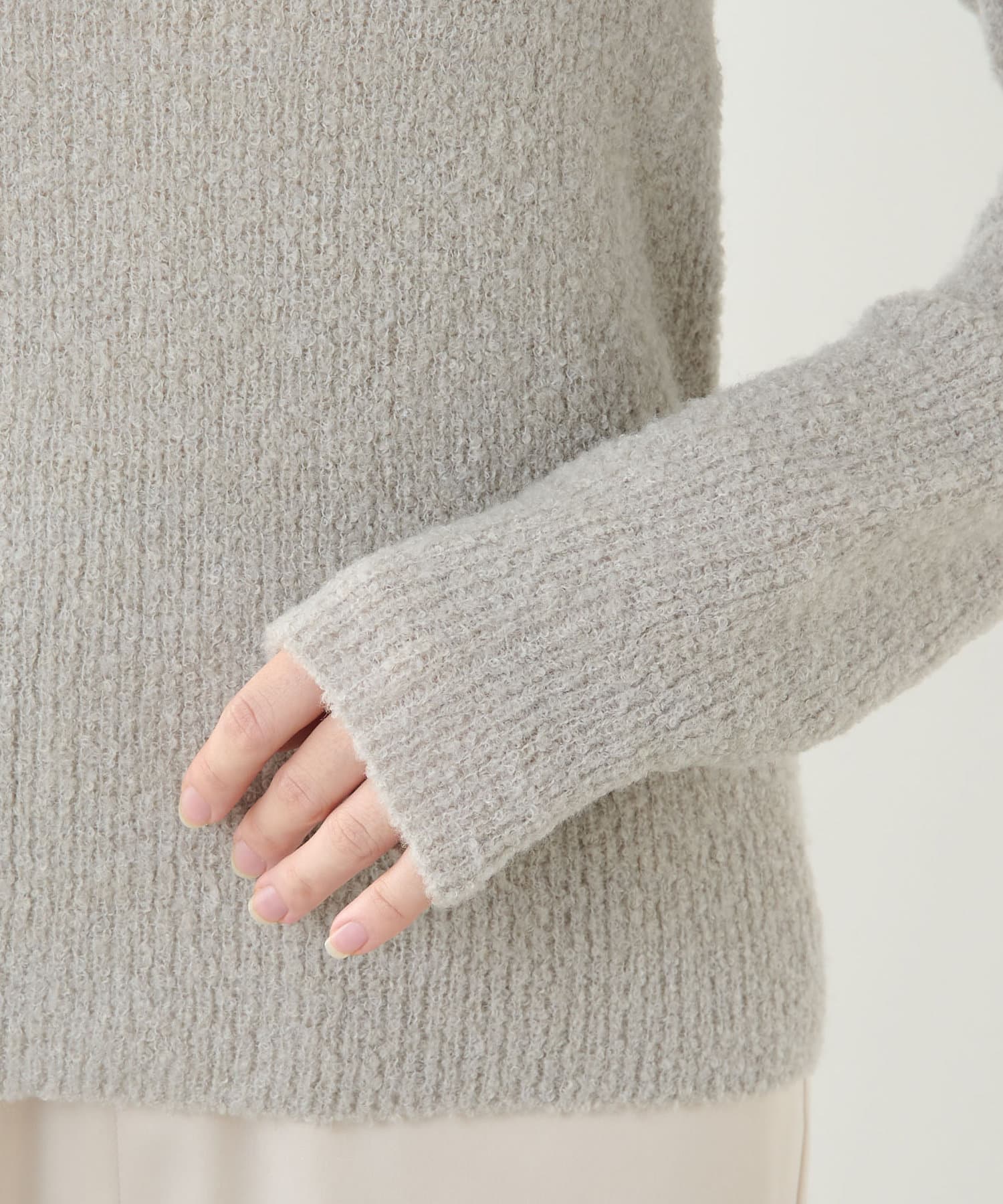 チクチクしないループニット。モコモコの表面感があるニットです。こちらのニットは色が魅力…ニュアンスなカラーがコーディネートにマッチします。少し風は通します。