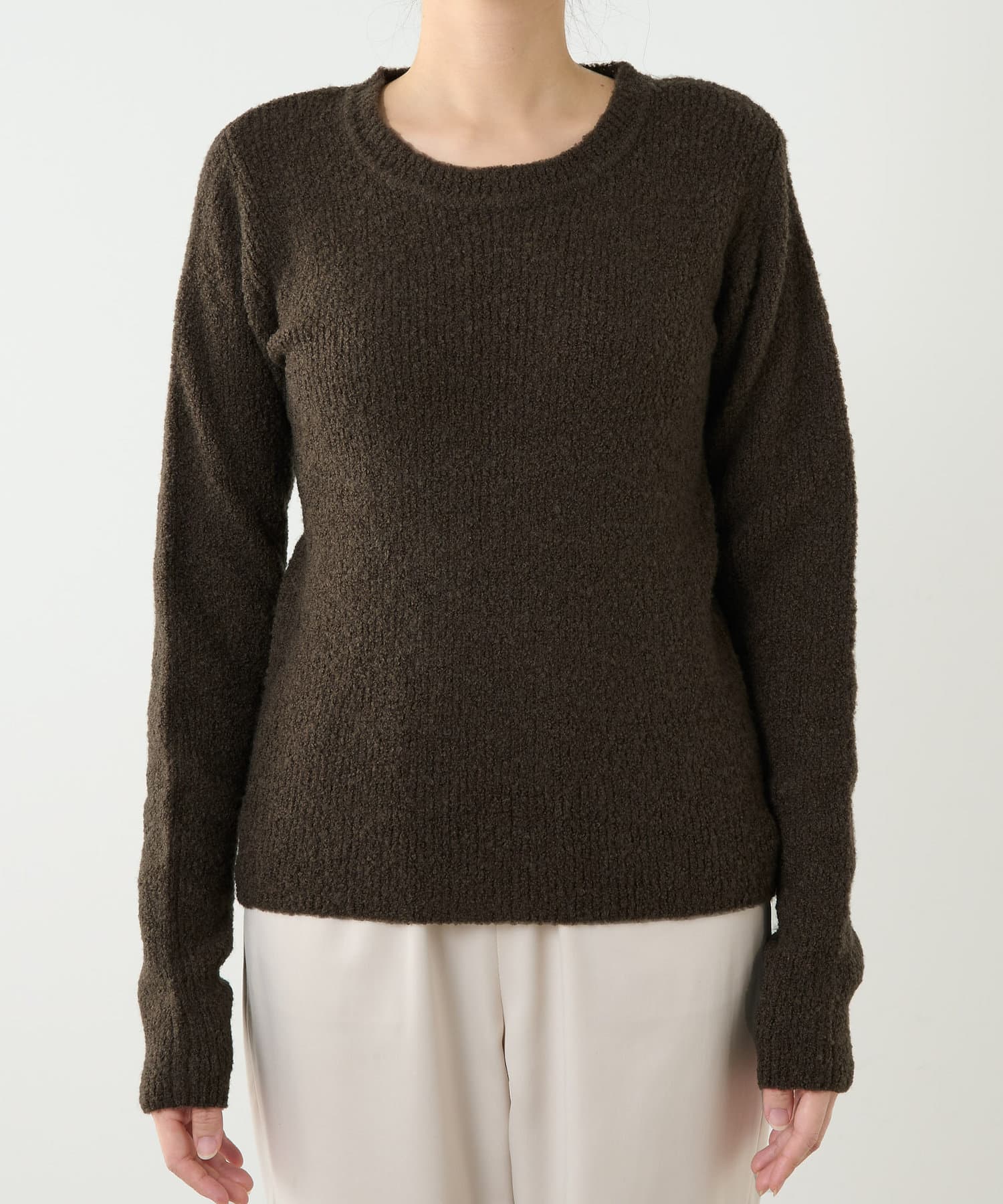 ■もこもことした表面感が印象的なクルーネックニットプルオーバー。
