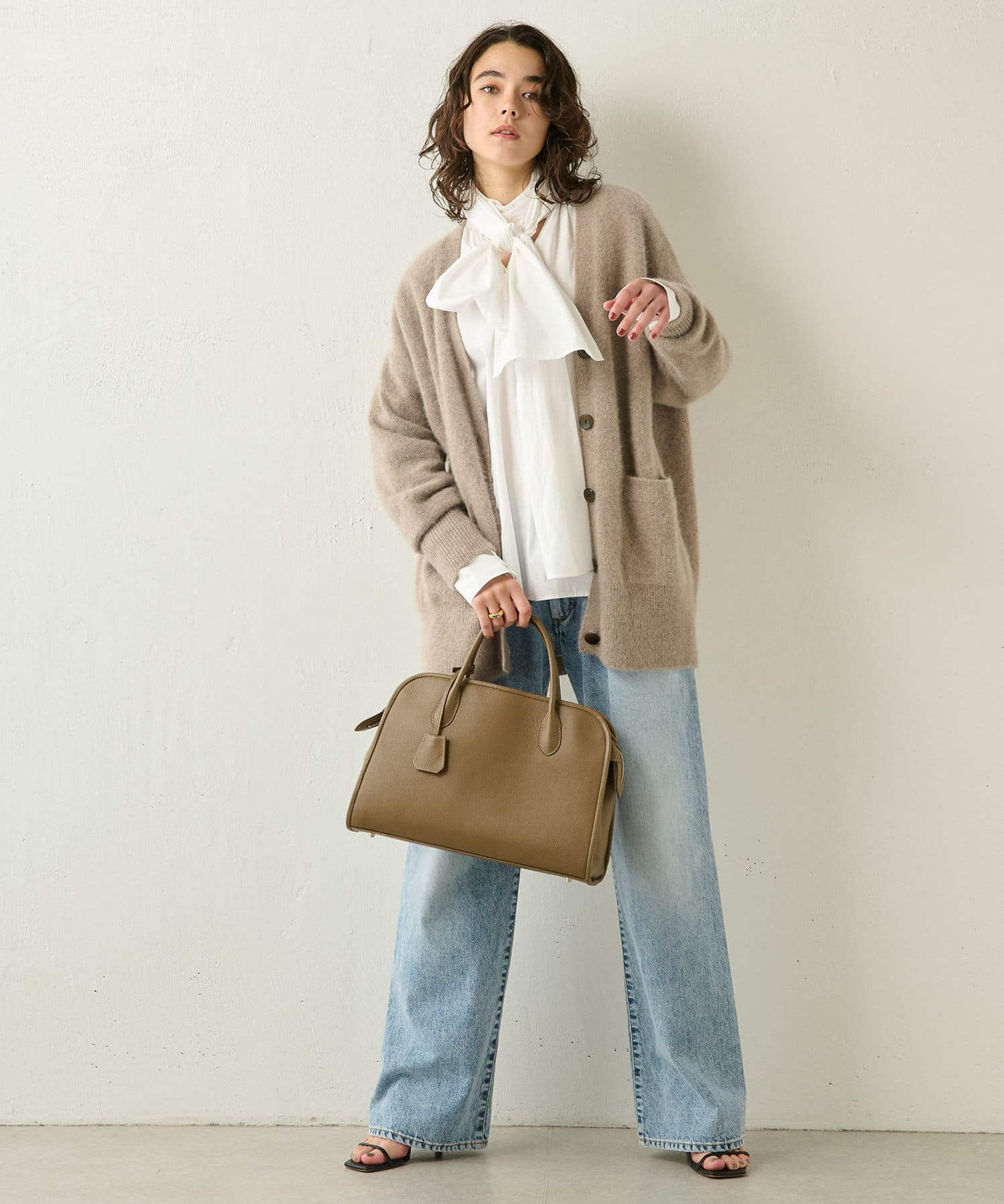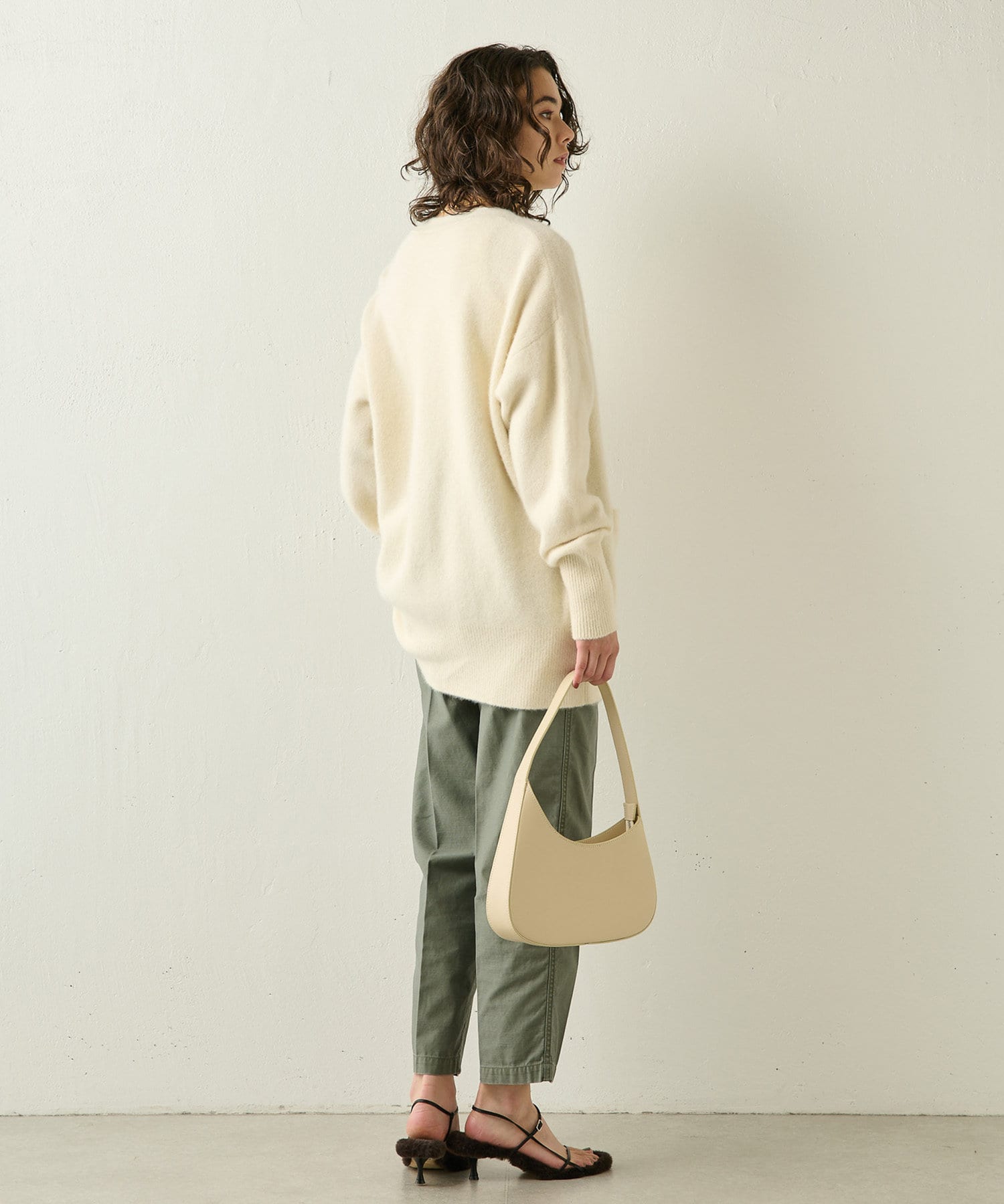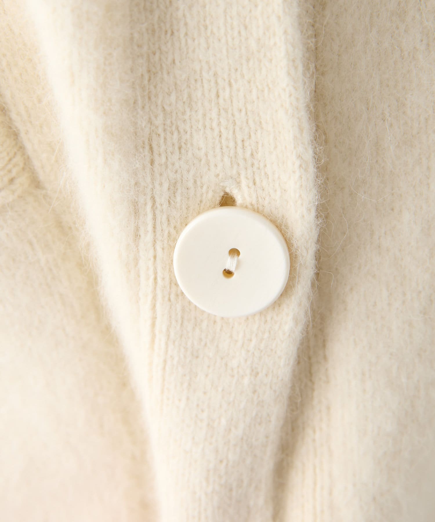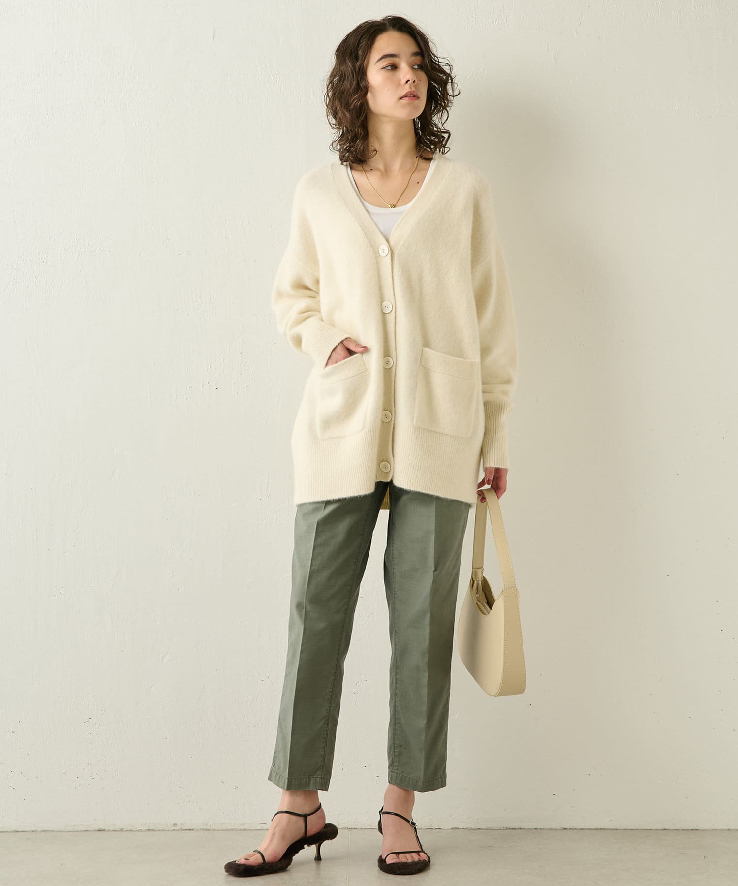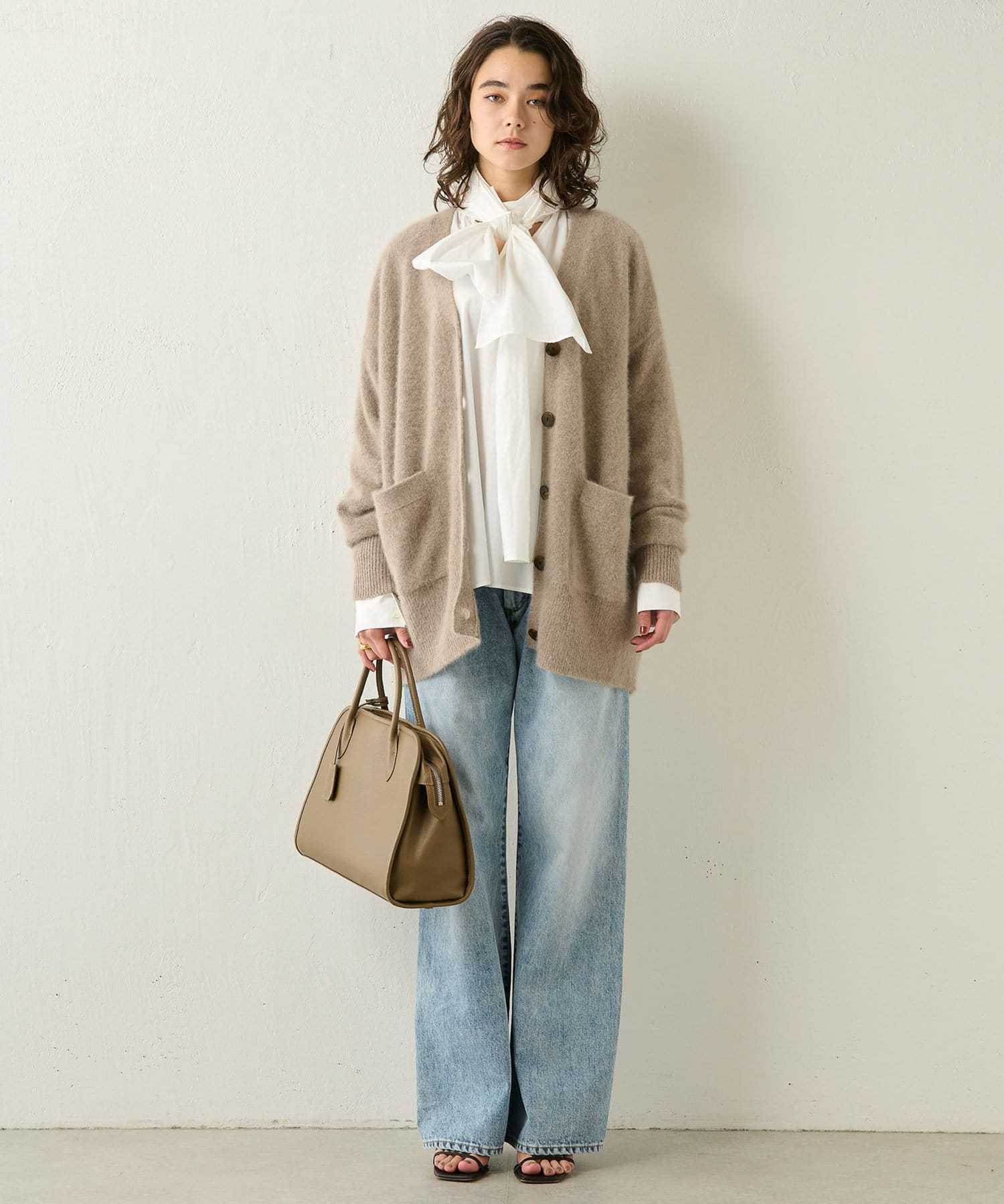 FOXならではの毛足の長さが華やかさを感じられるカーディガン。丈は長めなので、ボトムによっては前だけインするとバランスがとりやすいです。秋冬の羽織として、パッと羽織れる着映える一枚です。