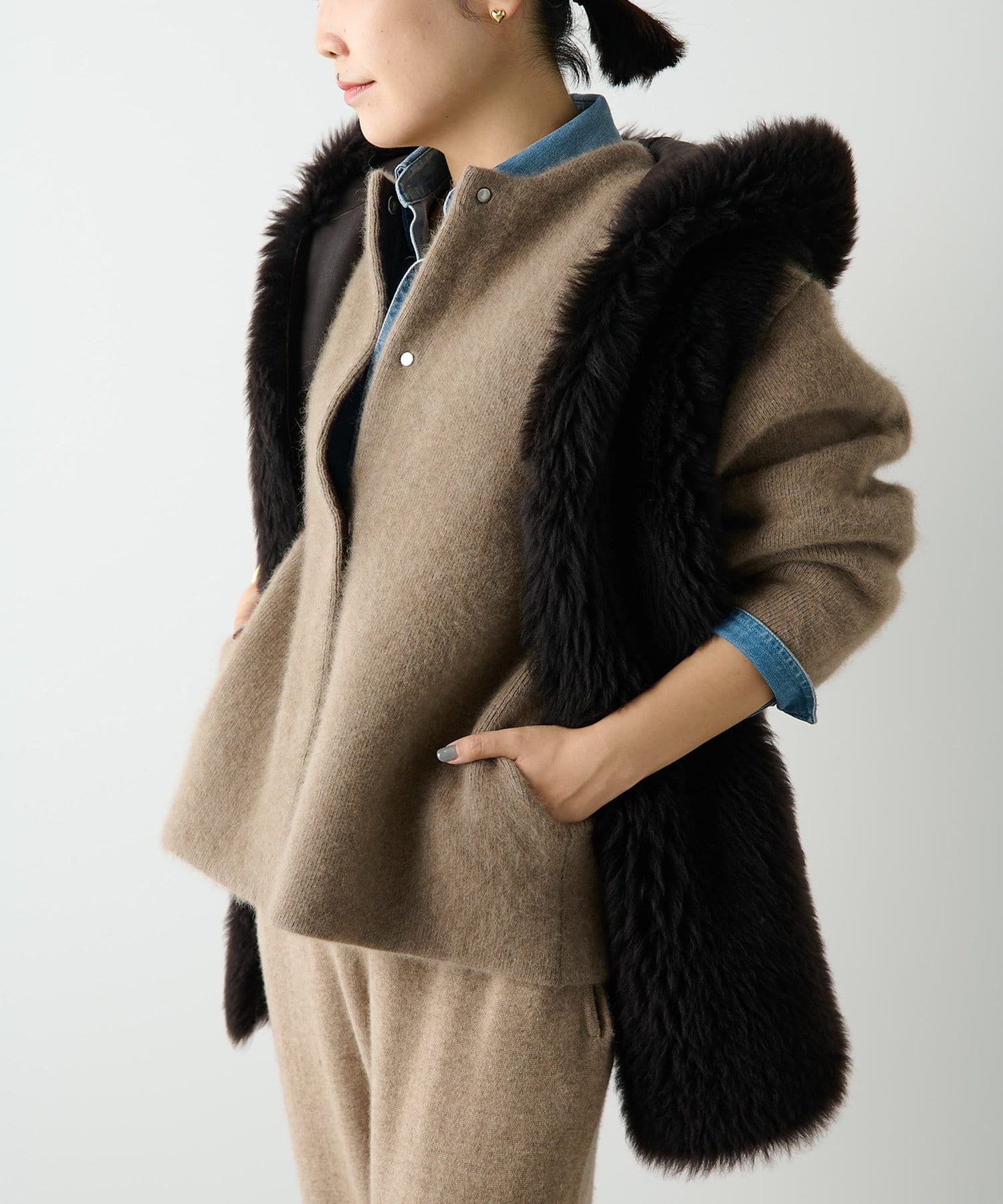■表側はふんわりとした素材感に、裏側にはポリエステルを使うことでインナーに毛羽が付きにくくいのが魅力。