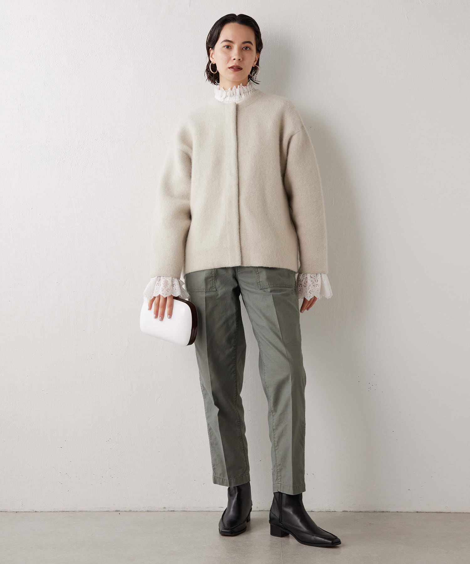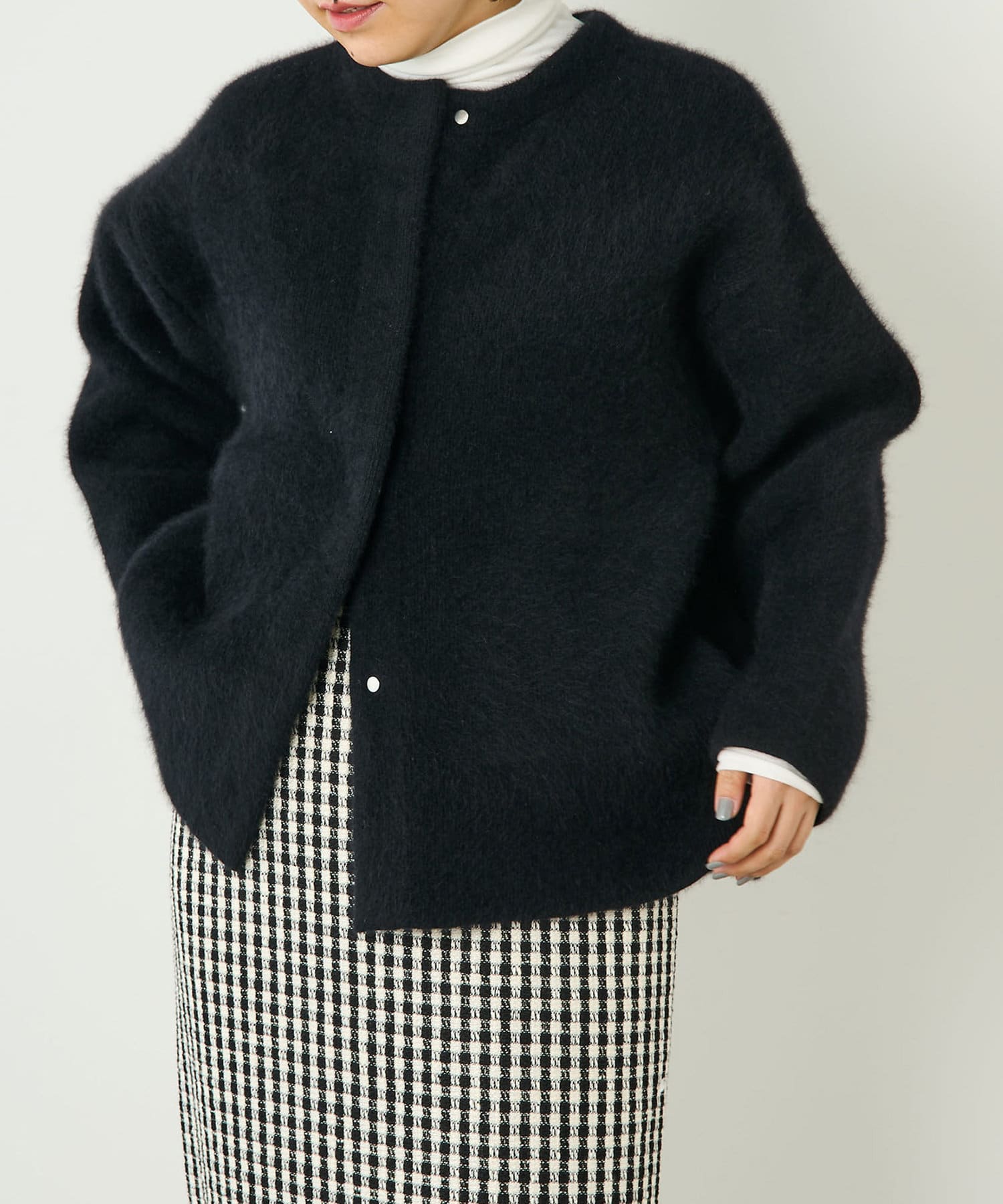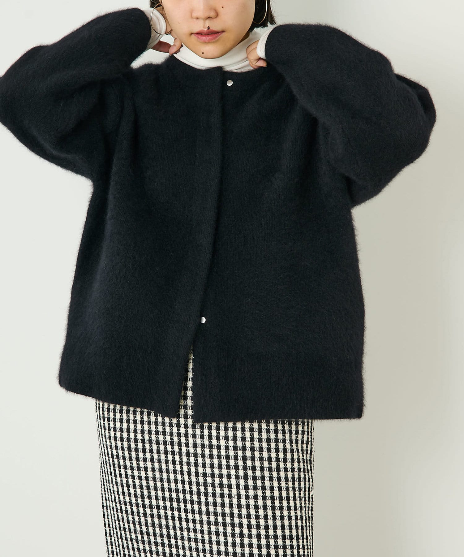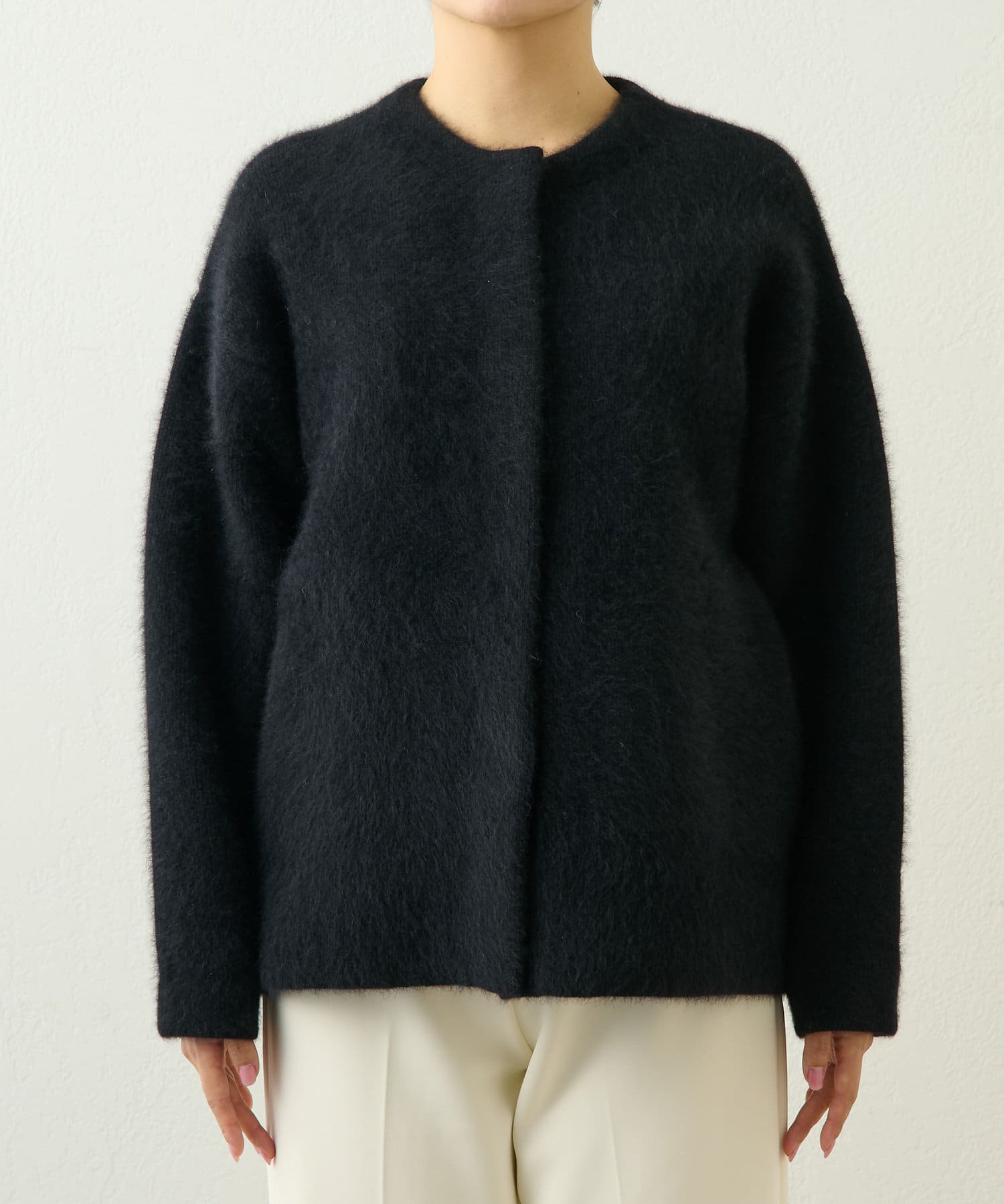 ■普通のニットカーディガンに比べ、フォルム感がしっかりと出てジャケットのような雰囲気に。