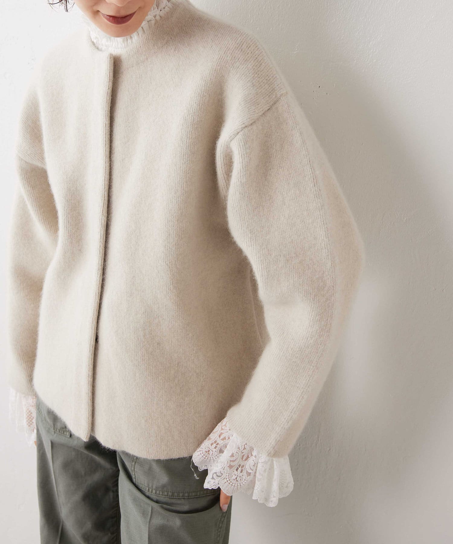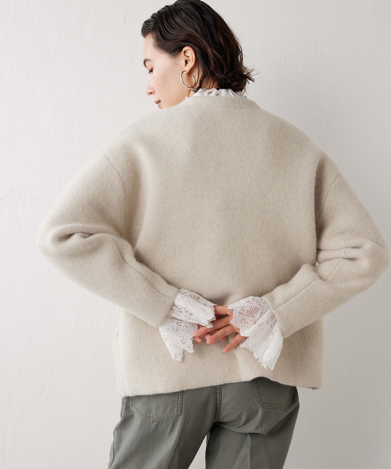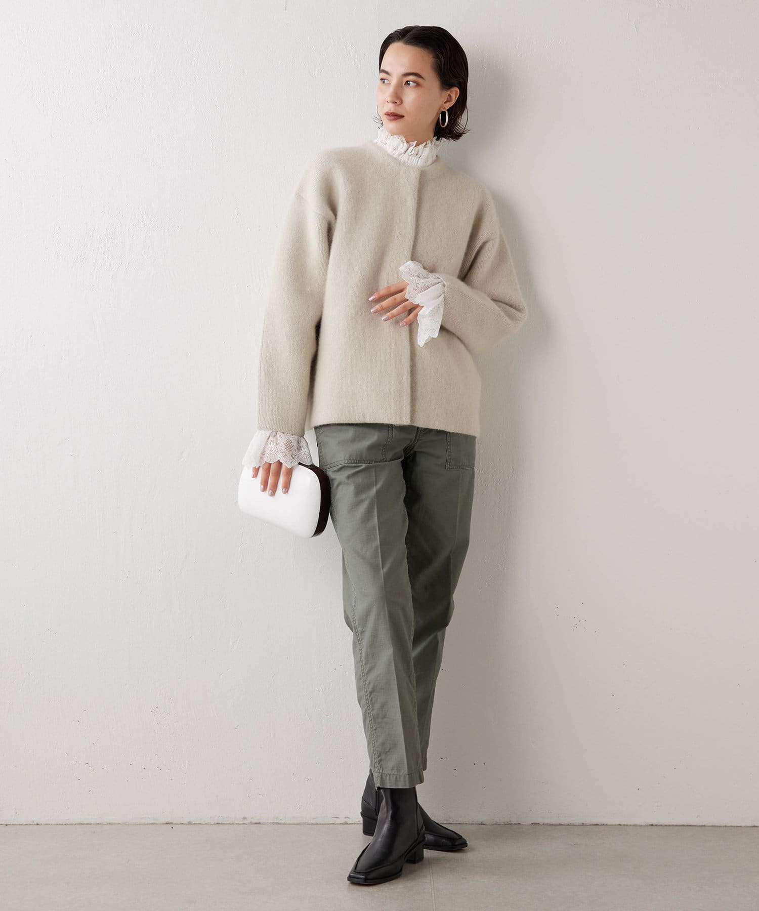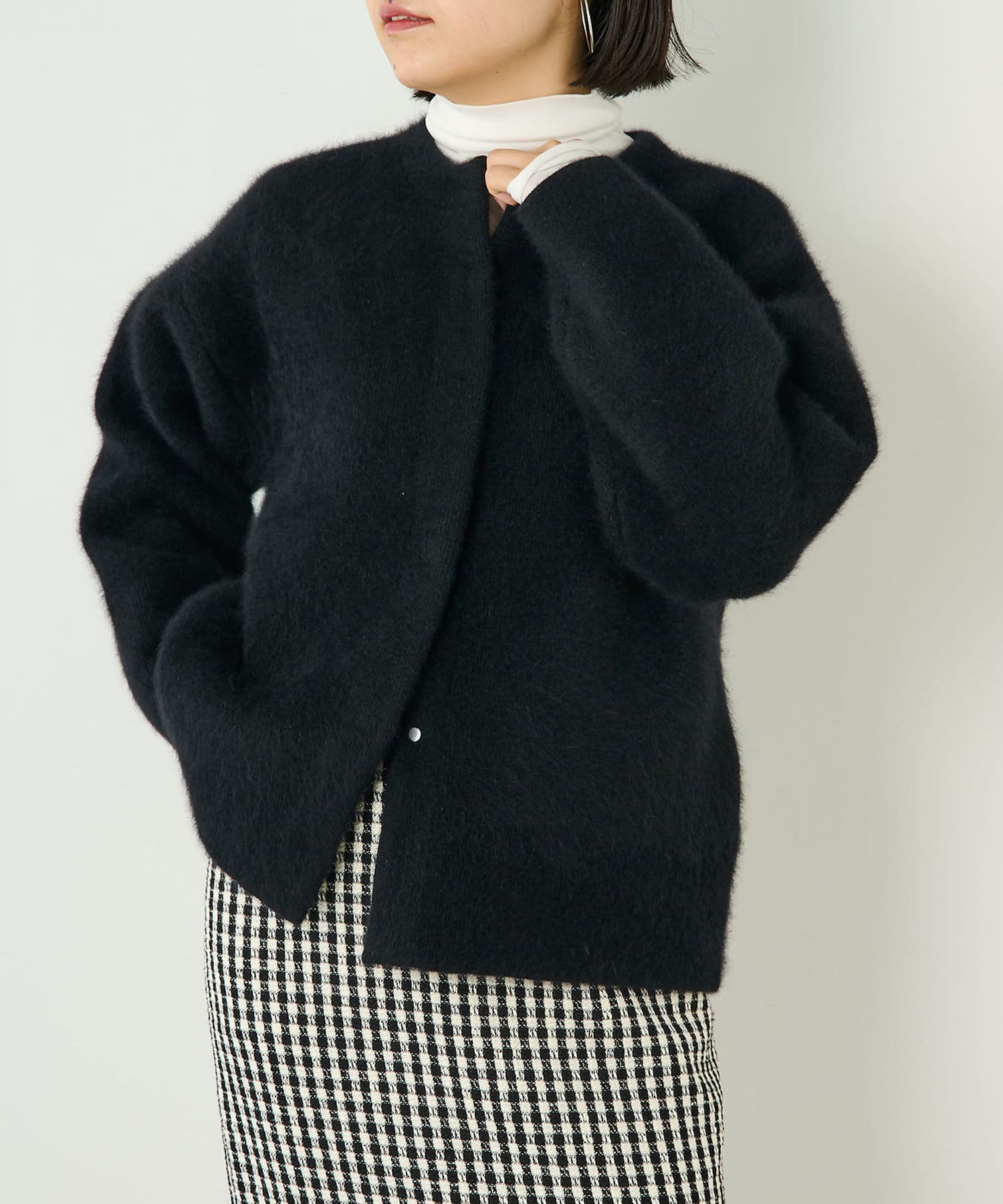 ■普通のニットカーディガンに比べ、フォルム感がしっかりと出てジャケットのような雰囲気に。