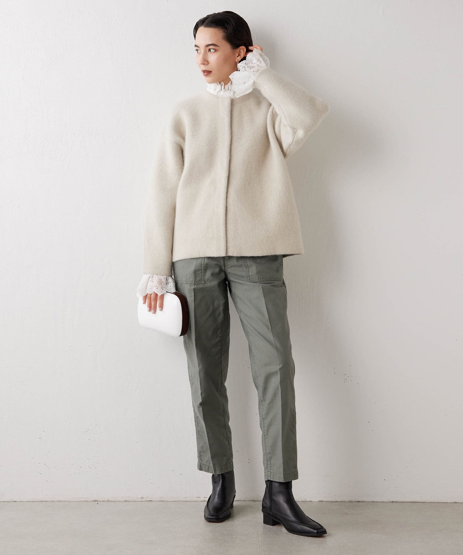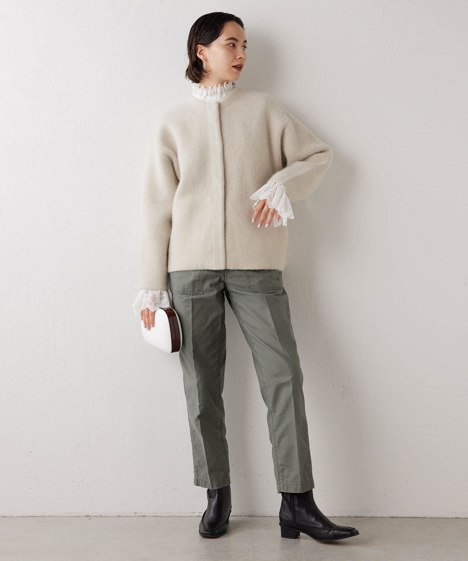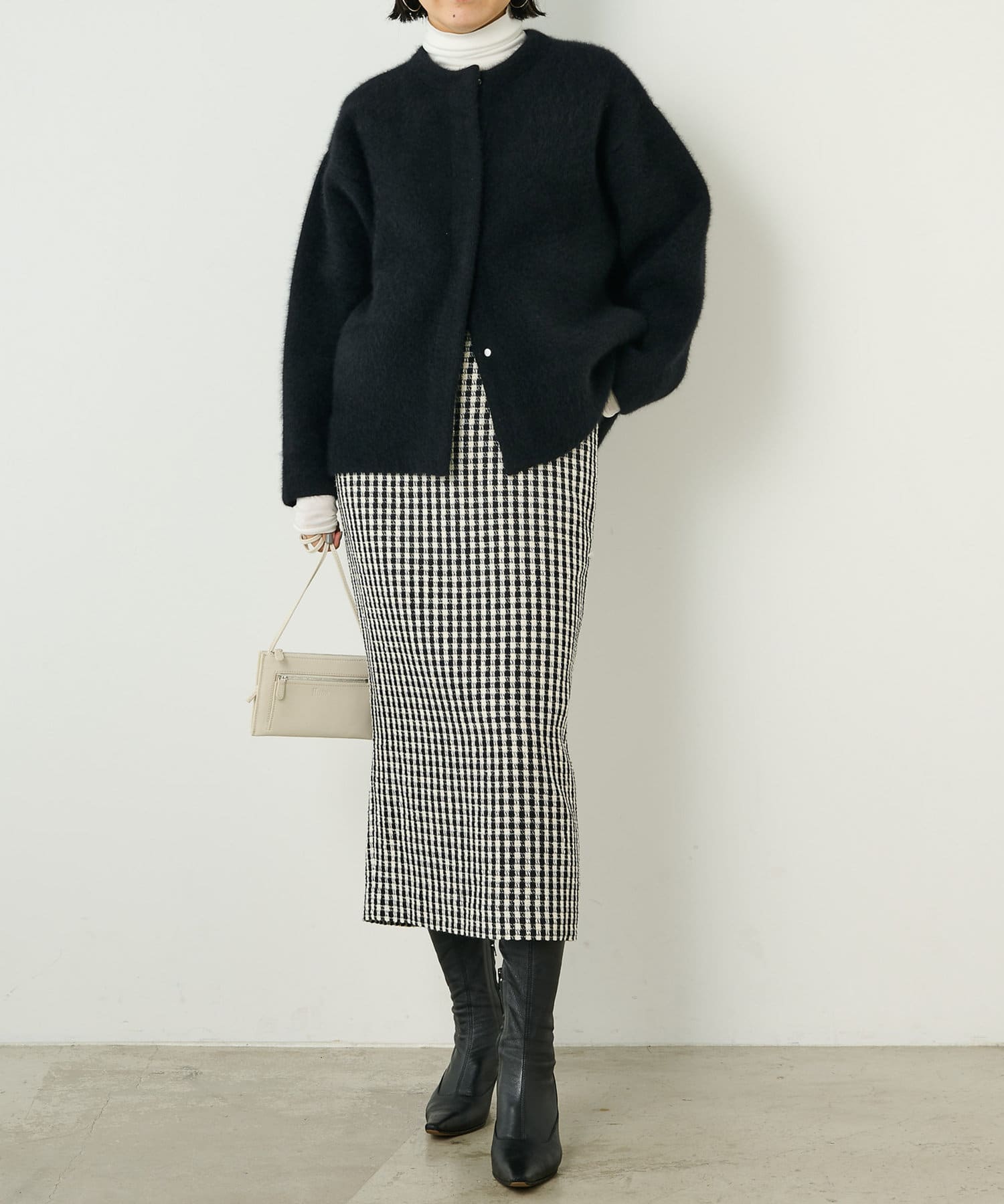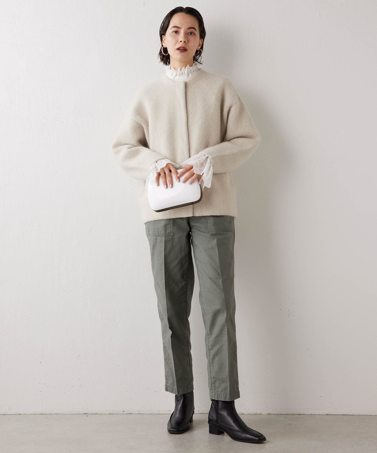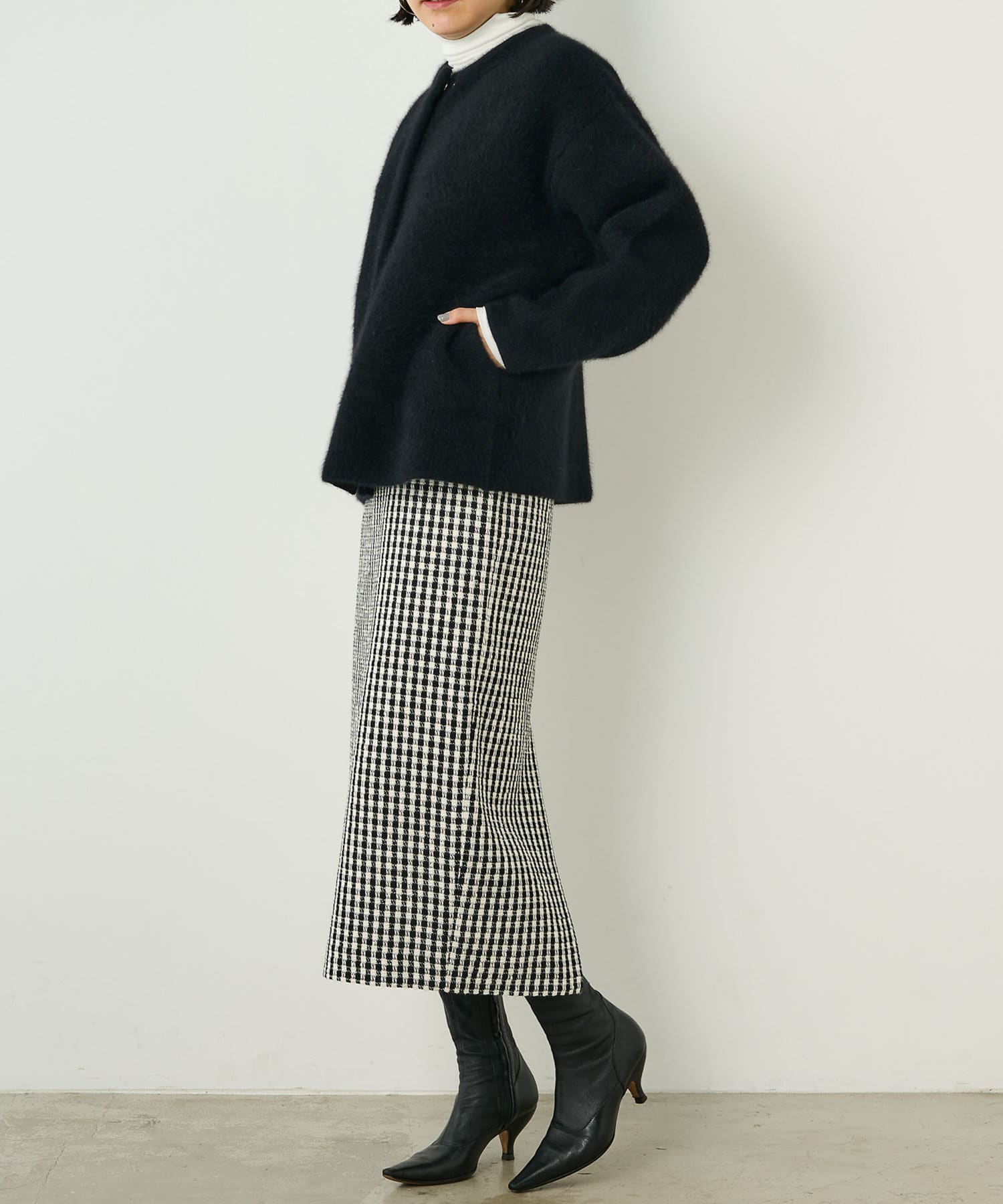 ■普通のニットカーディガンに比べ、フォルム感がしっかりと出てジャケットのような雰囲気に。