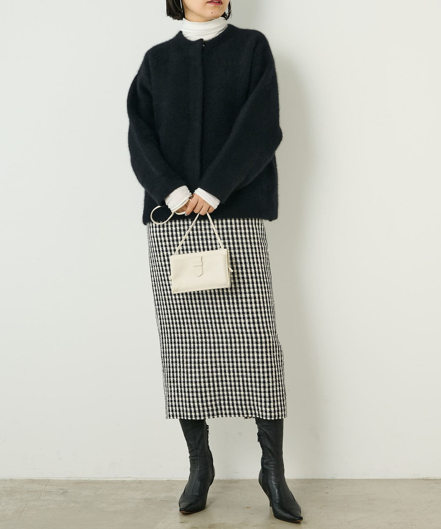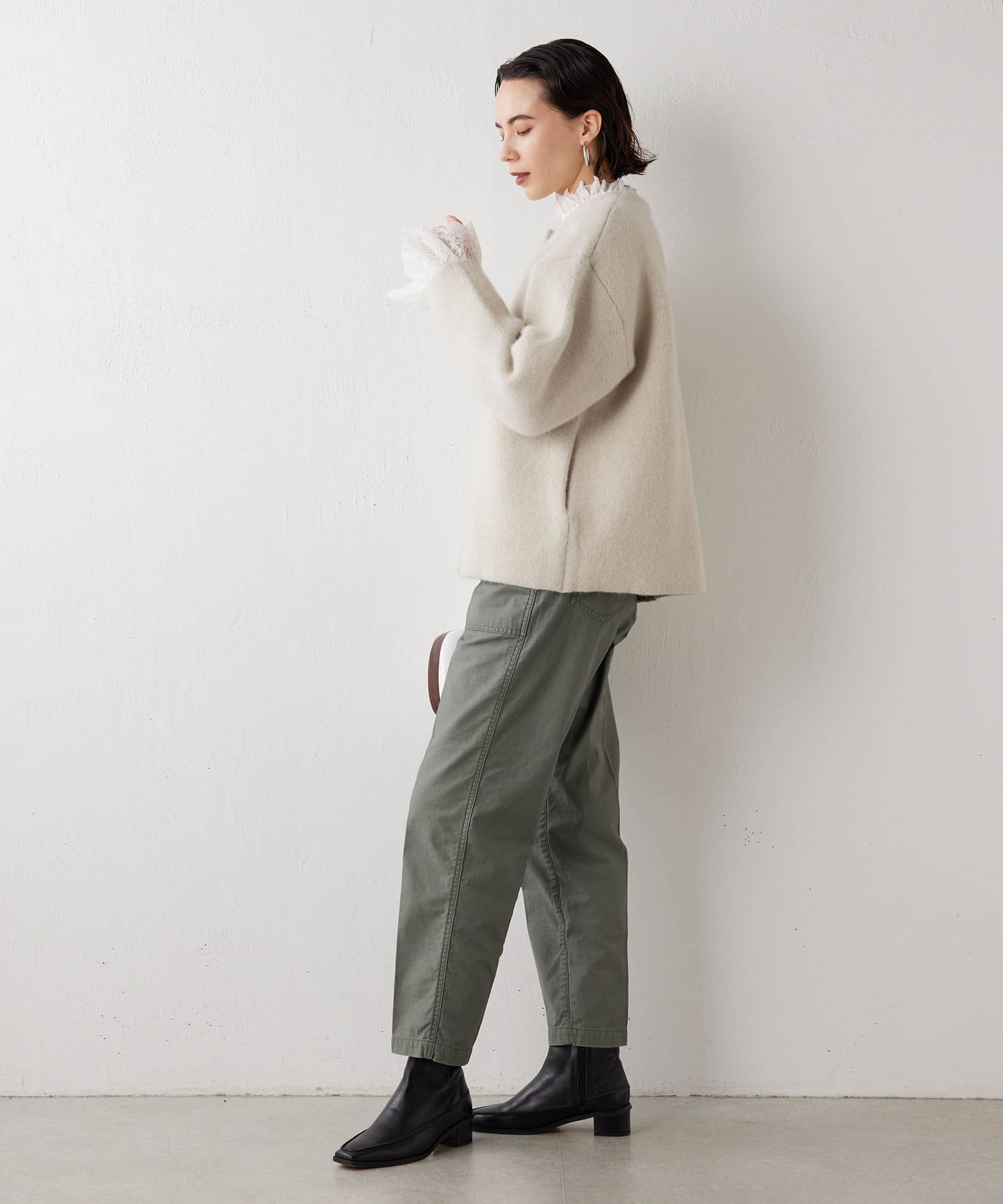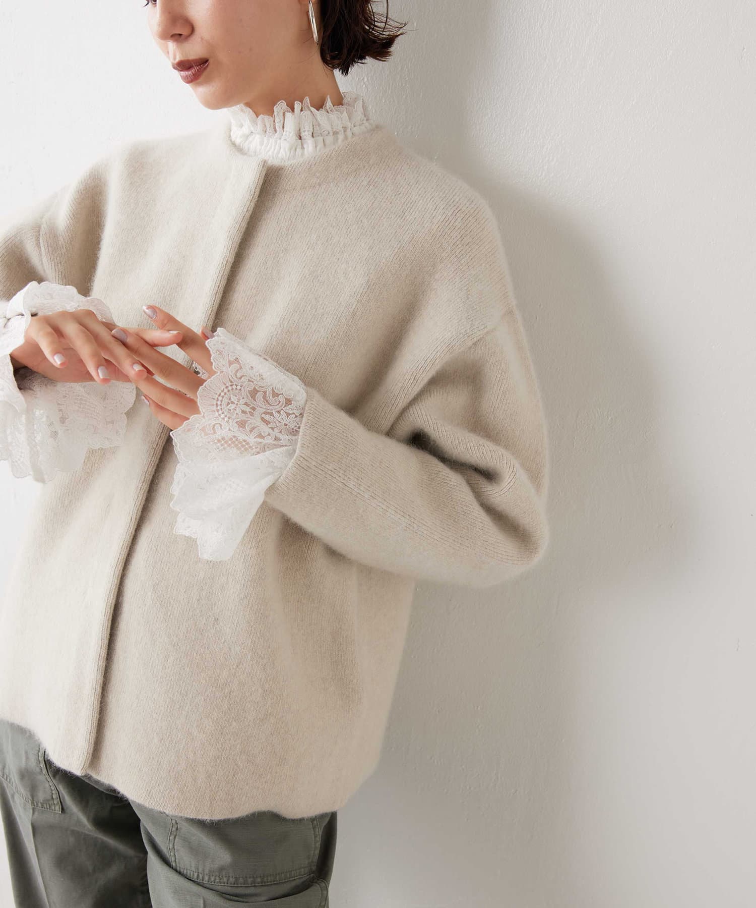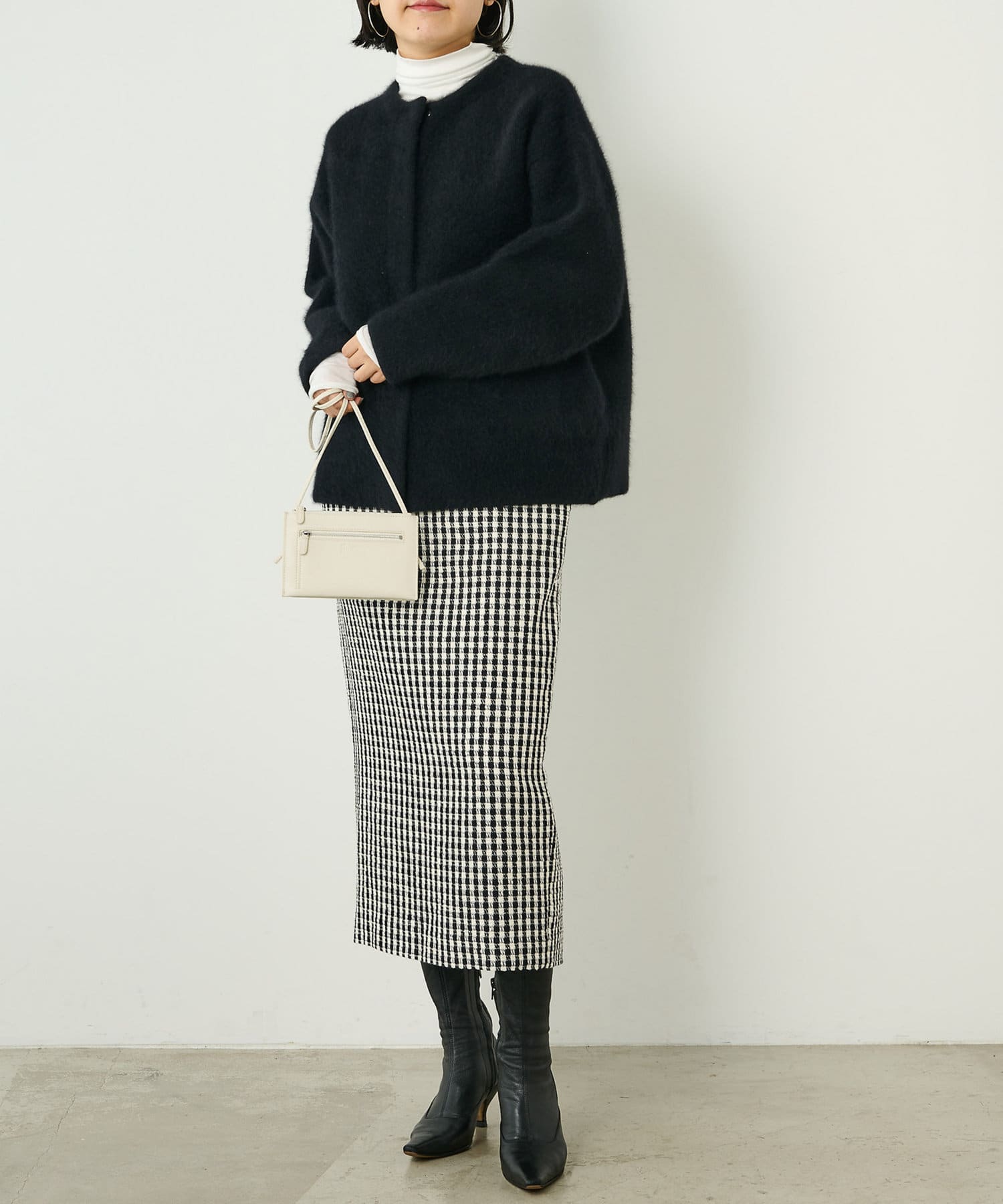 ■普通のニットカーディガンに比べ、フォルム感がしっかりと出てジャケットのような雰囲気に。