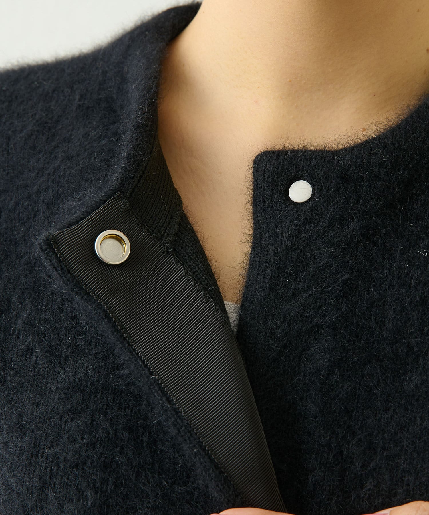 ■2種類の素材を接結したニットで仕立てた厚手のカーディガン。