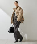■裾のコードを絞ればコクーンシルエットになり、丸みのあるフォルムが女性らしく防寒にも◎。