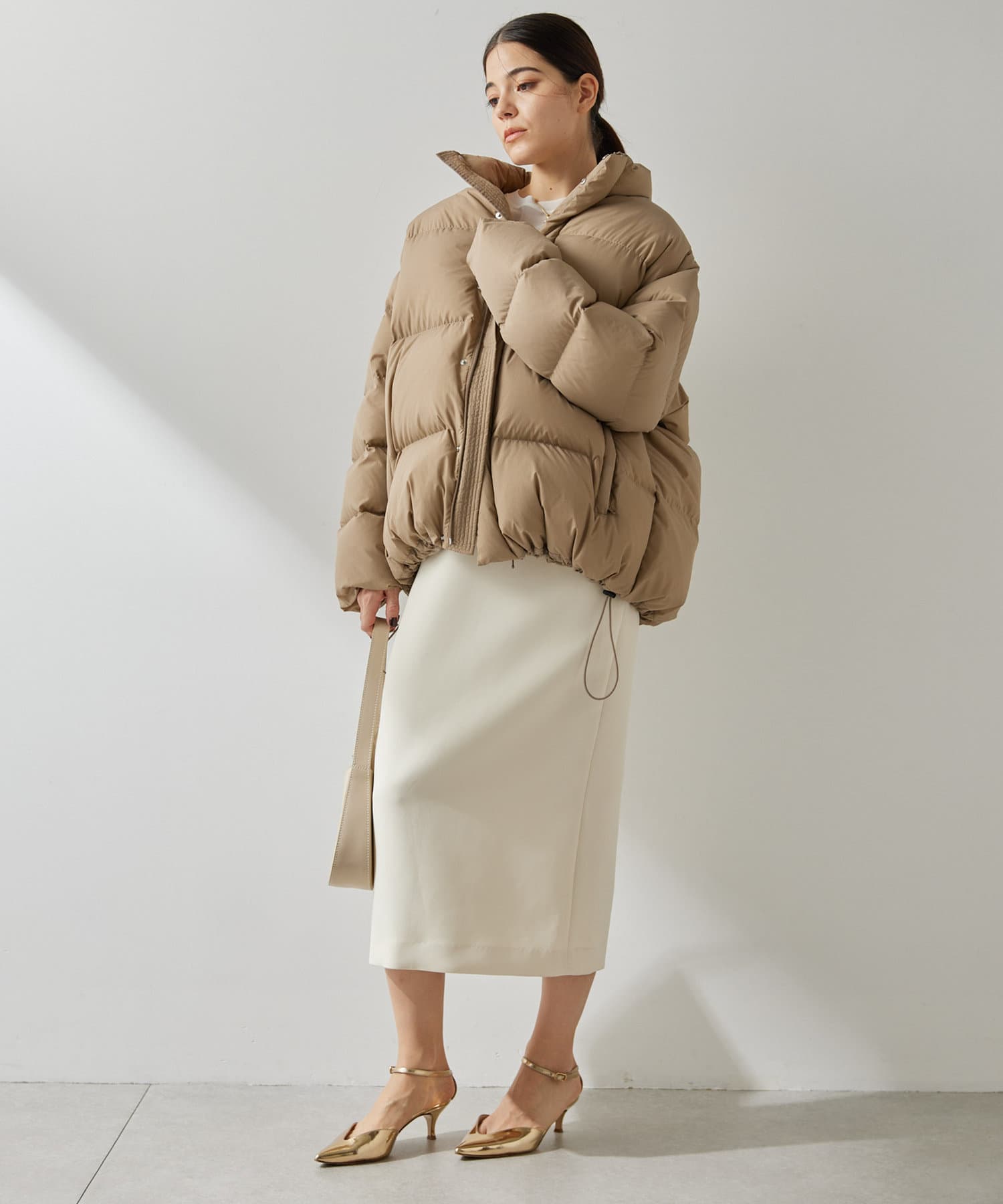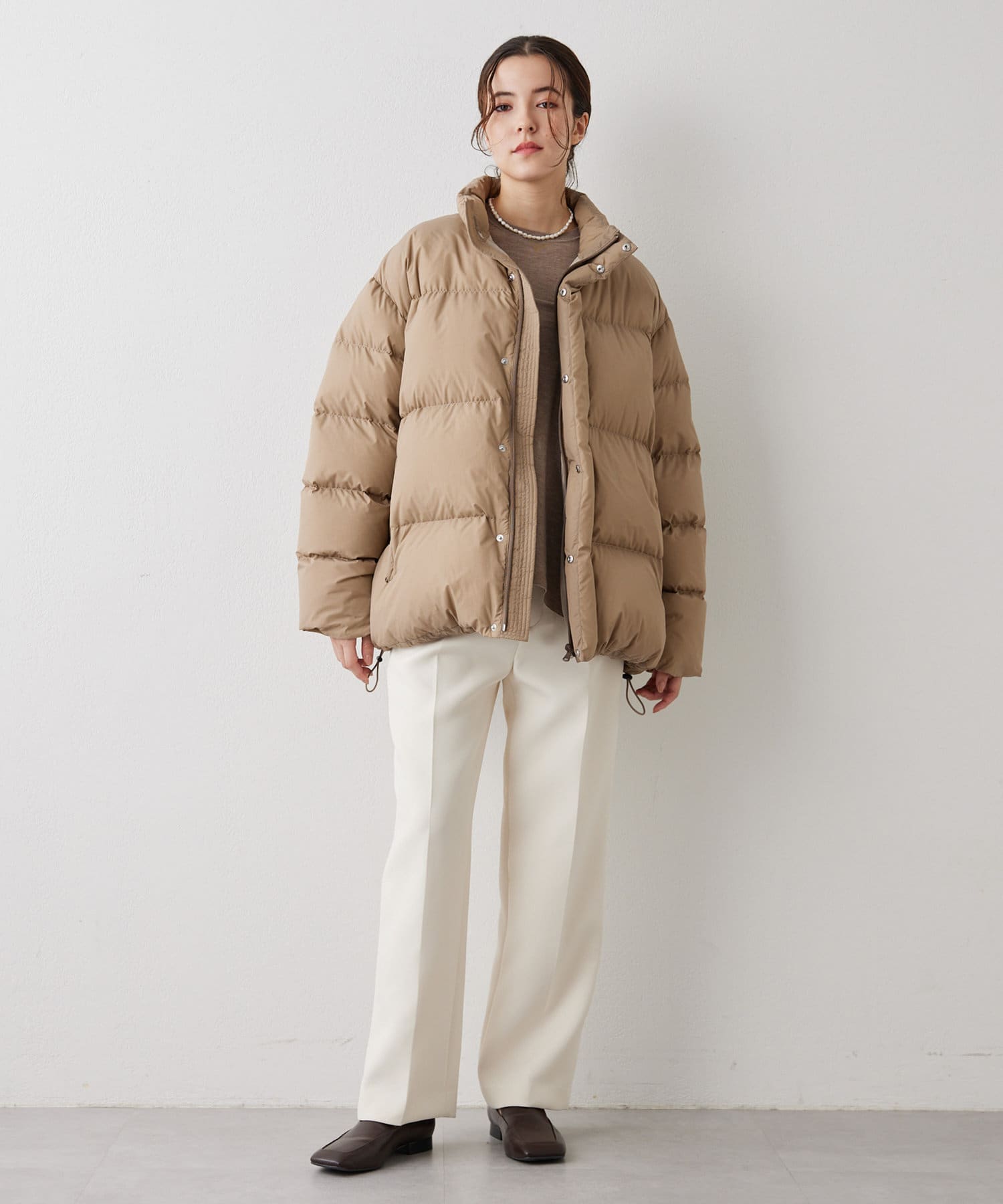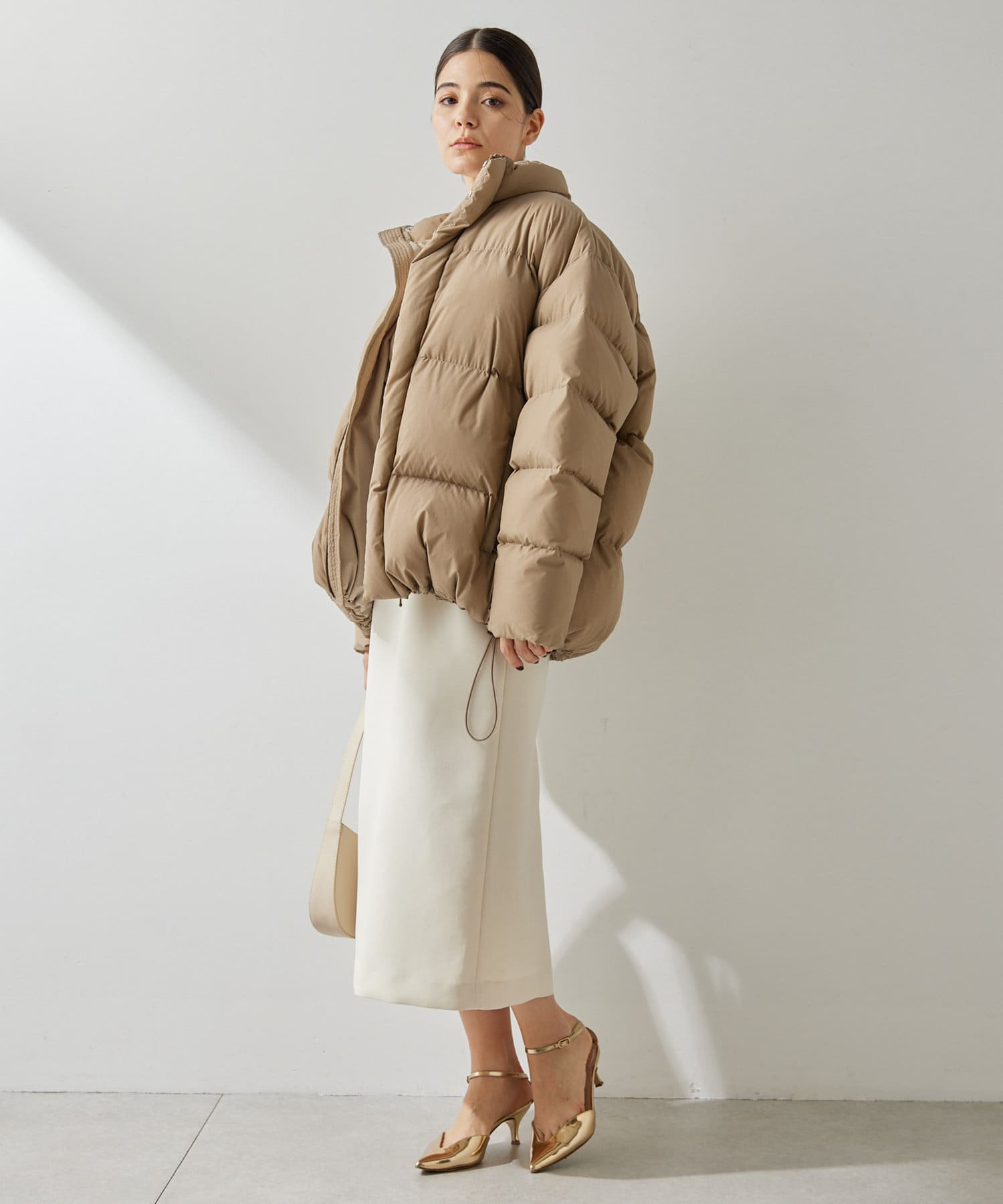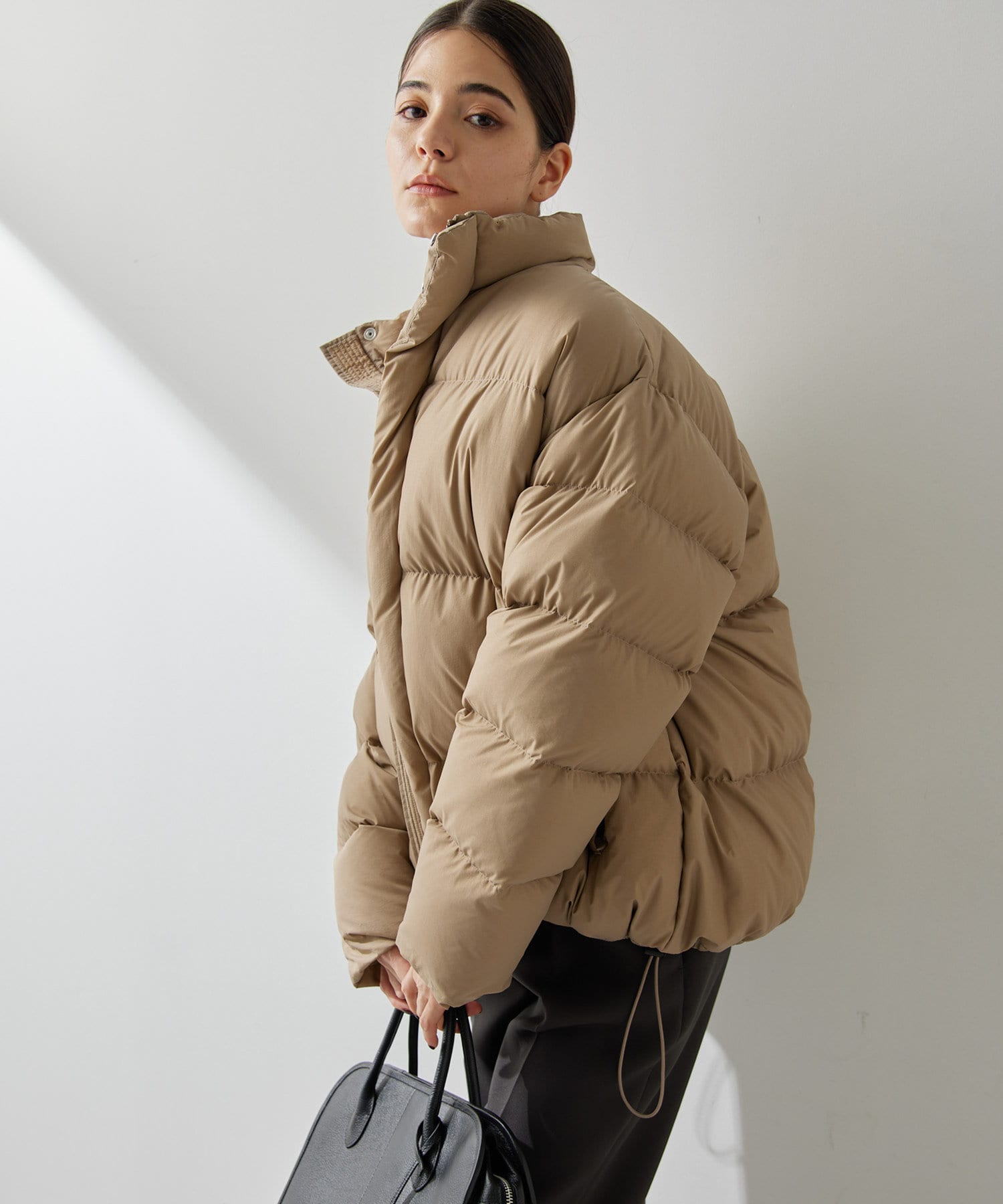■ボリュームフォルムがこなれて見えるダウンミドルコート。