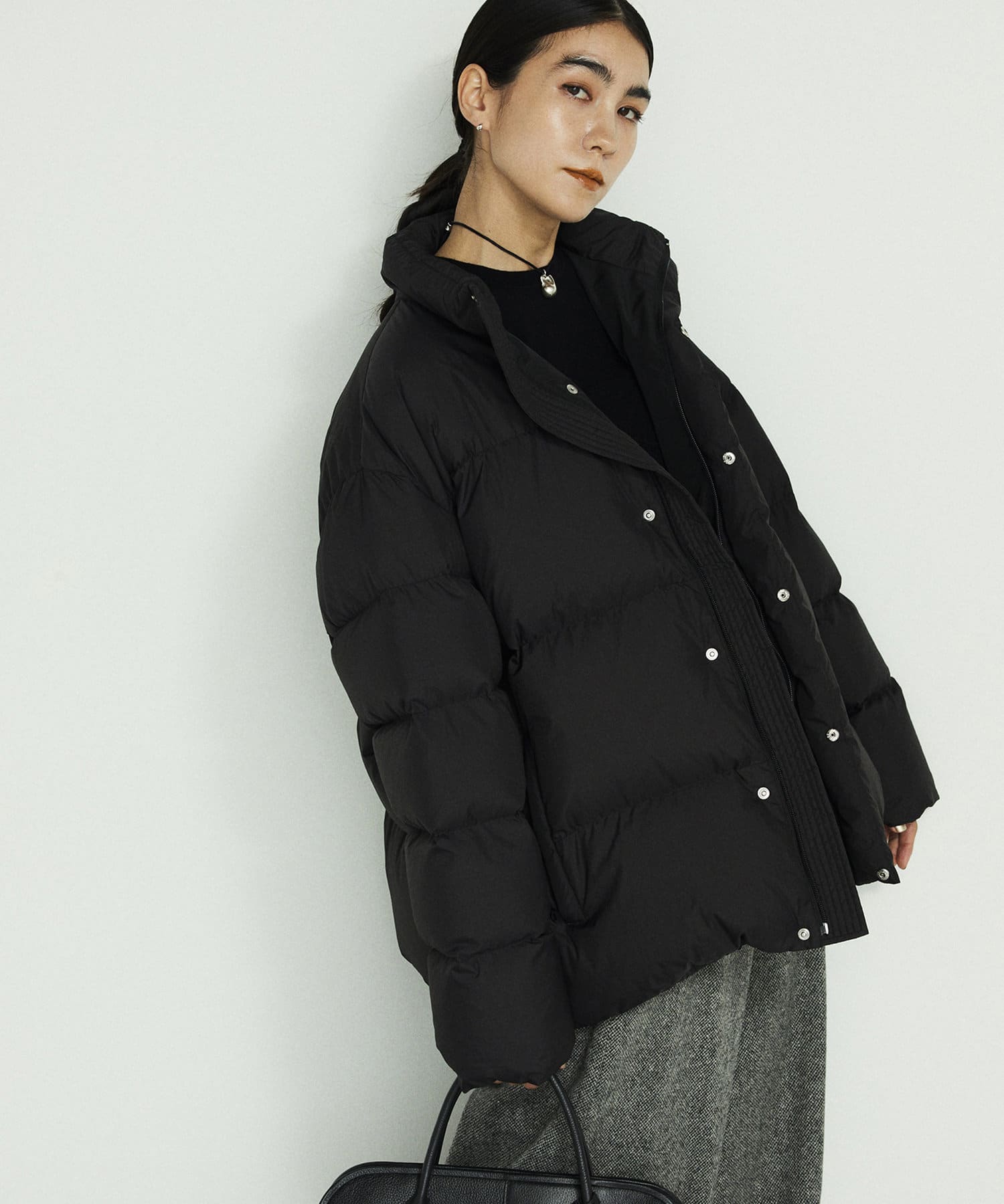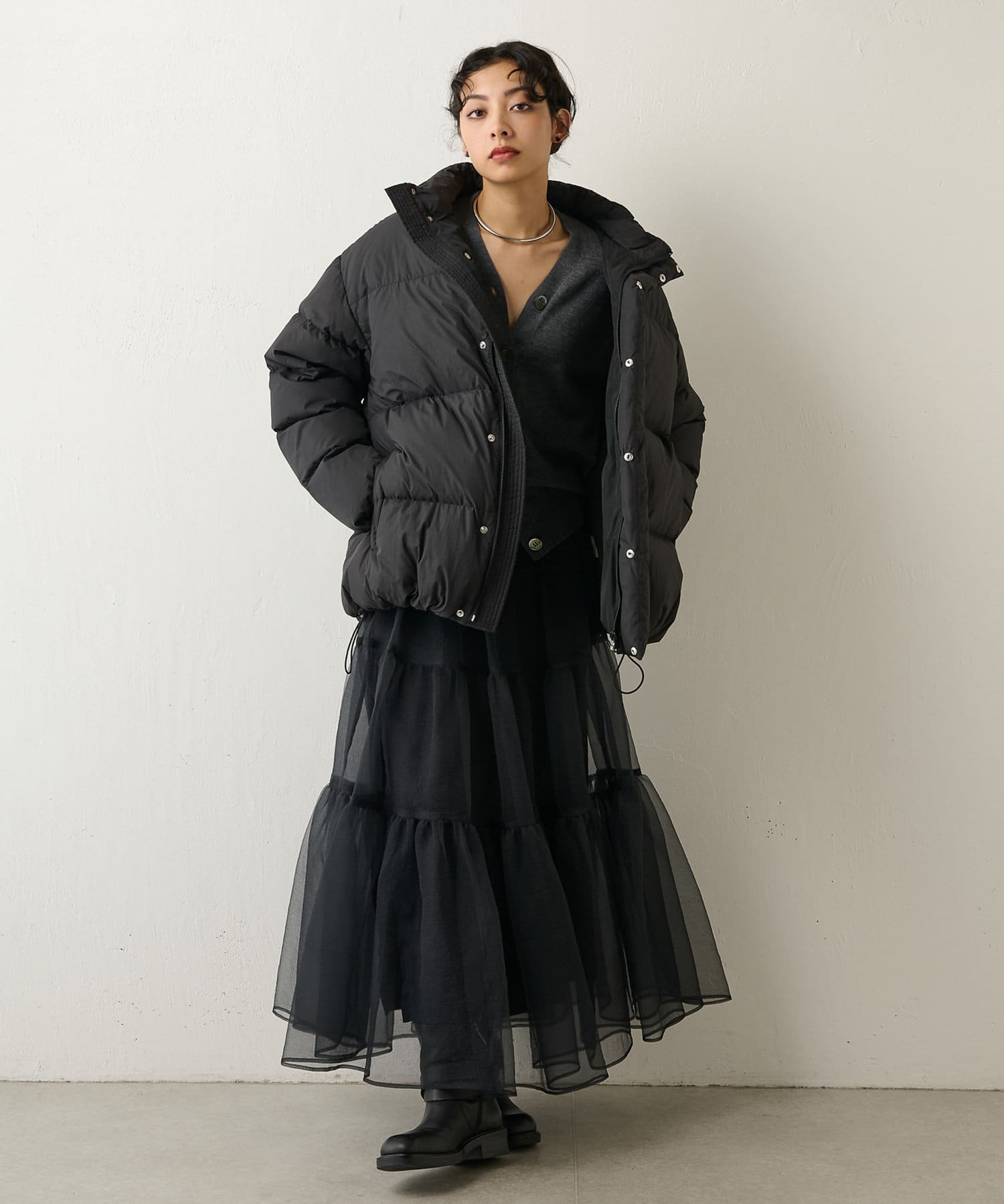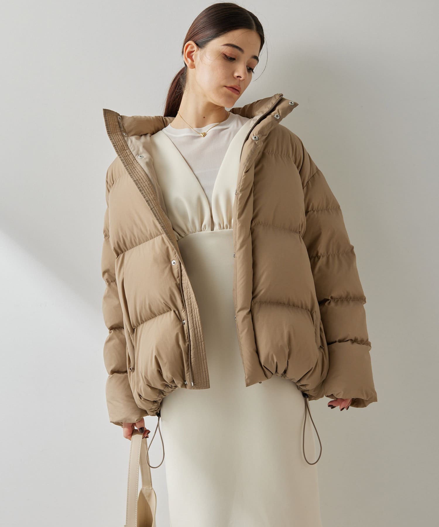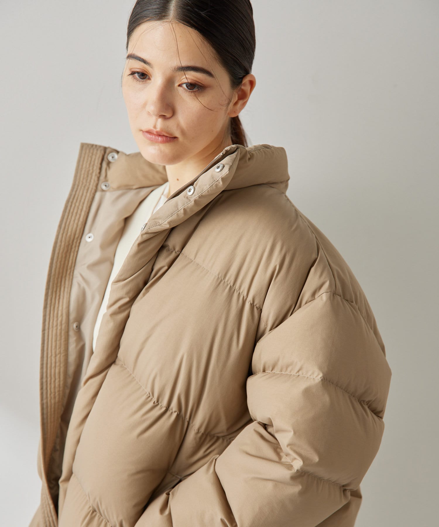 ■ボリュームフォルムがこなれて見えるダウンミドルコート。