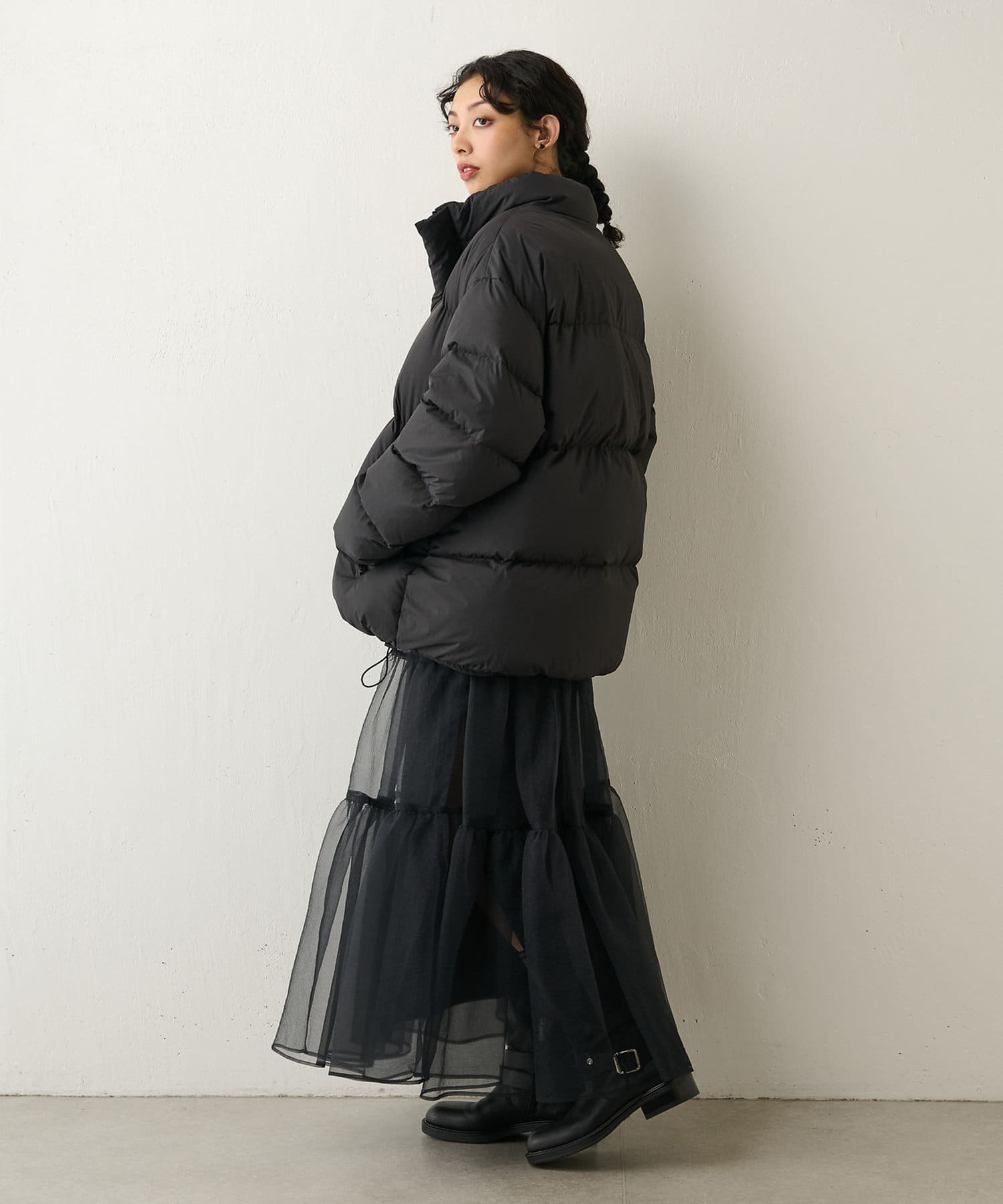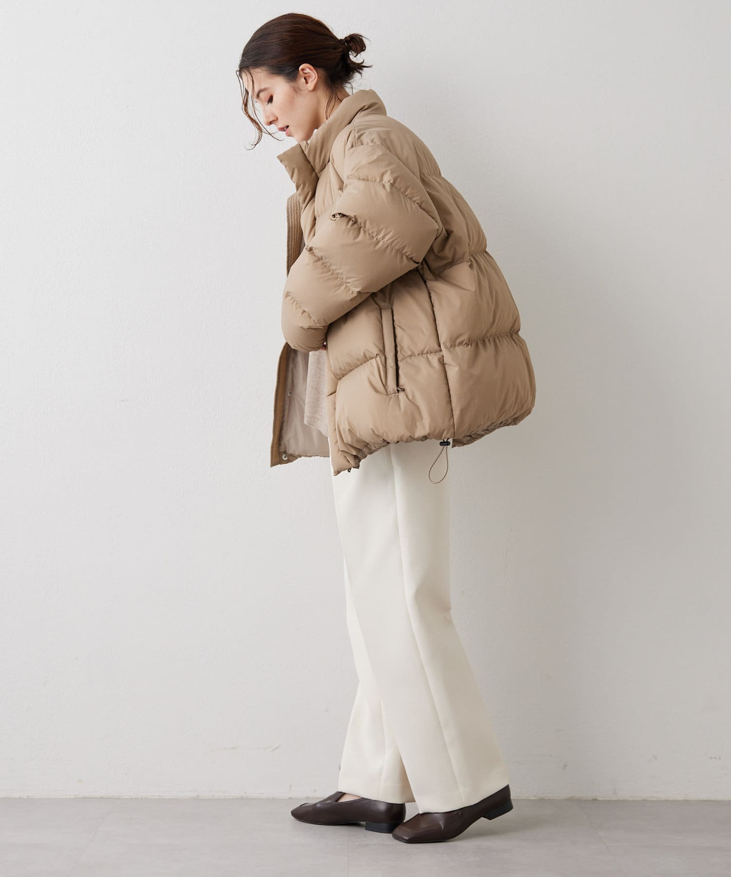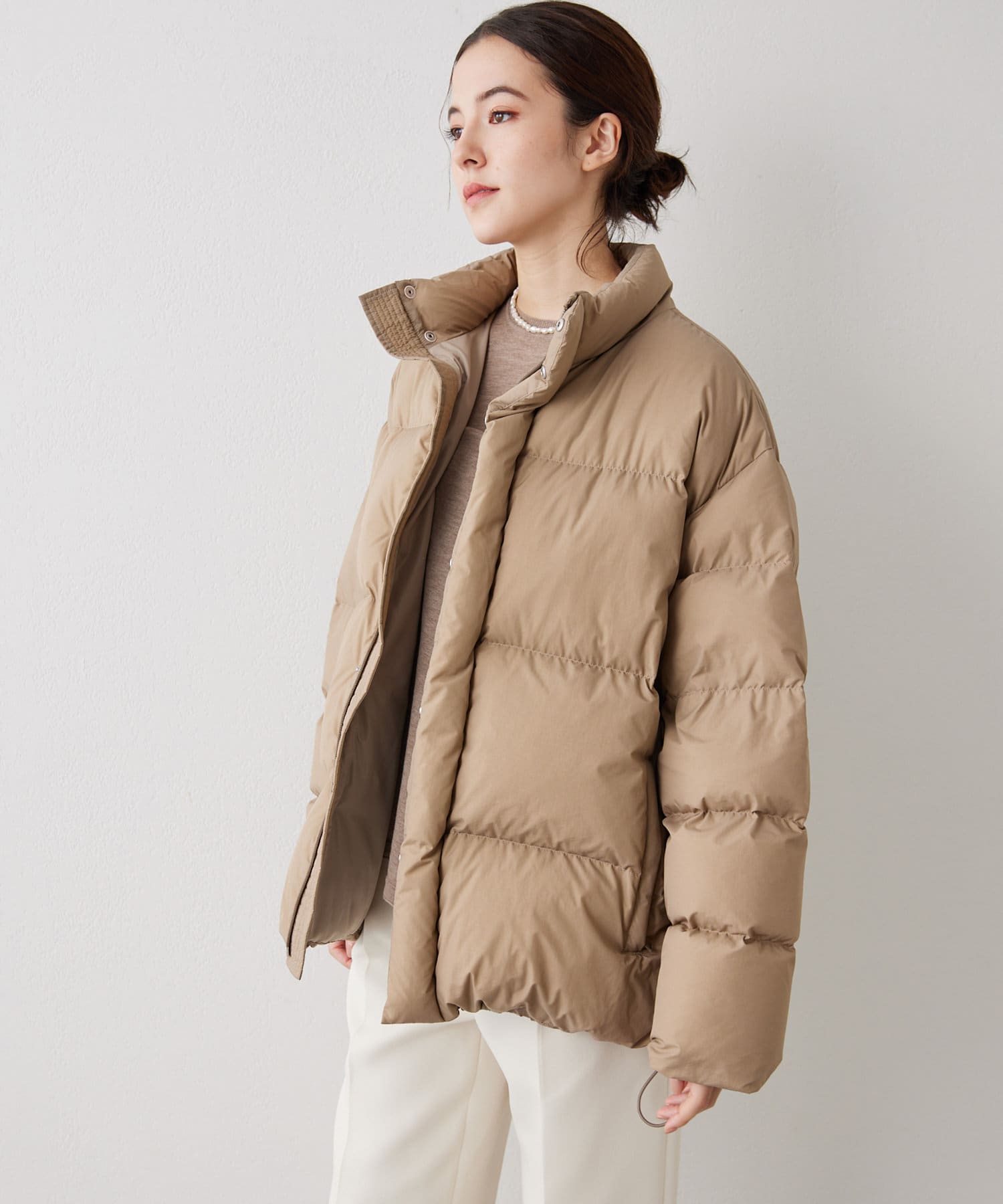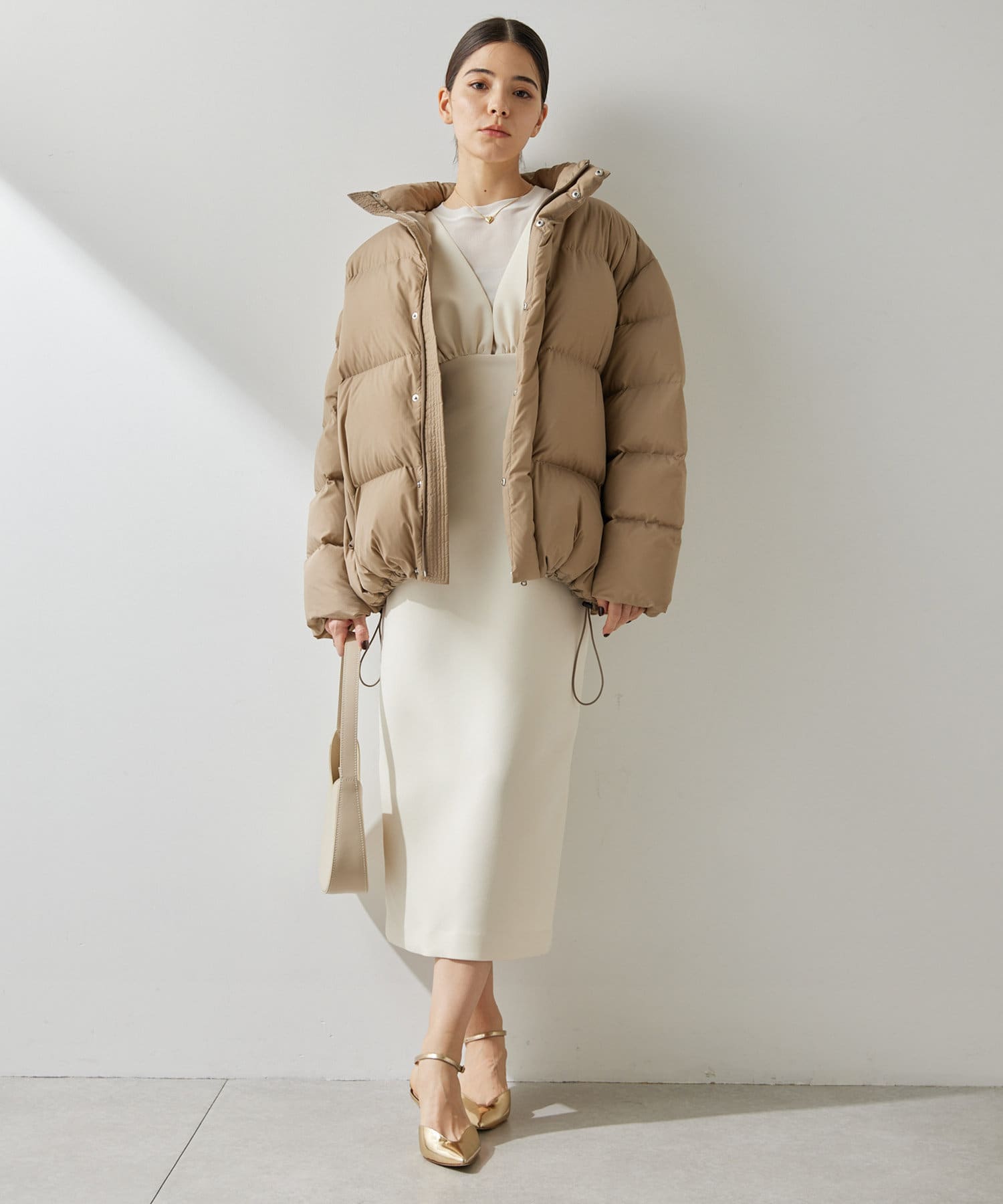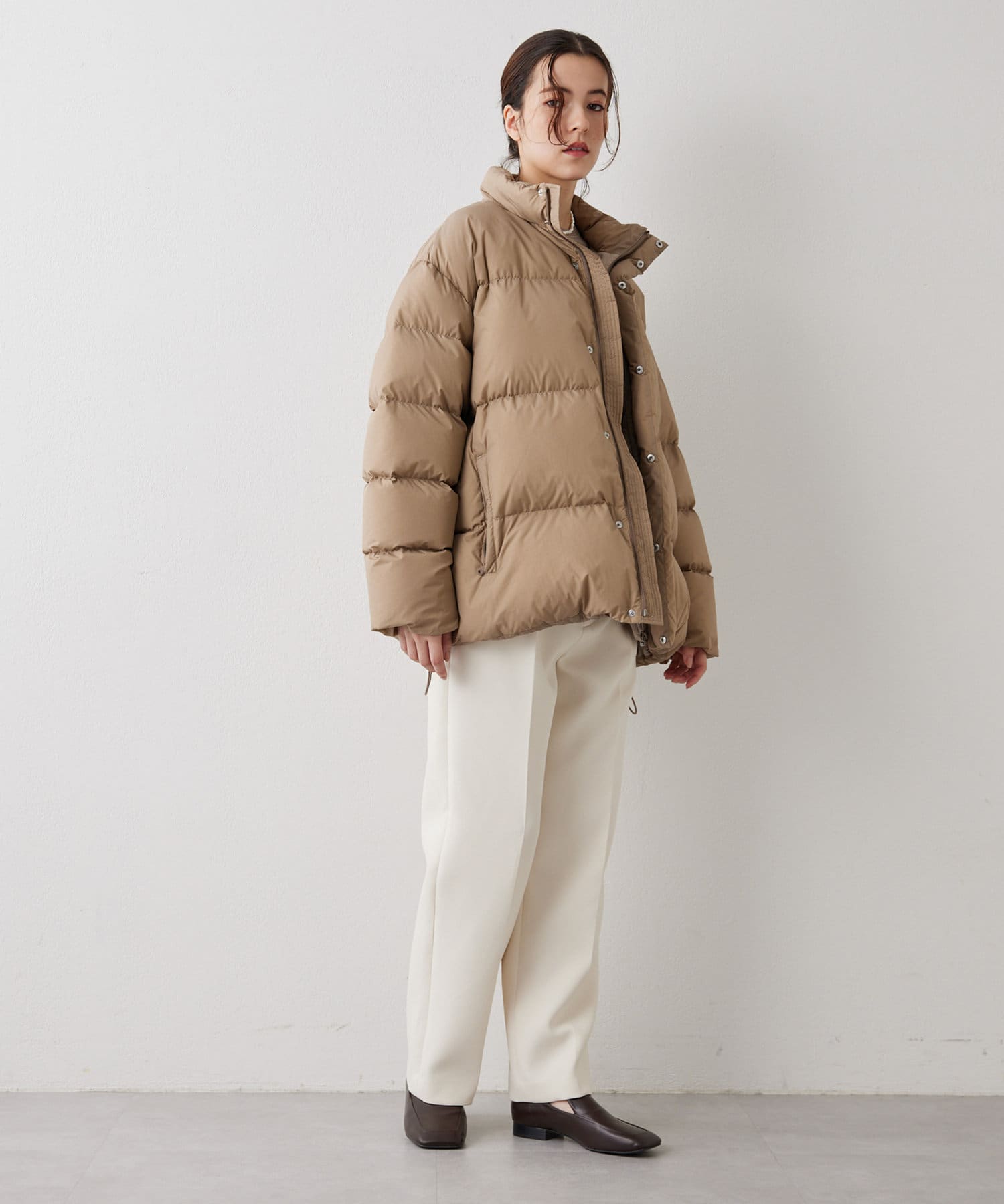 ■ボリュームフォルムがこなれて見えるダウンミドルコート。