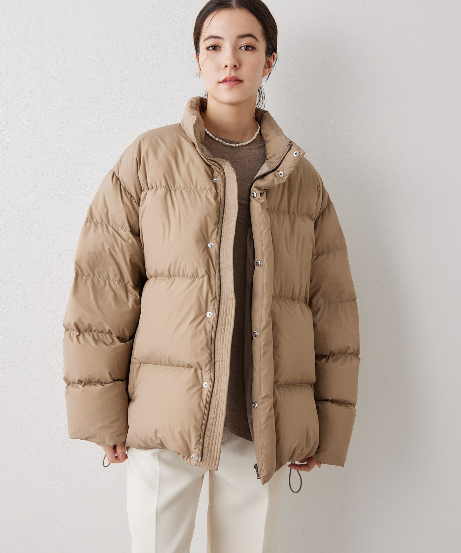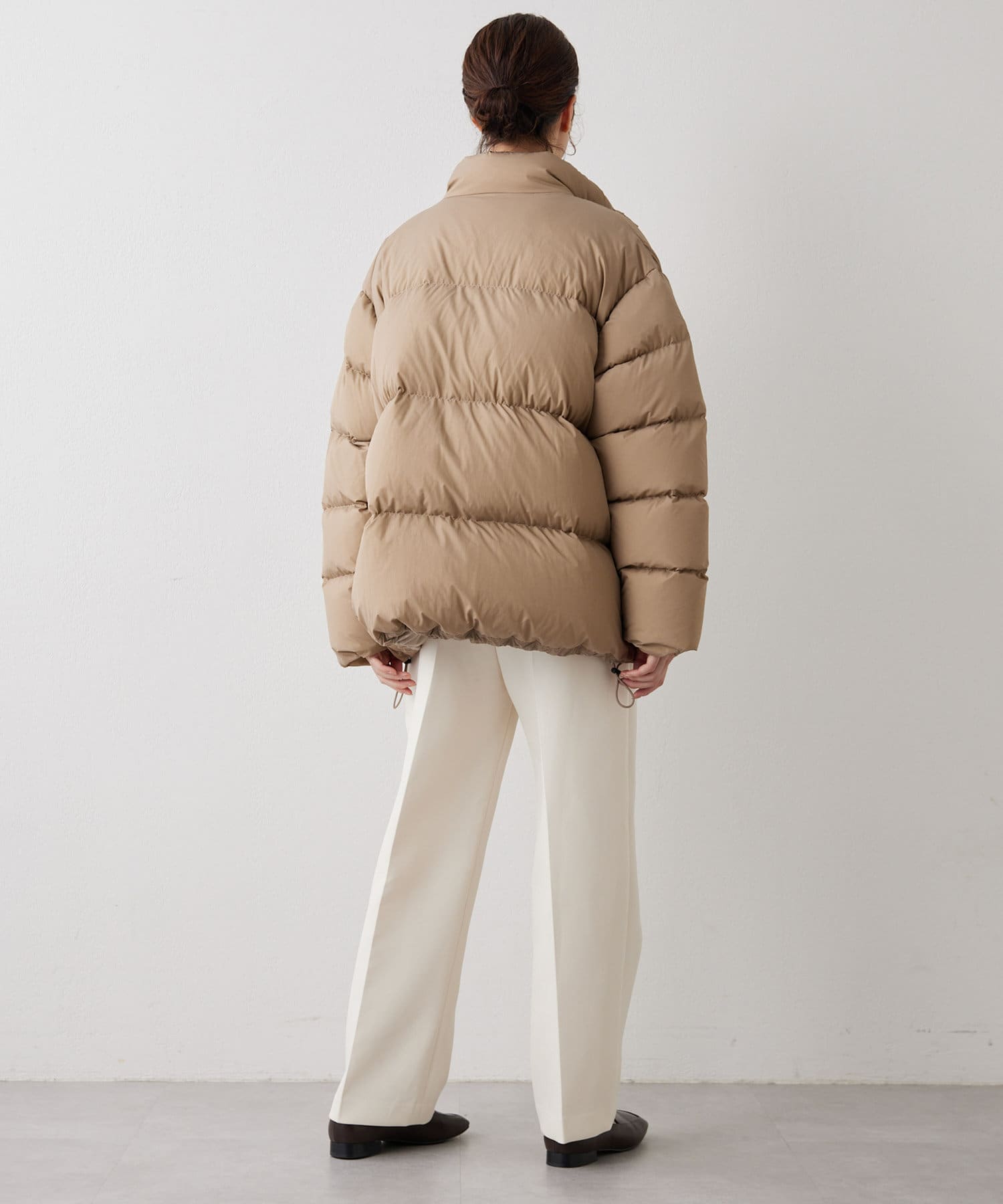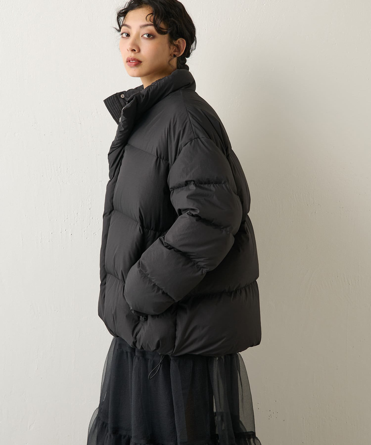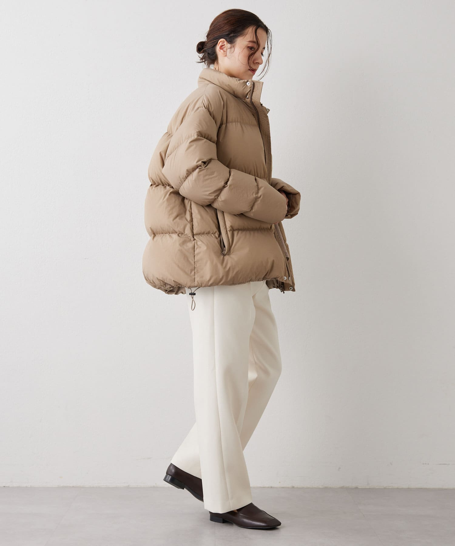 ■ボリュームフォルムがこなれて見えるダウンミドルコート。