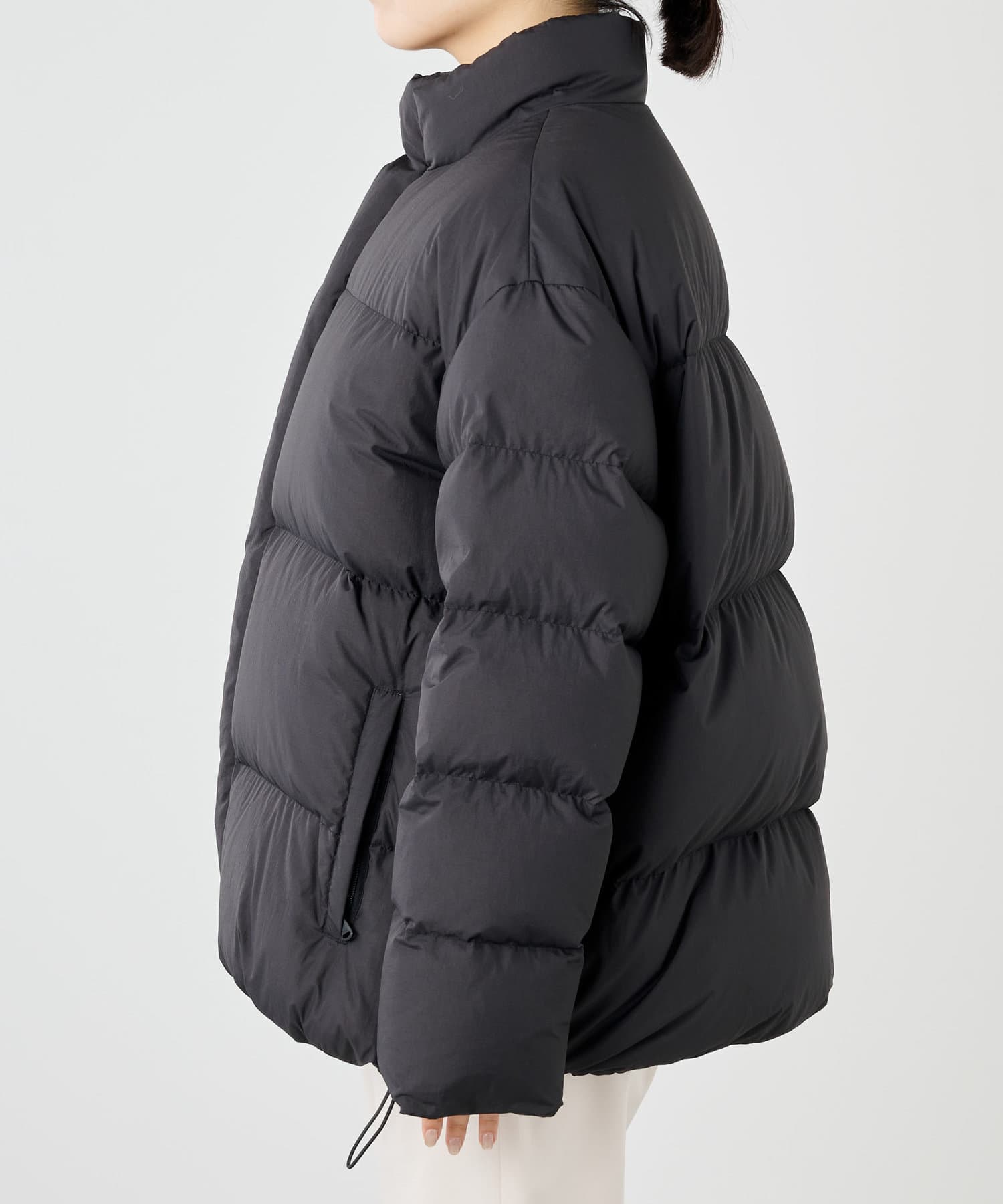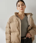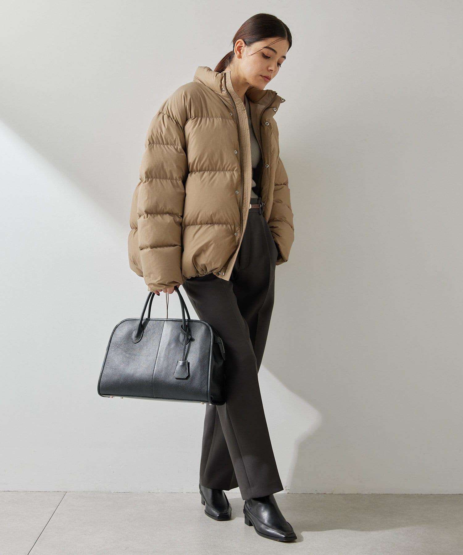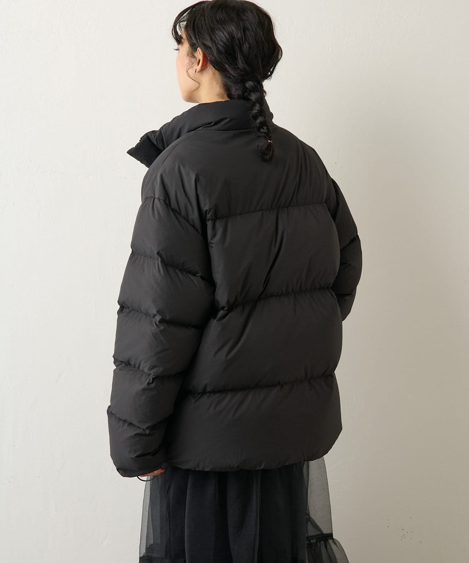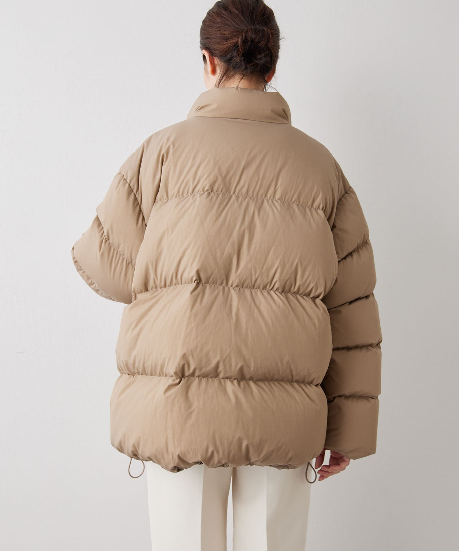 ■ボリュームフォルムがこなれて見えるダウンミドルコート。