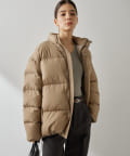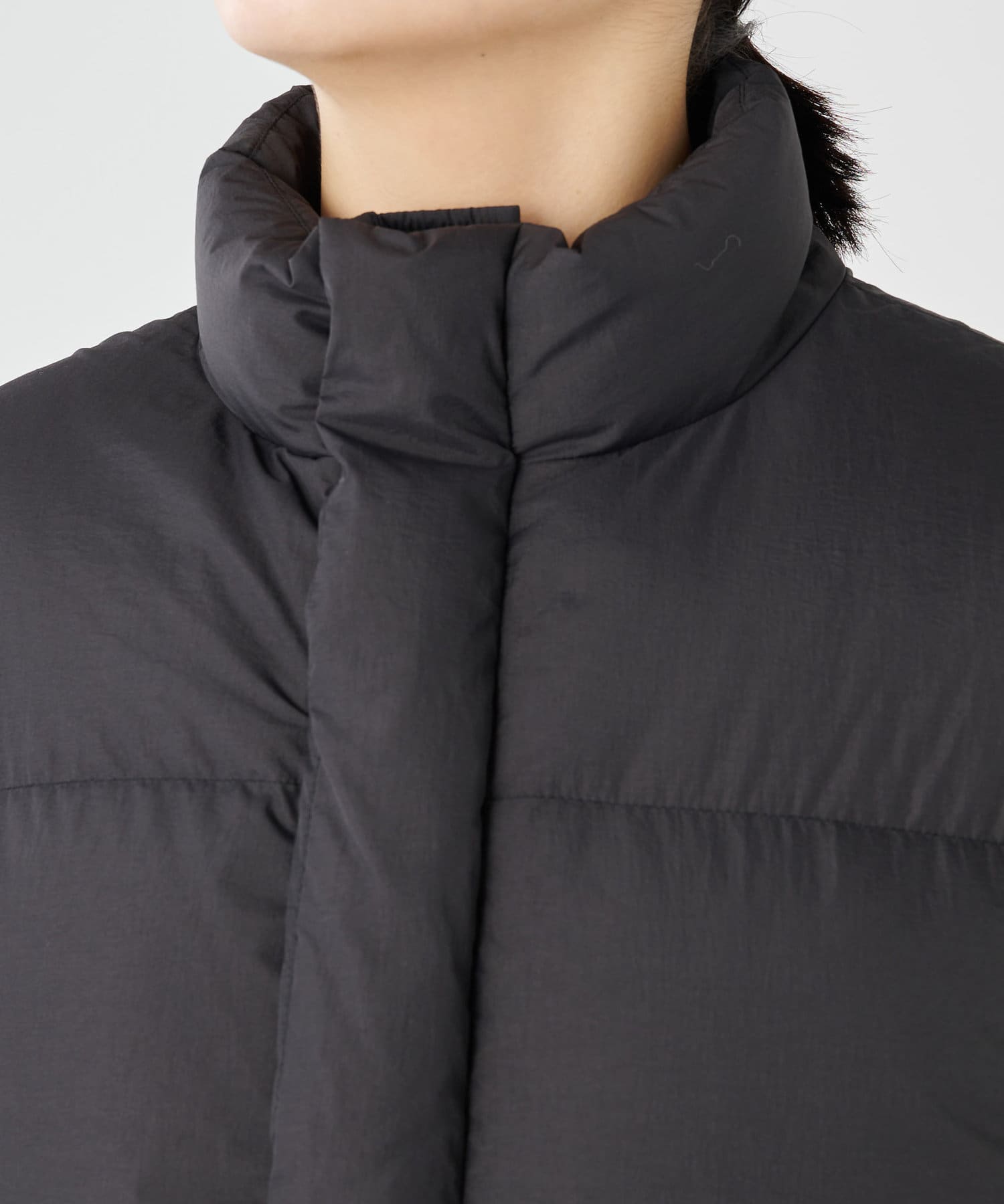 ■スタンドカラーで顔周りをすっきりと演出し、マットな質感が品の良さをプラスしてくれる大人のダウン。
