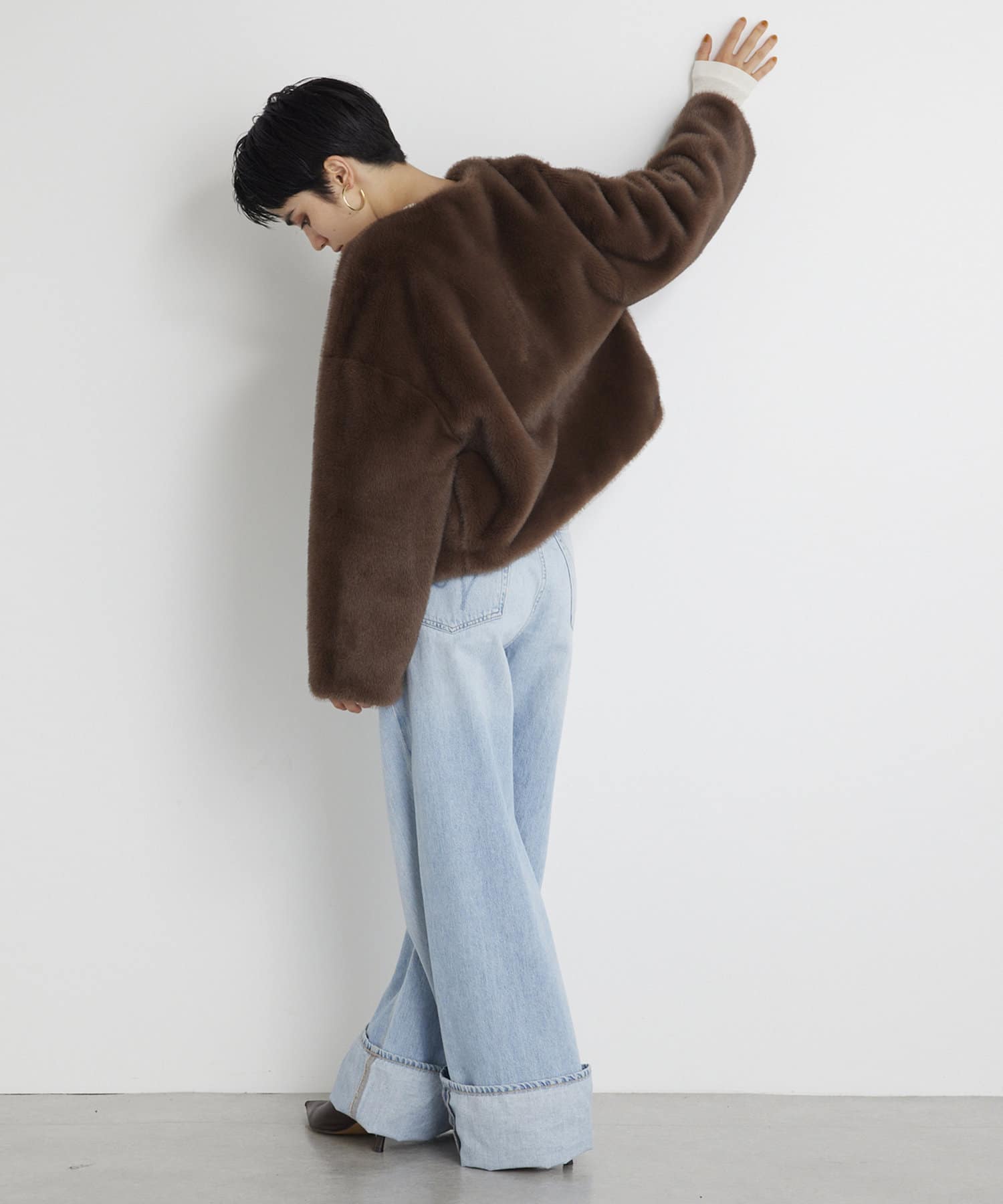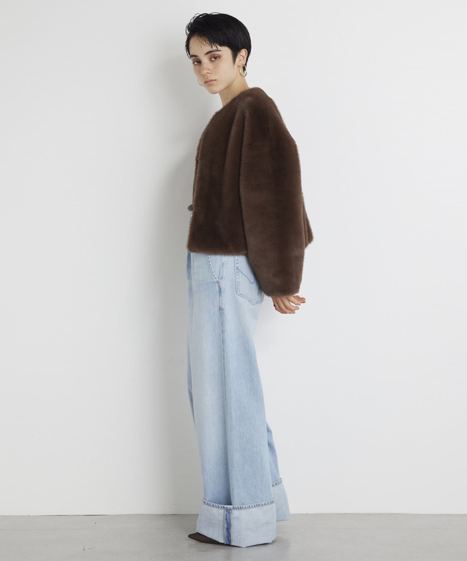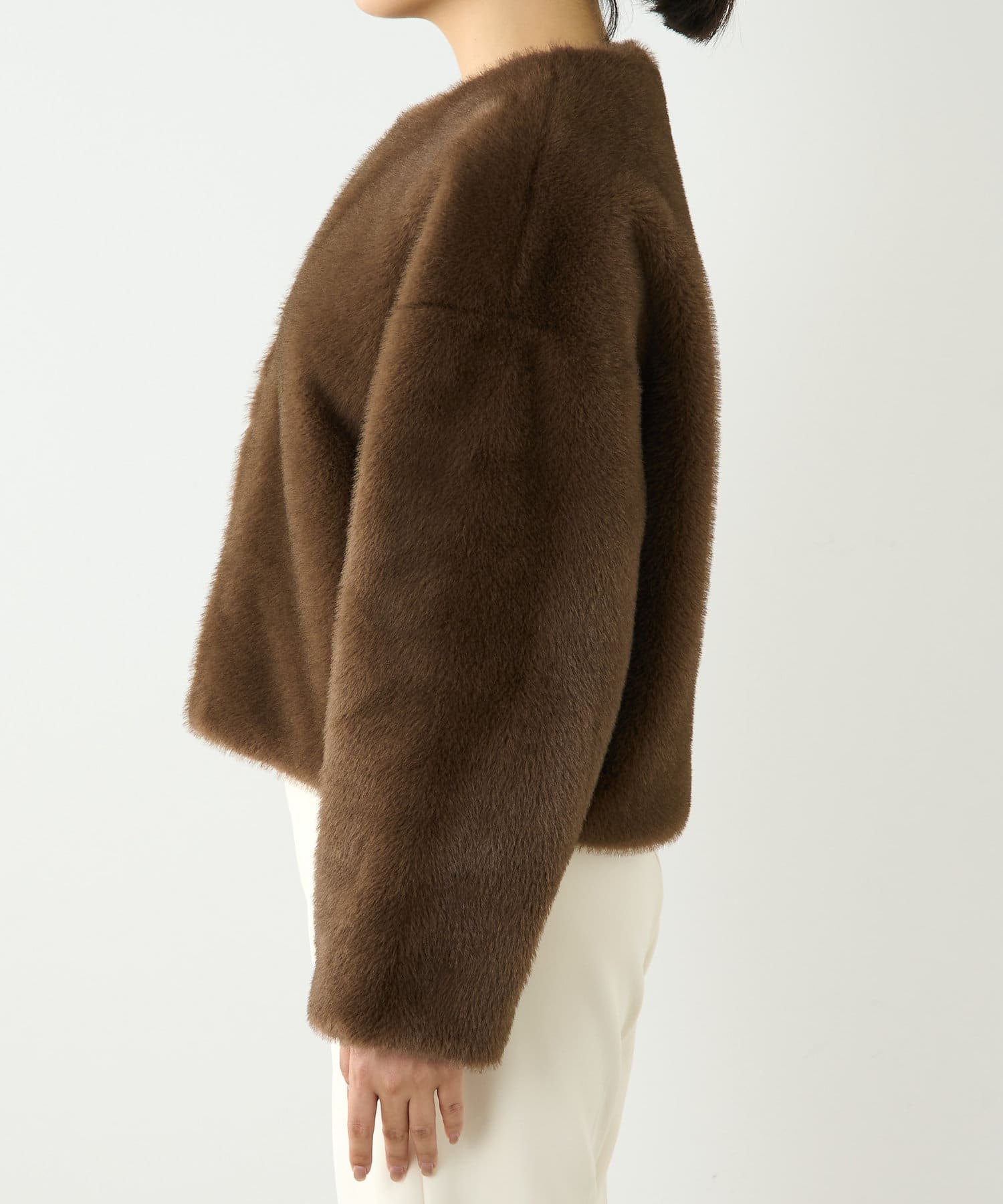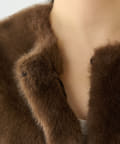 ■ミンクファーを模したフェイク素材を使用したショートコート。