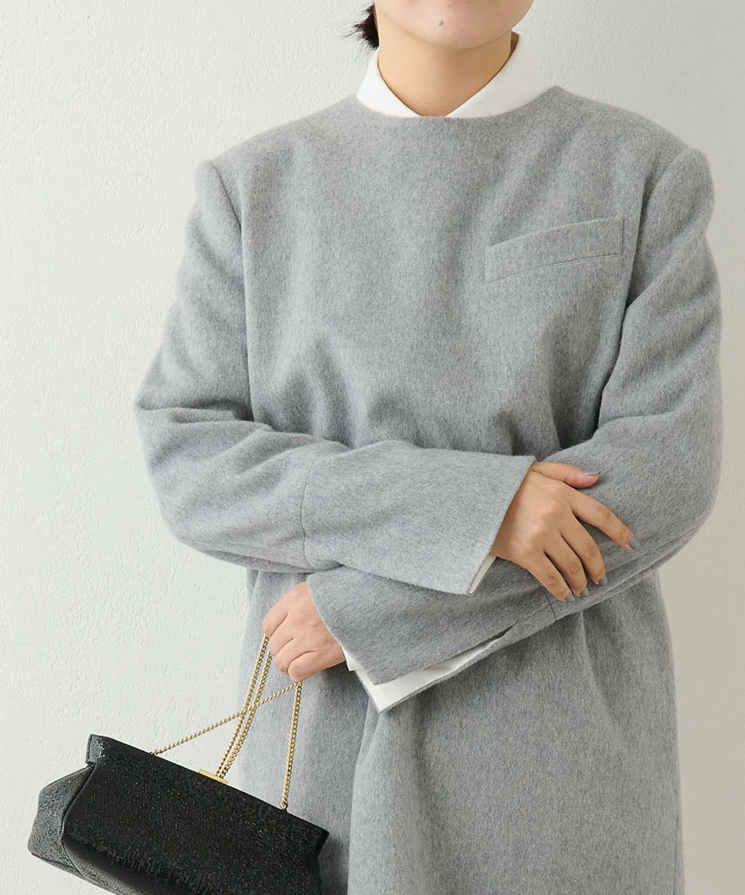 ■肩パット入りで型崩れしにくく、シルエットをきれいにキープ。