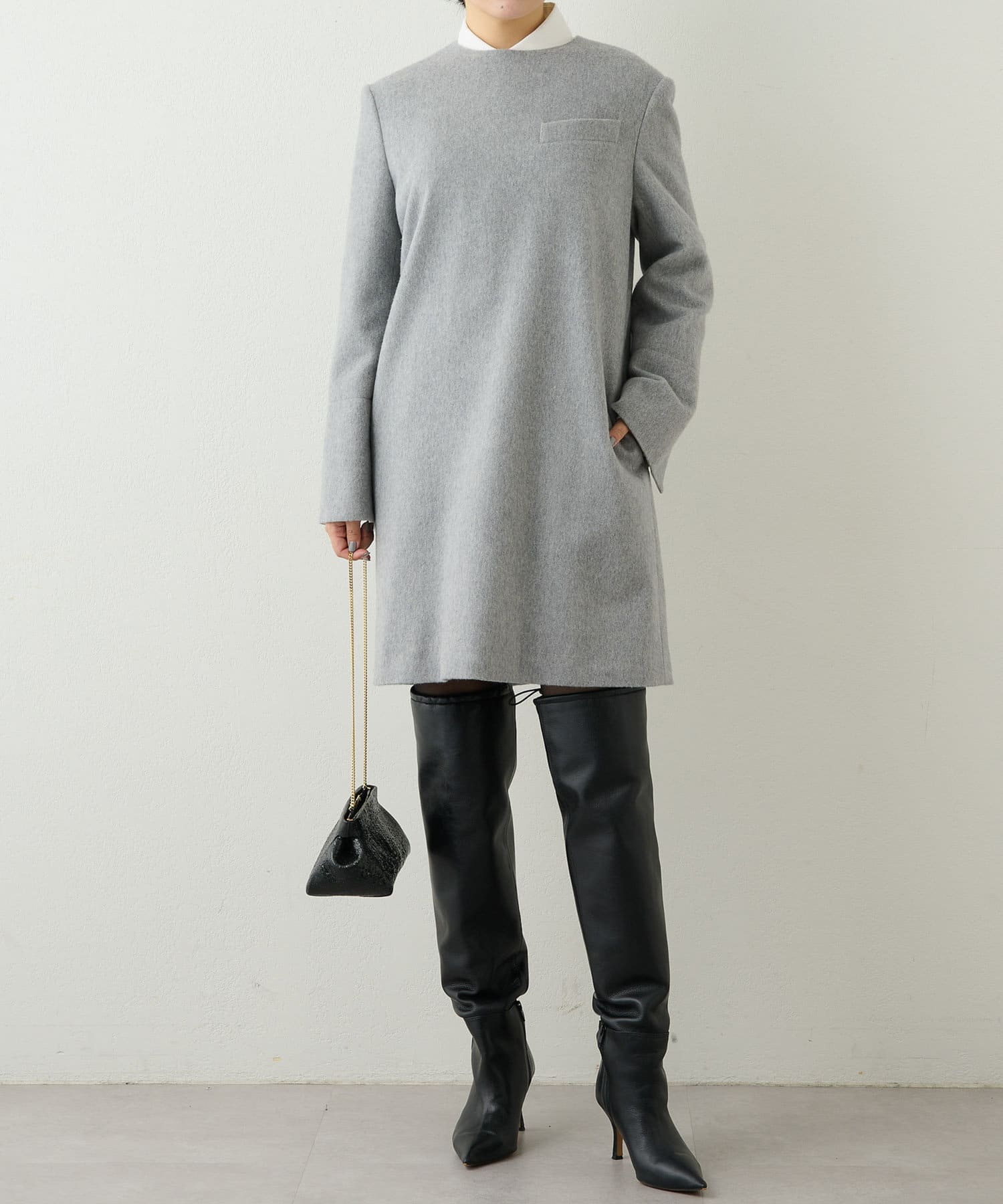 ■ジャケットのディテールを匂わせたマニッシュなミニワンピース。