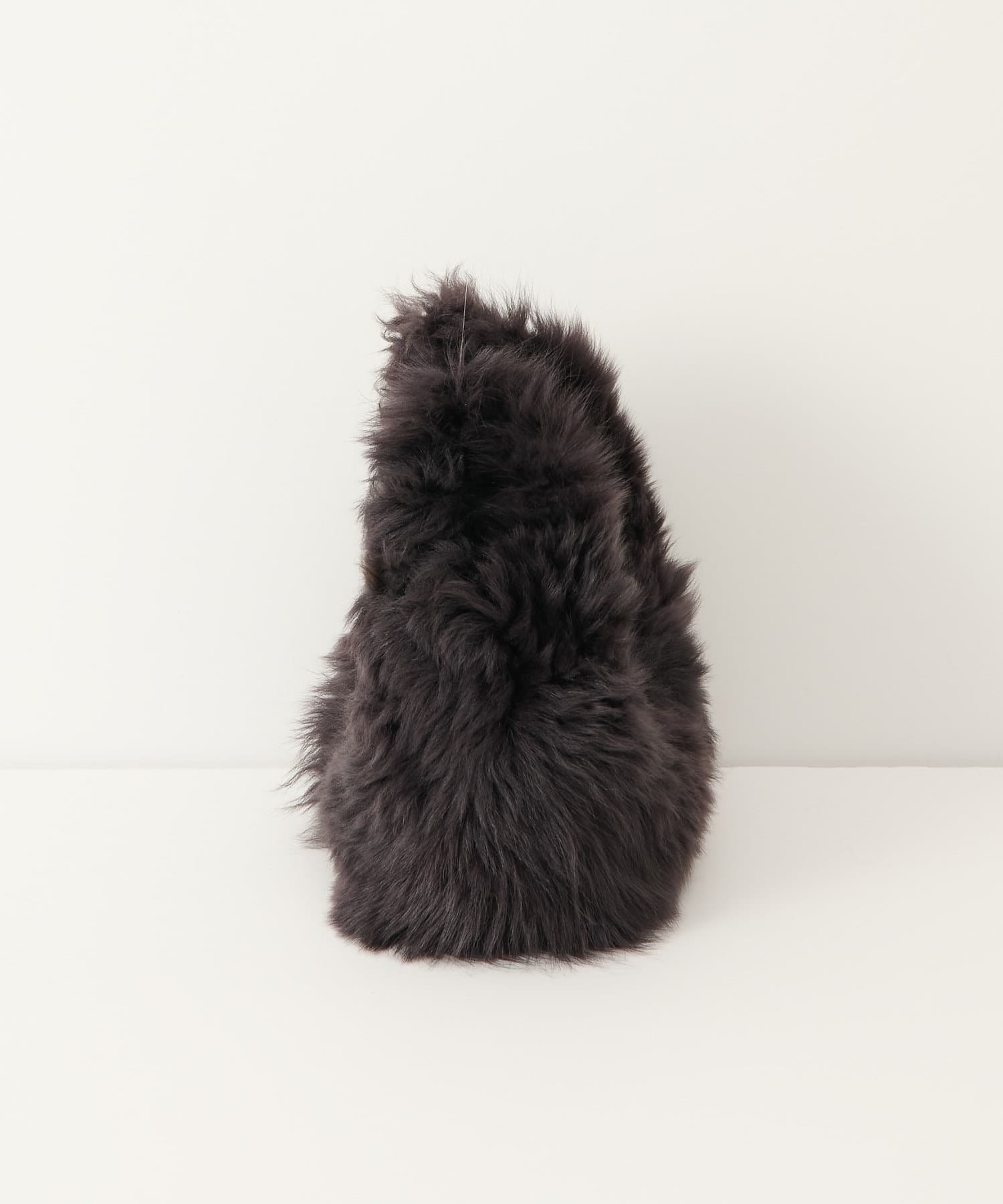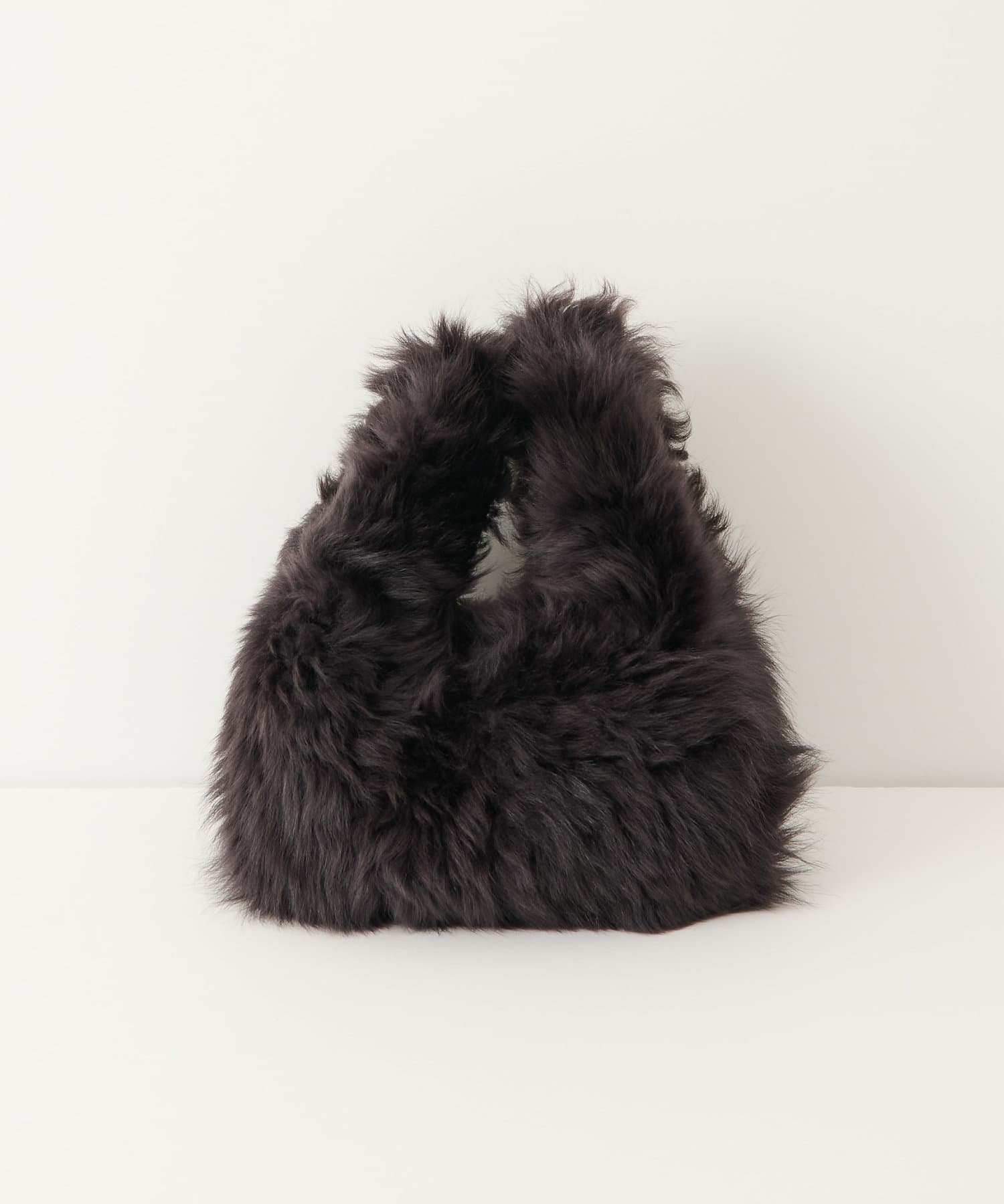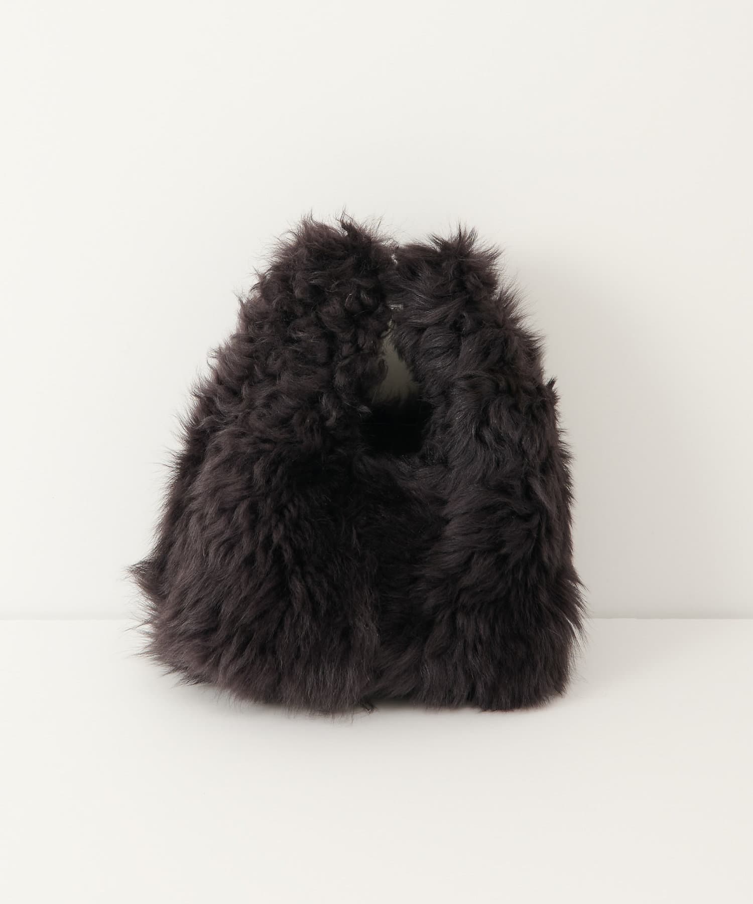 ■ころんとしたフォルムが可愛らしいムートンハンドバッグ。