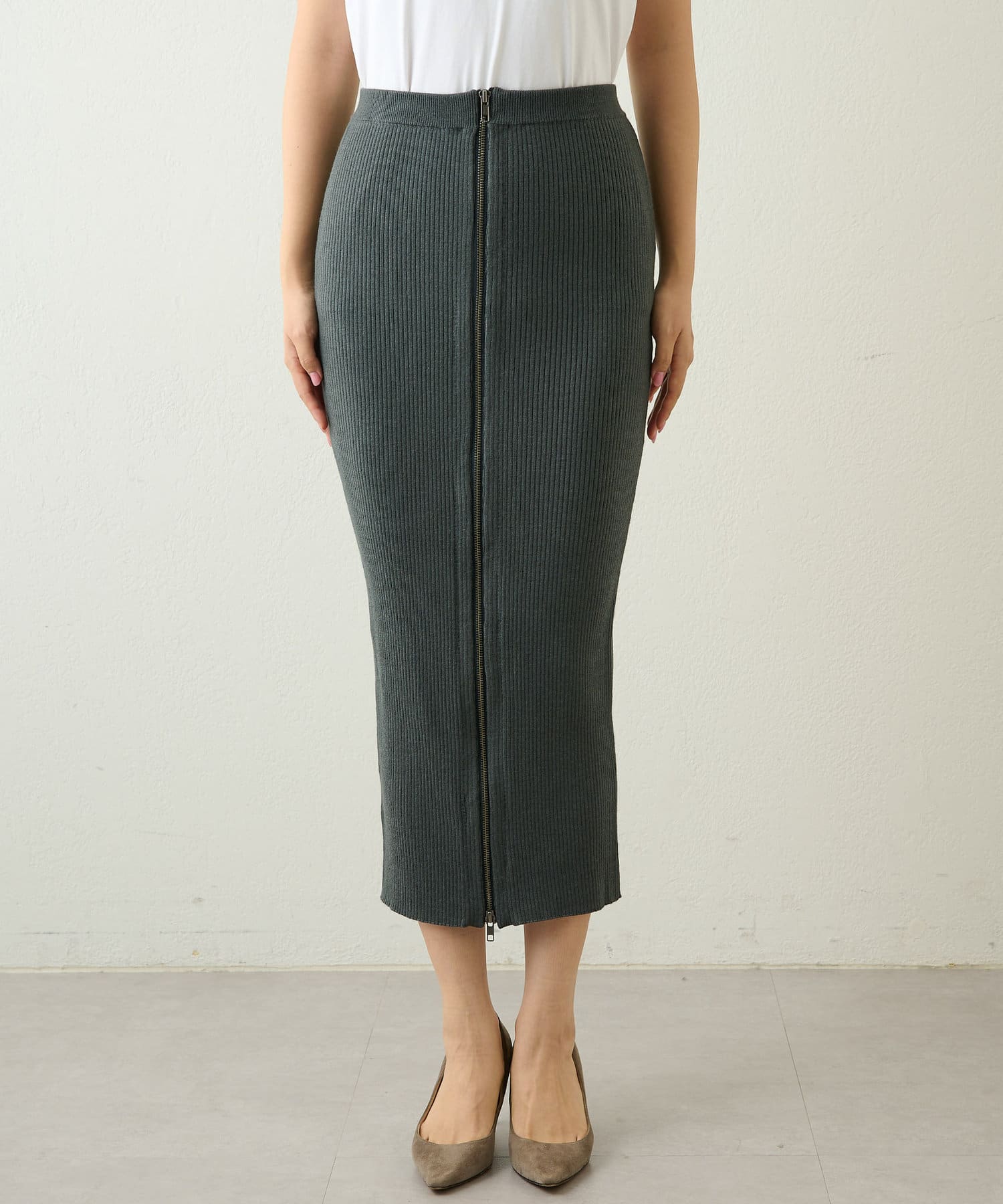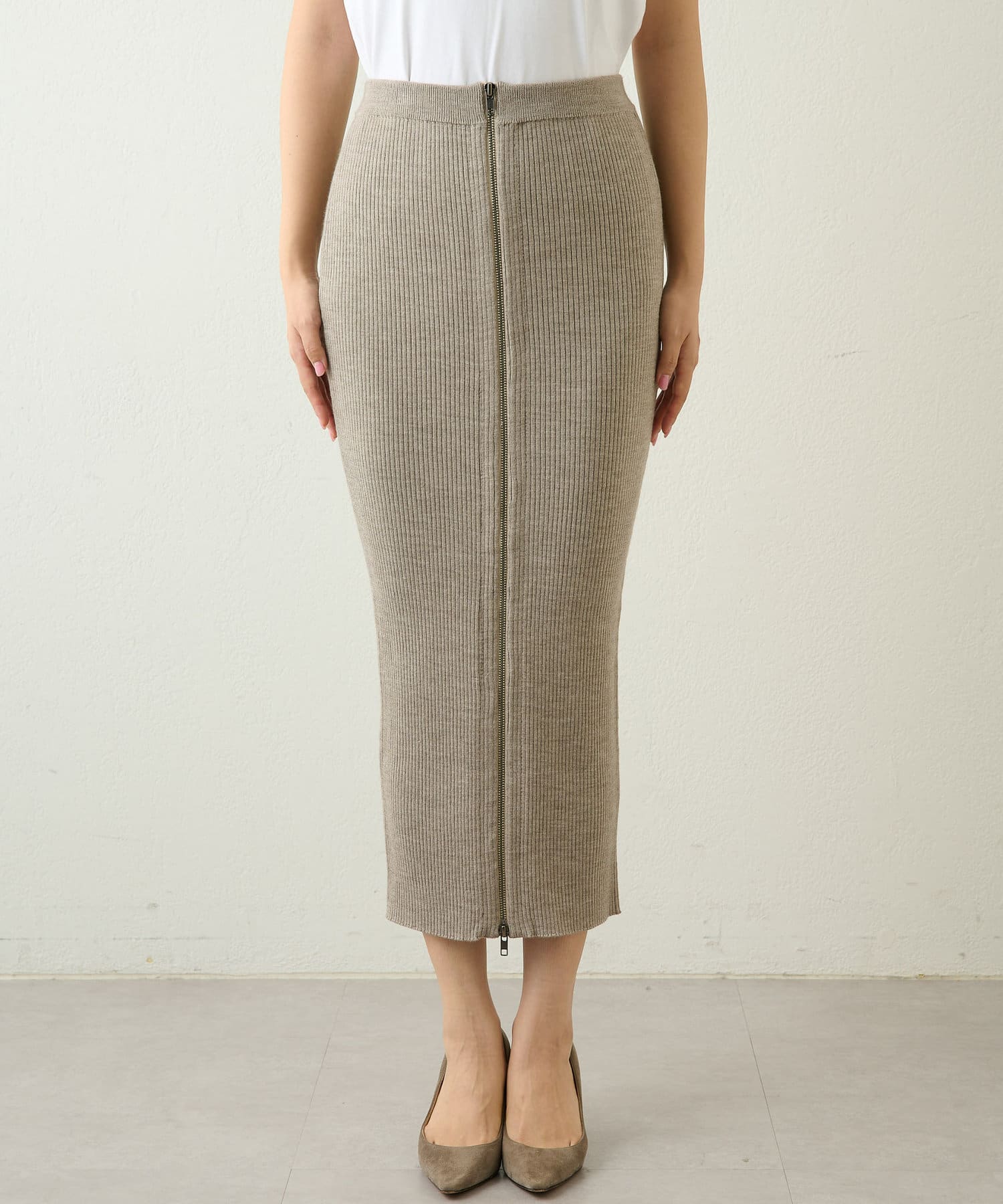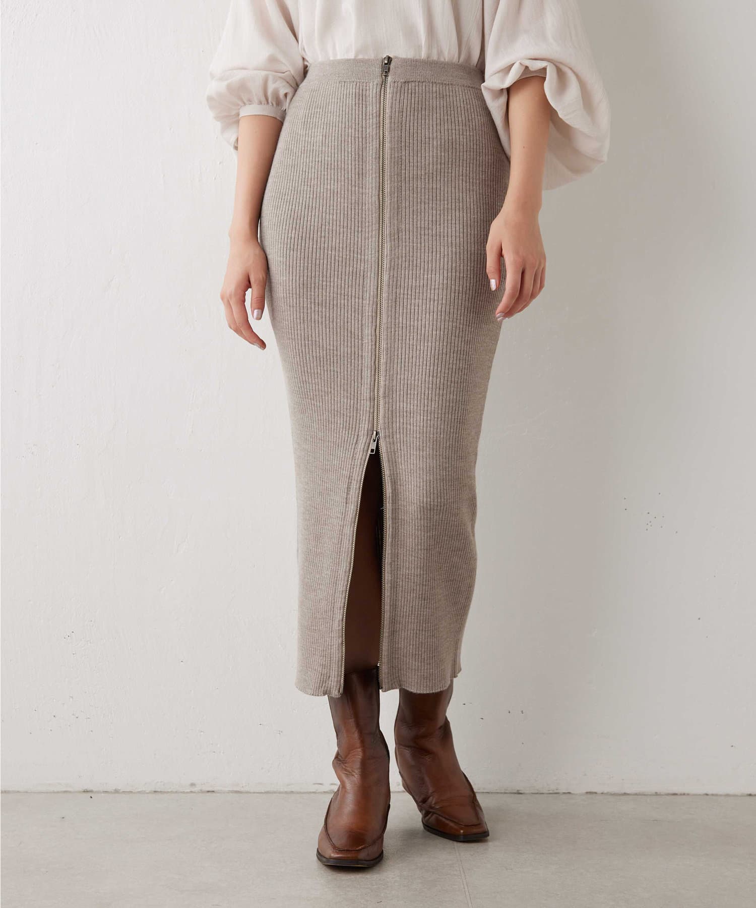 ジップで程よくエッジを効かせた、ニットタイトスカート