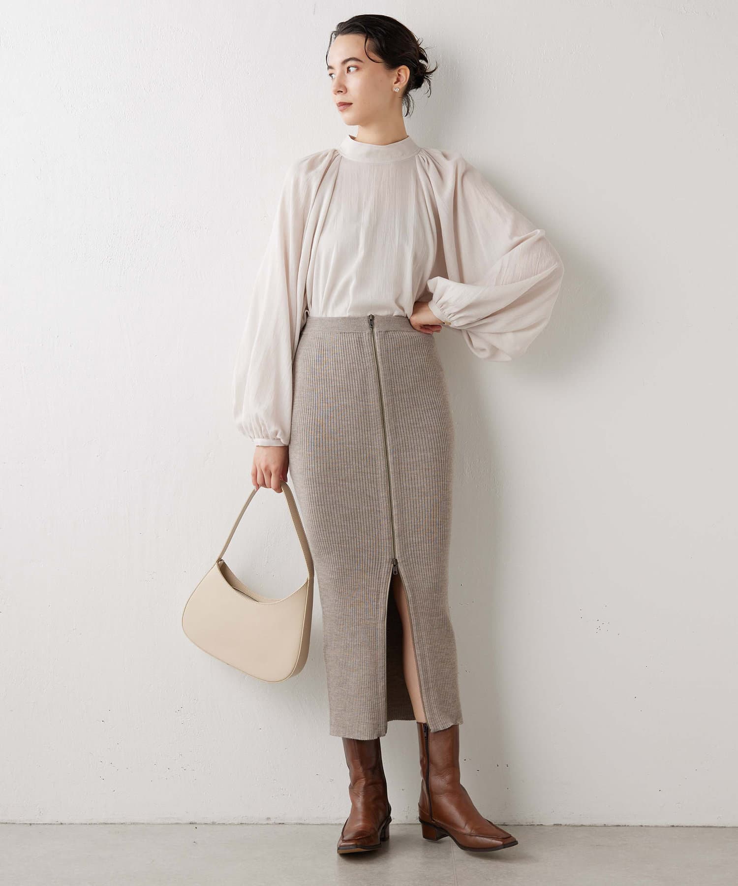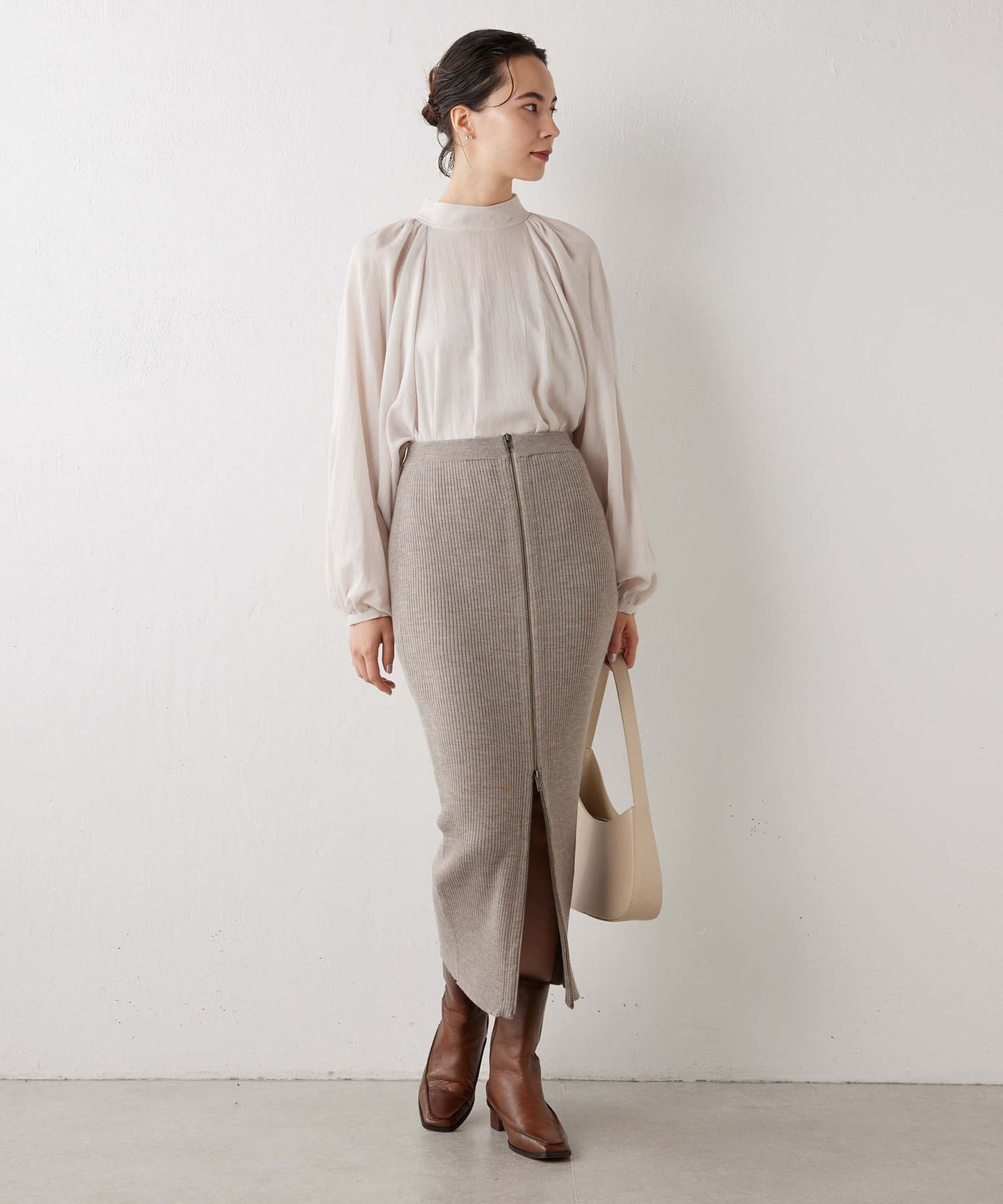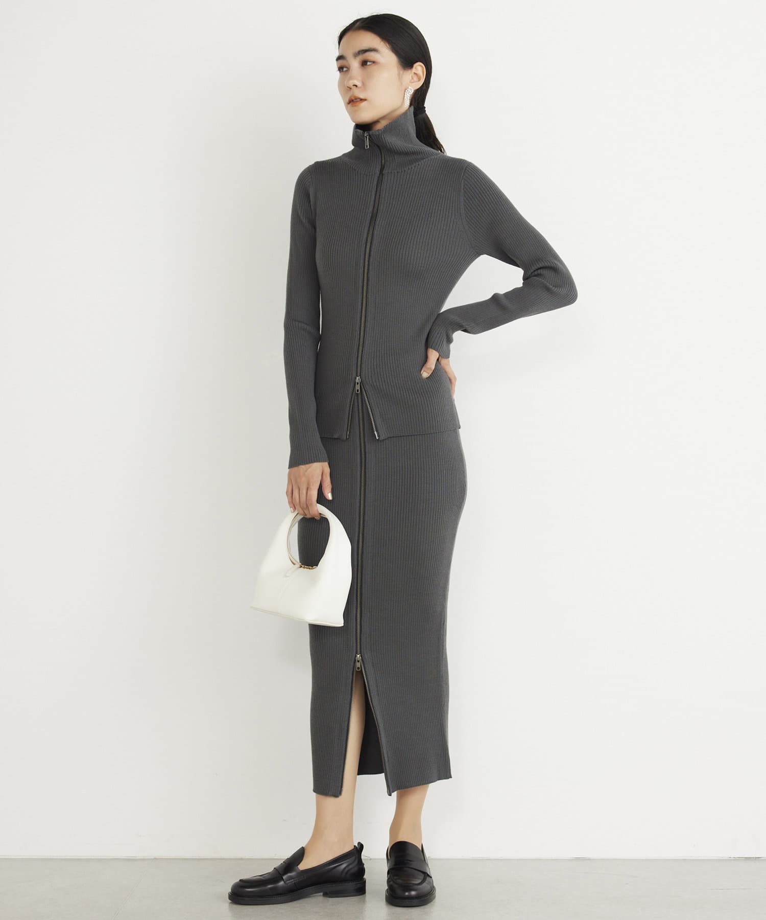 ジップで程よくエッジを効かせた、ニットタイトスカート