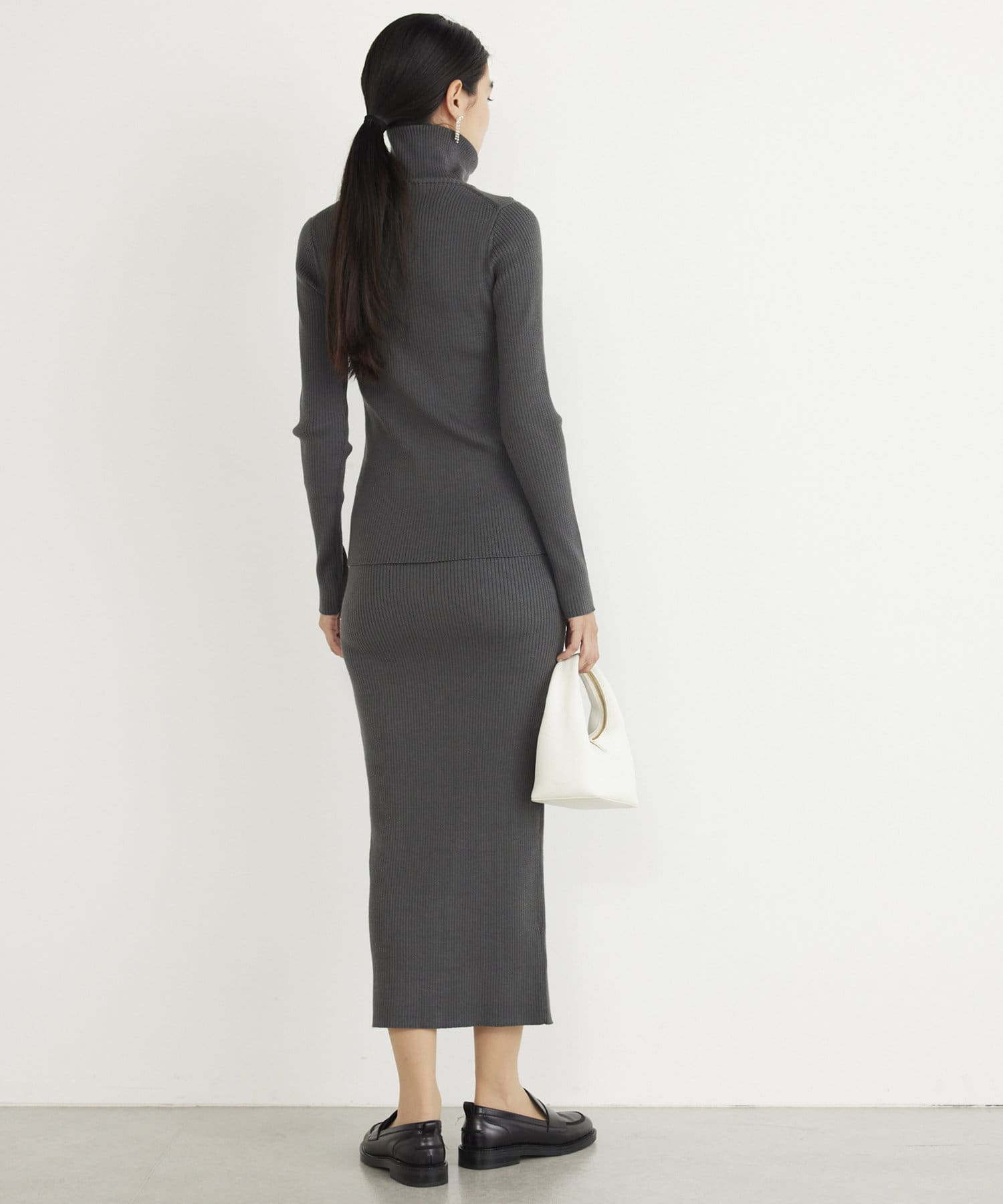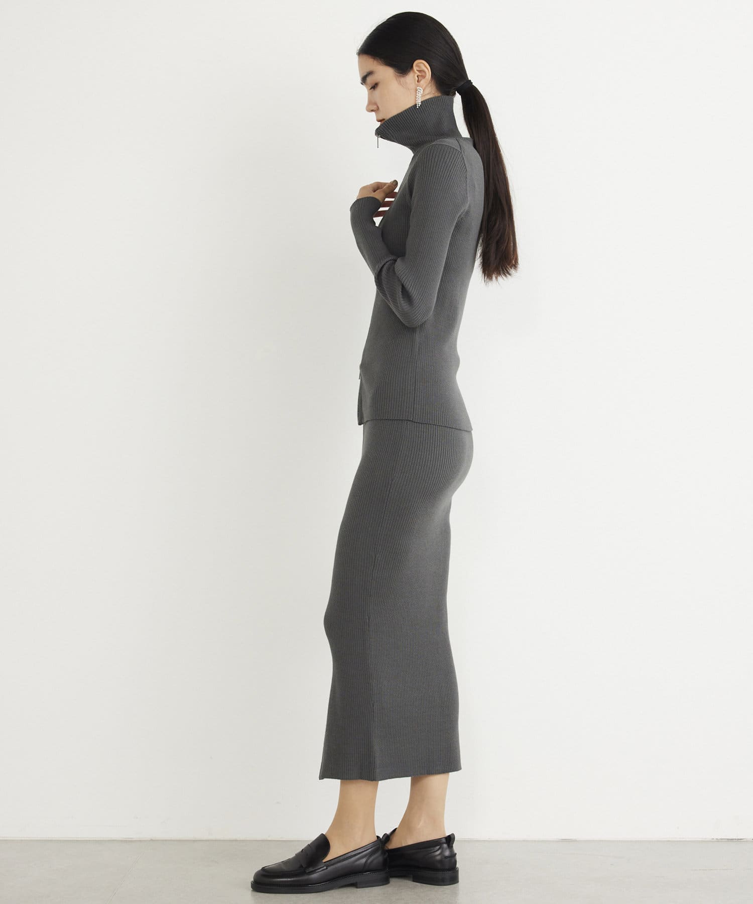 ■タイトなシルエットながら、リブが縦のラインを強調しすっきりと見せてくれる一枚。