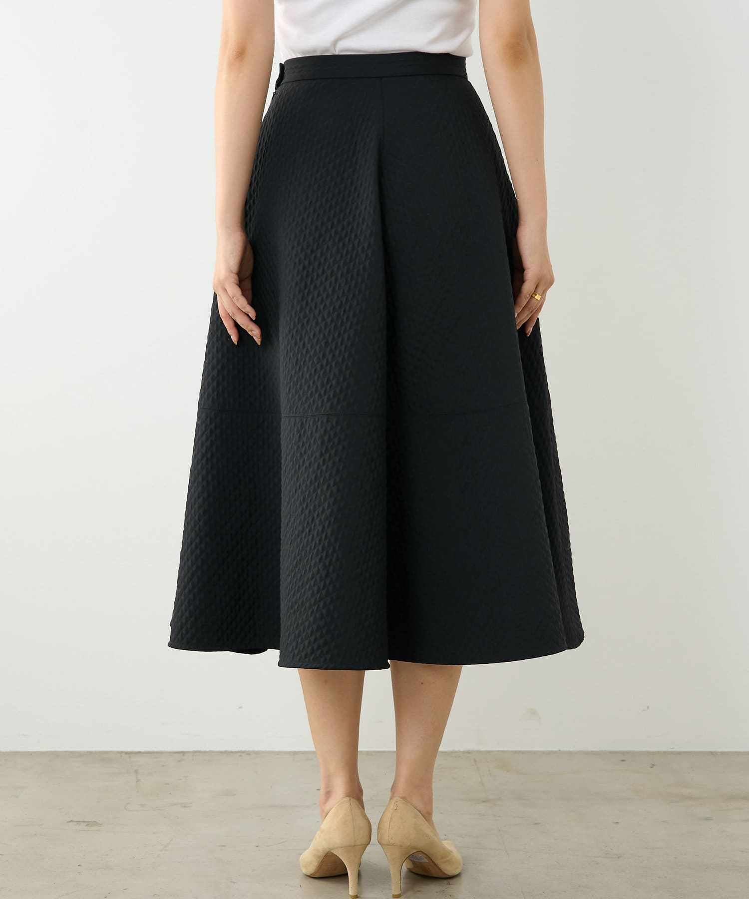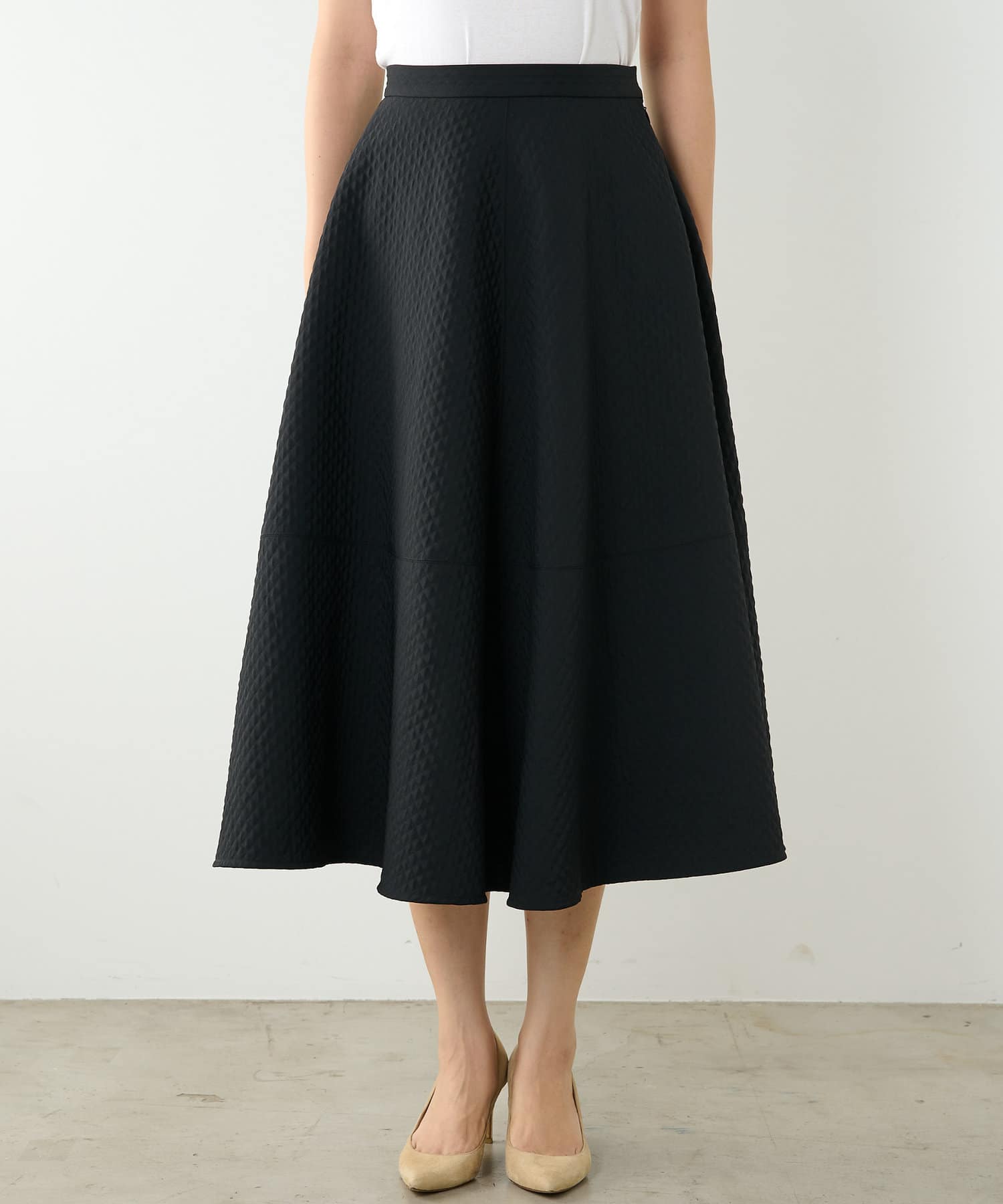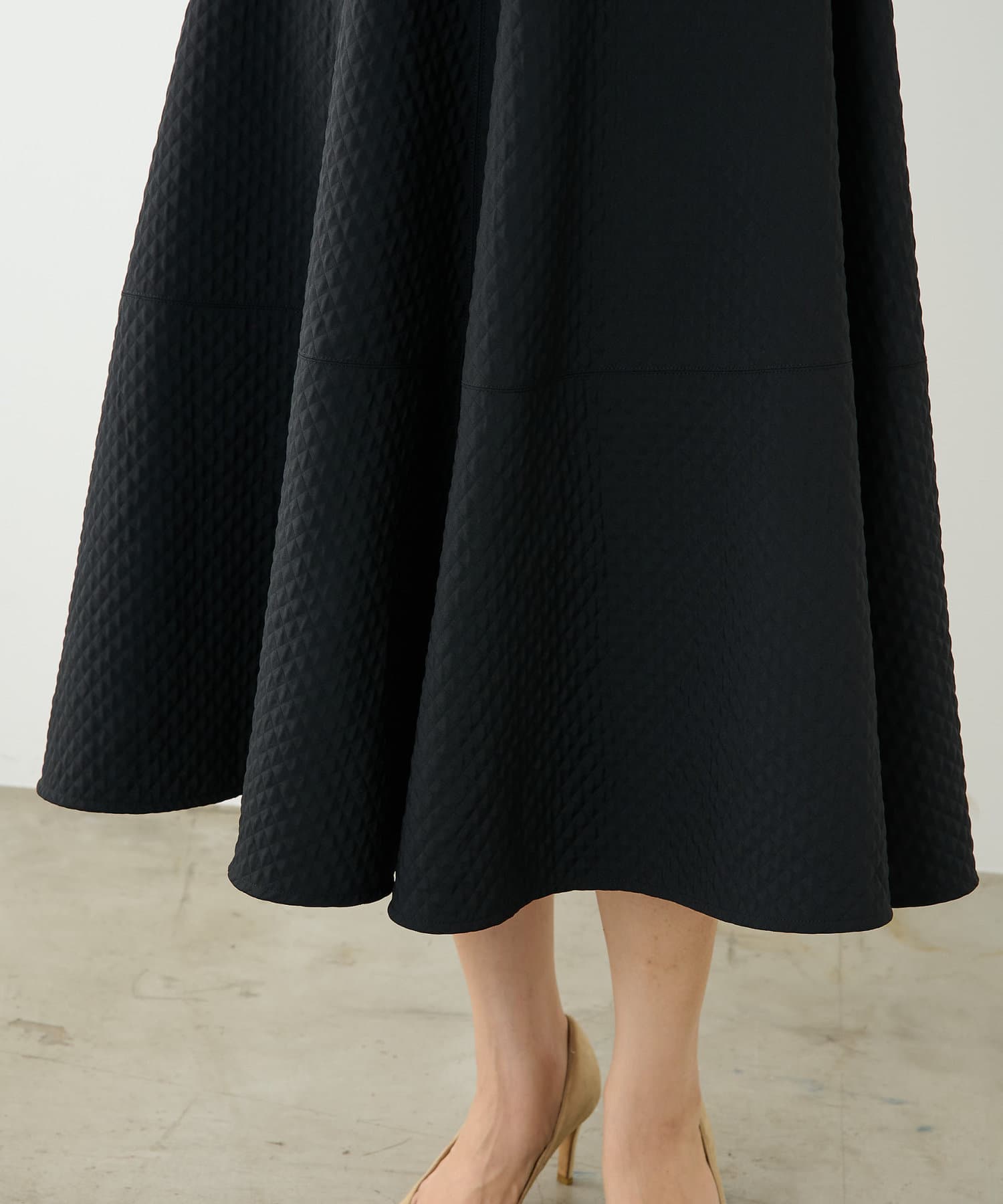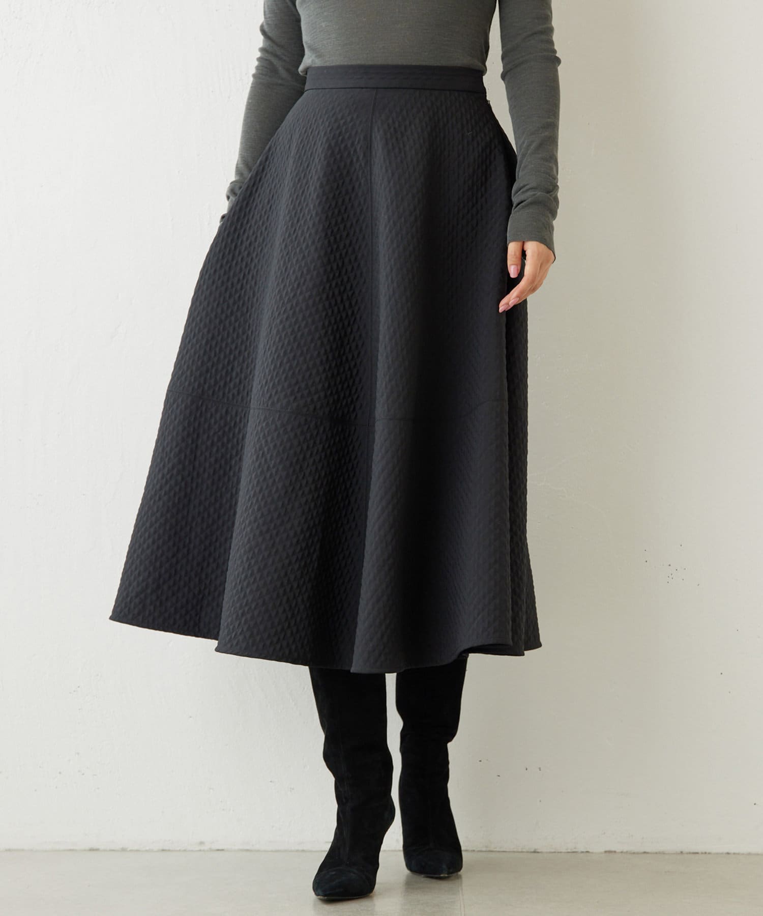 ■表面感のあるドビーキルティング素材を使用したフレアスカート。