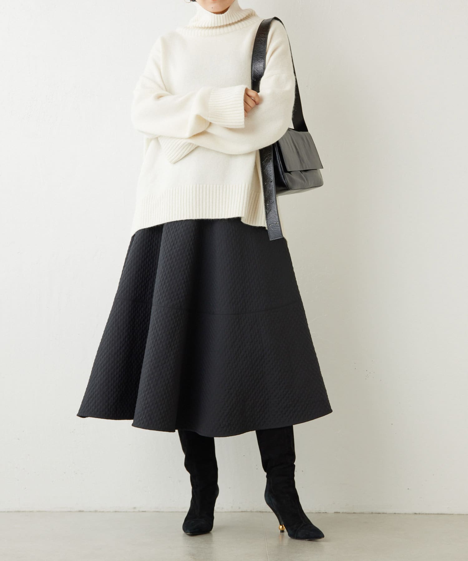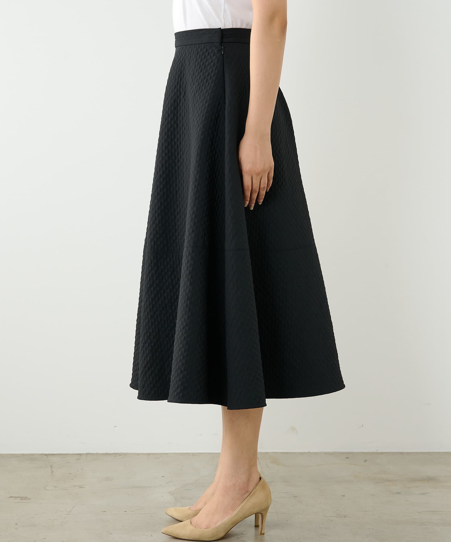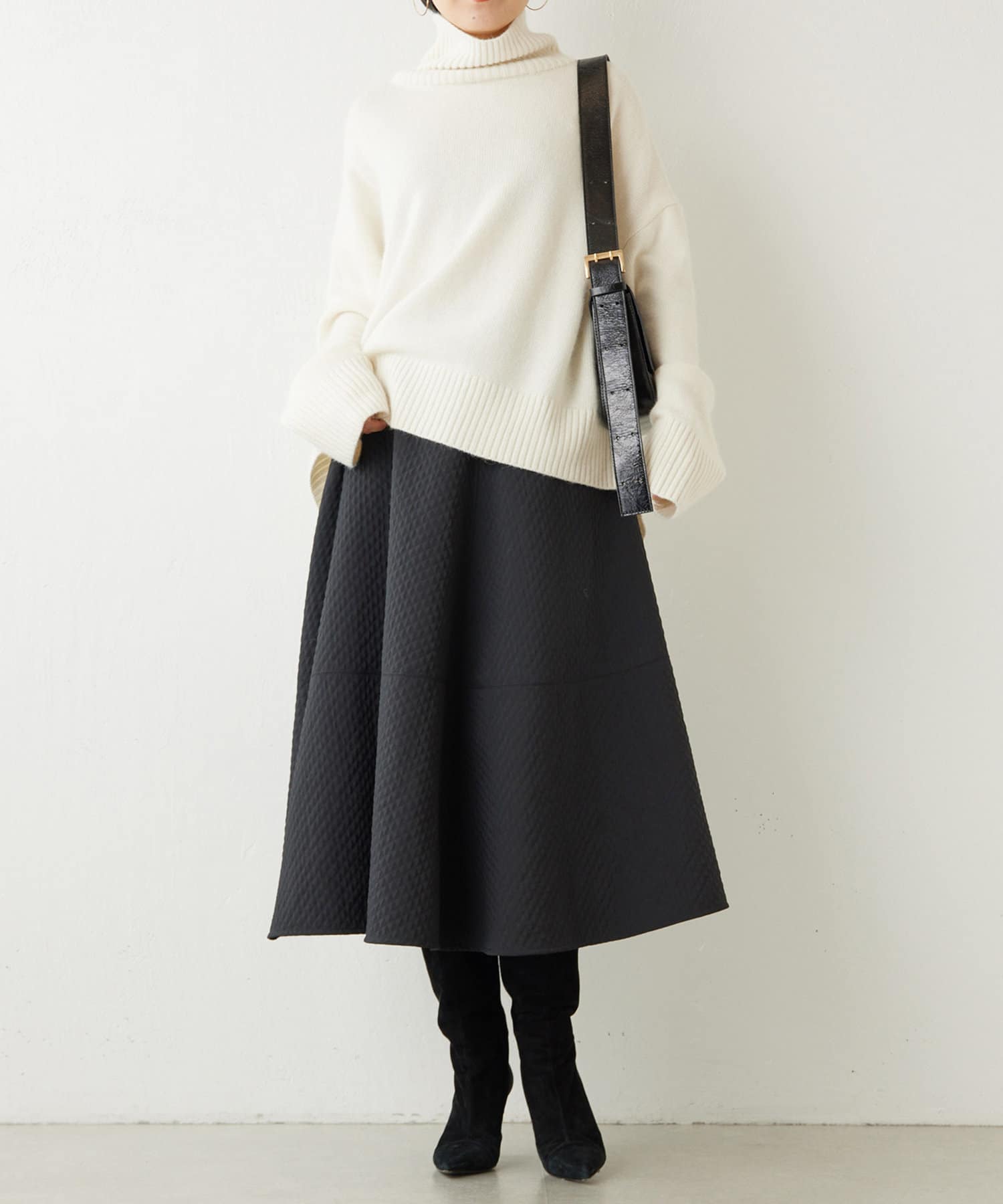 ■表面感のあるドビーキルティング素材を使用したフレアスカート。