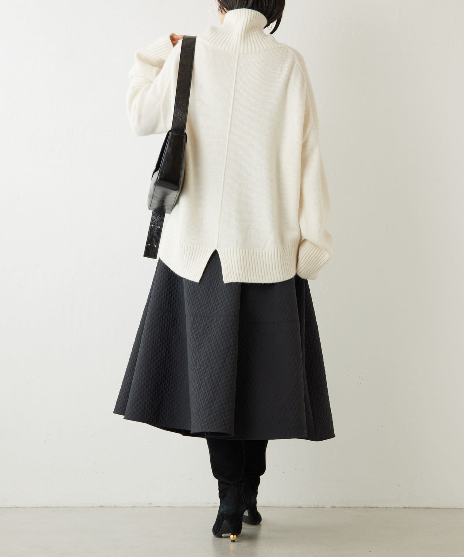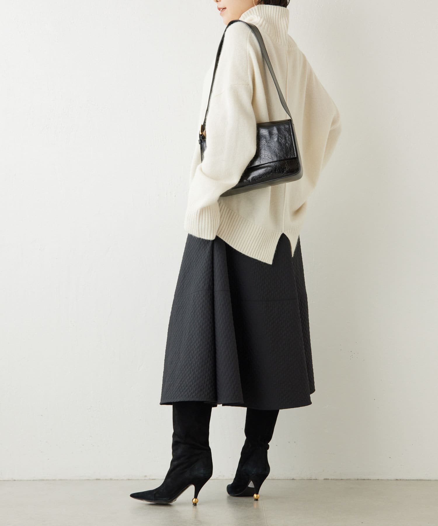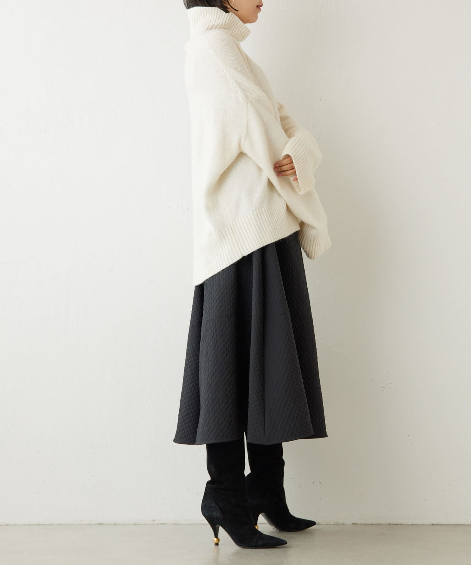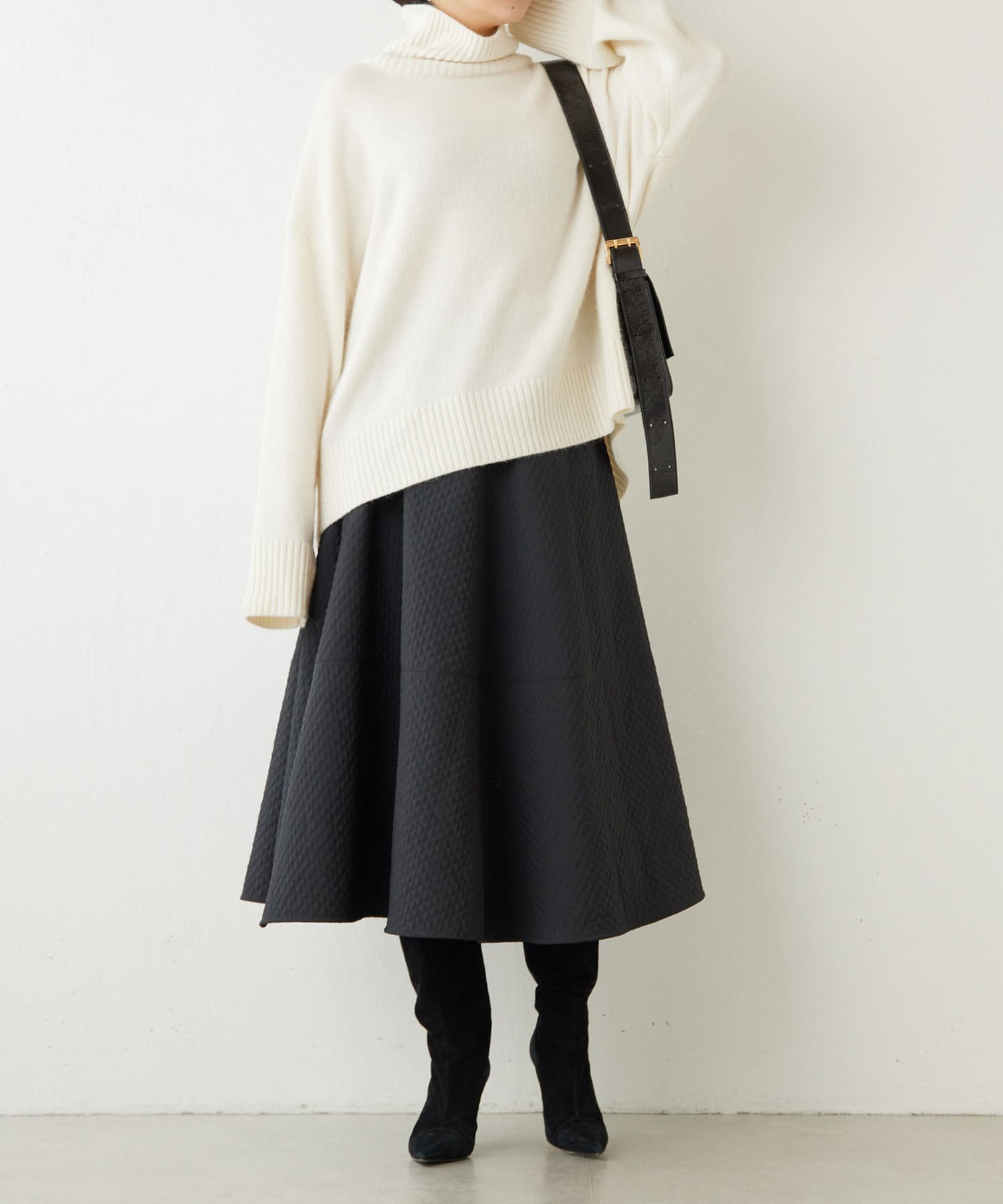 ■表面感のあるドビーキルティング素材を使用したフレアスカート。
