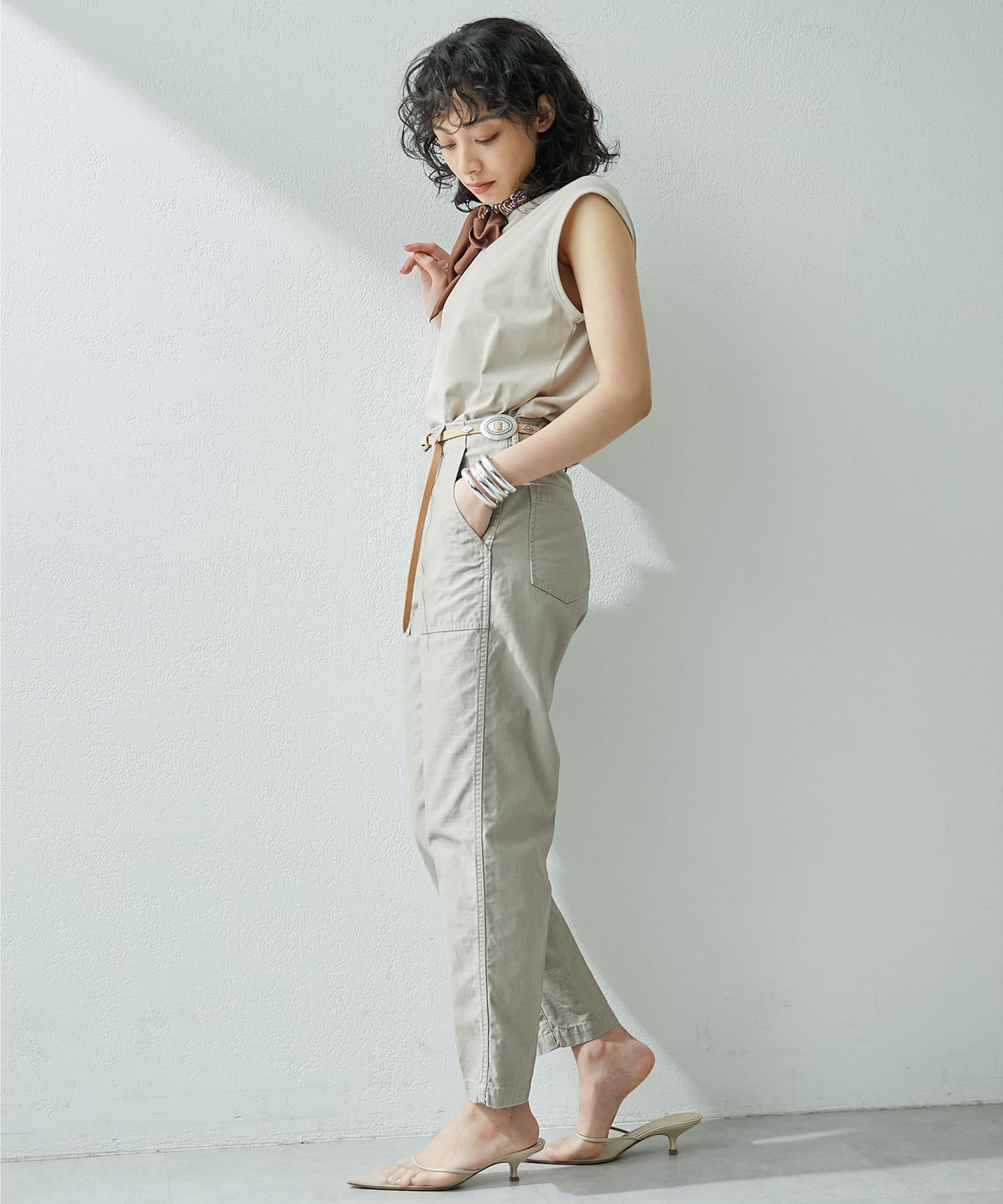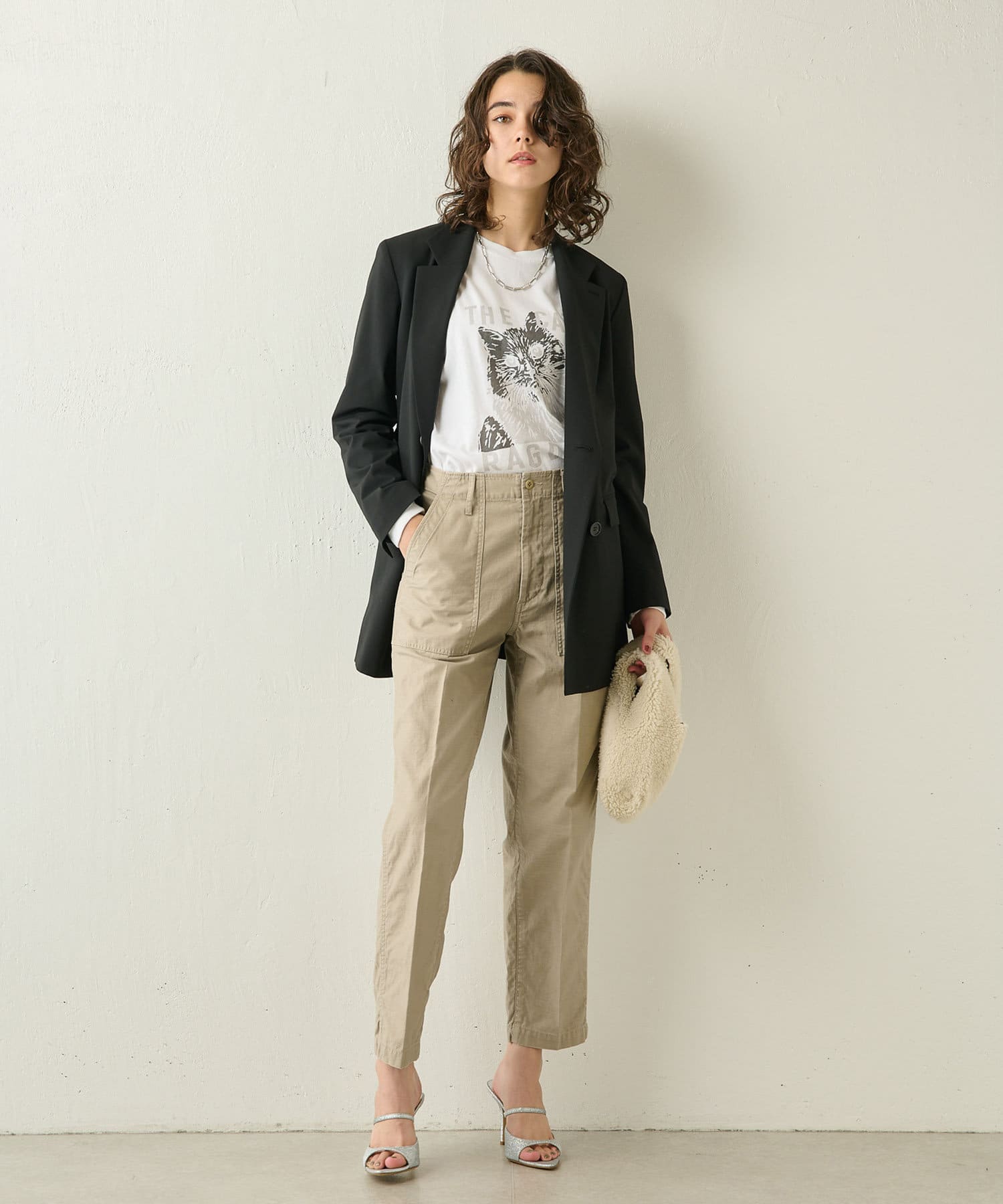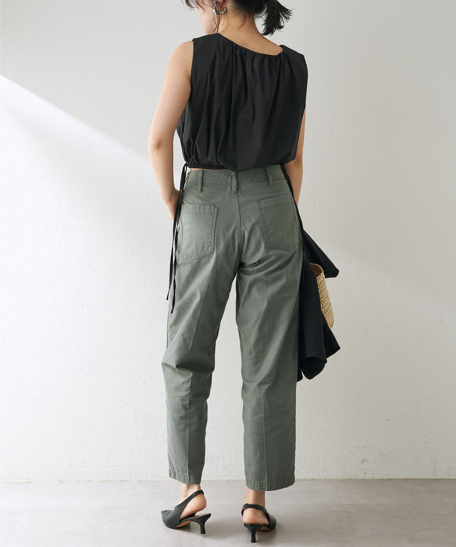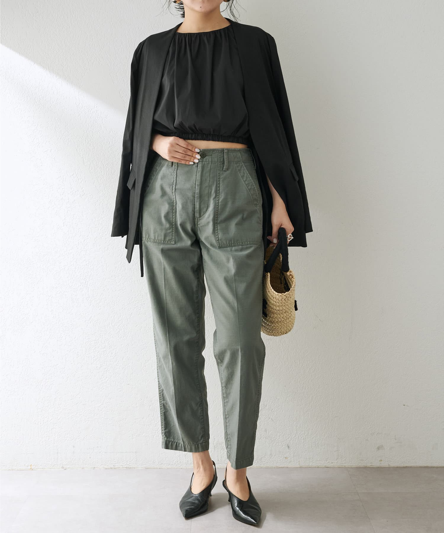 ■程よくゆとりがありつつ、テーパードのきれいめシルエットですっきりと仕上げた一着。