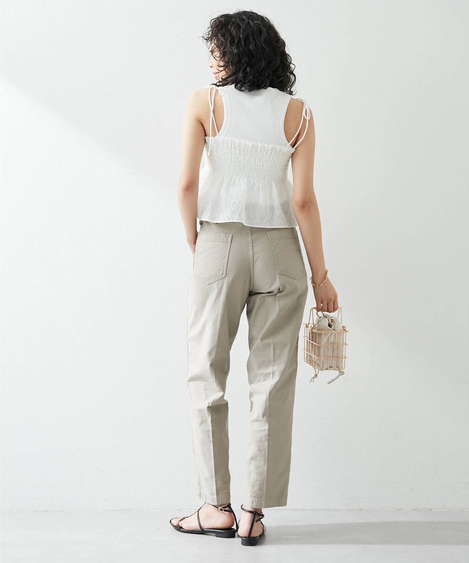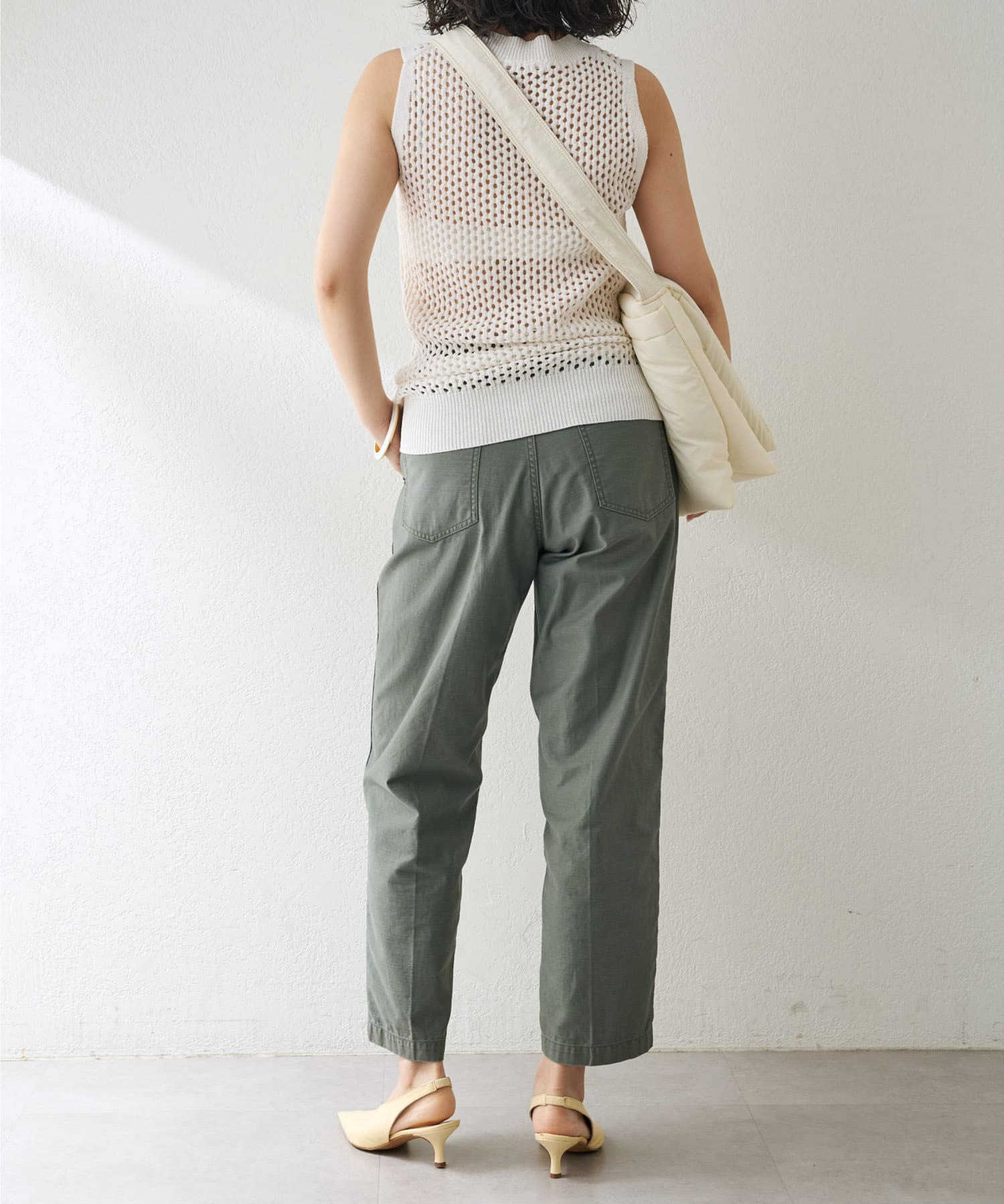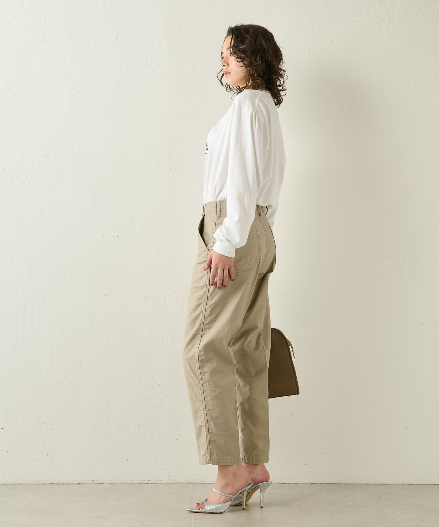 ■程よくゆとりがありつつ、テーパードのきれいめシルエットですっきりと仕上げた一着。
