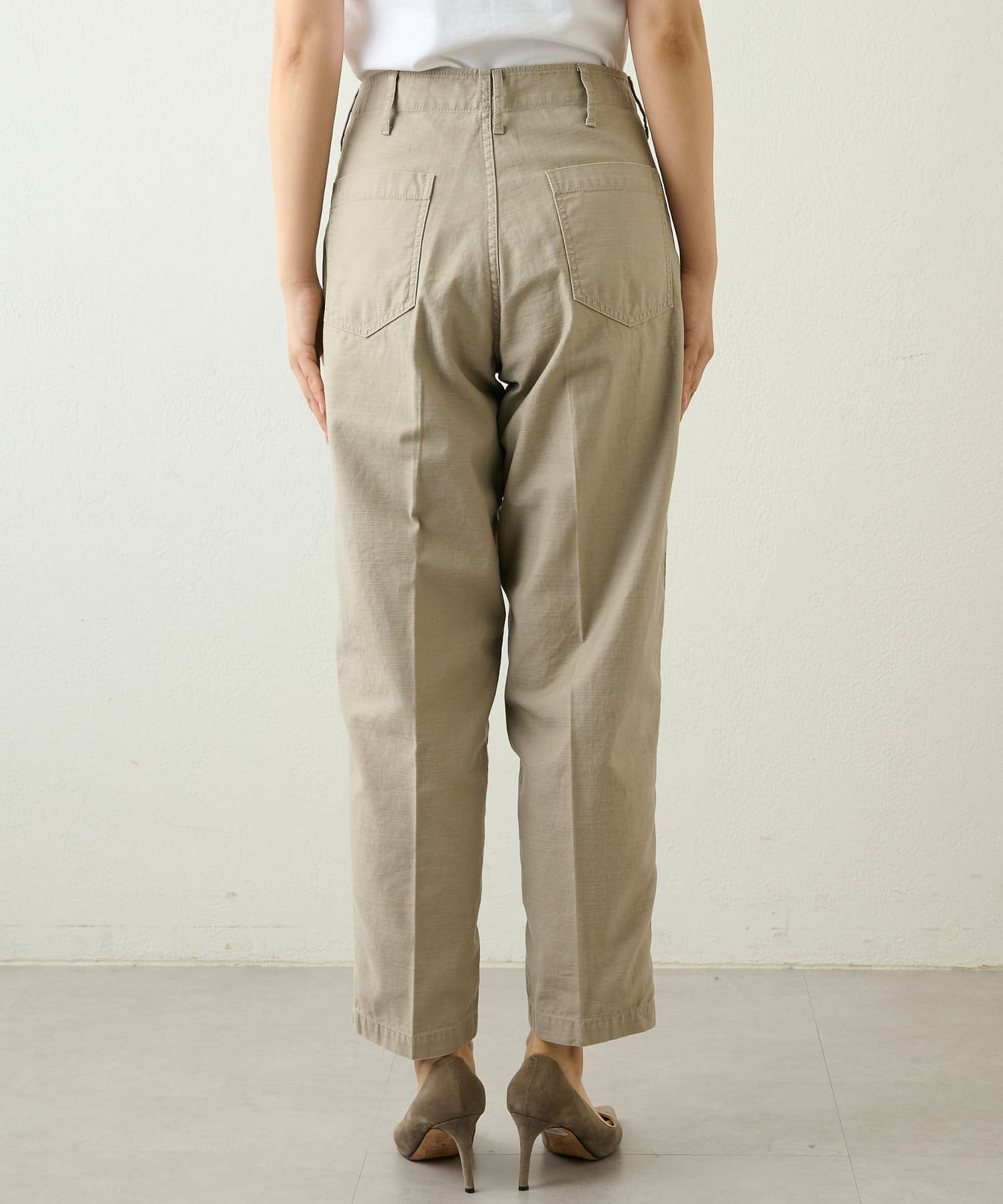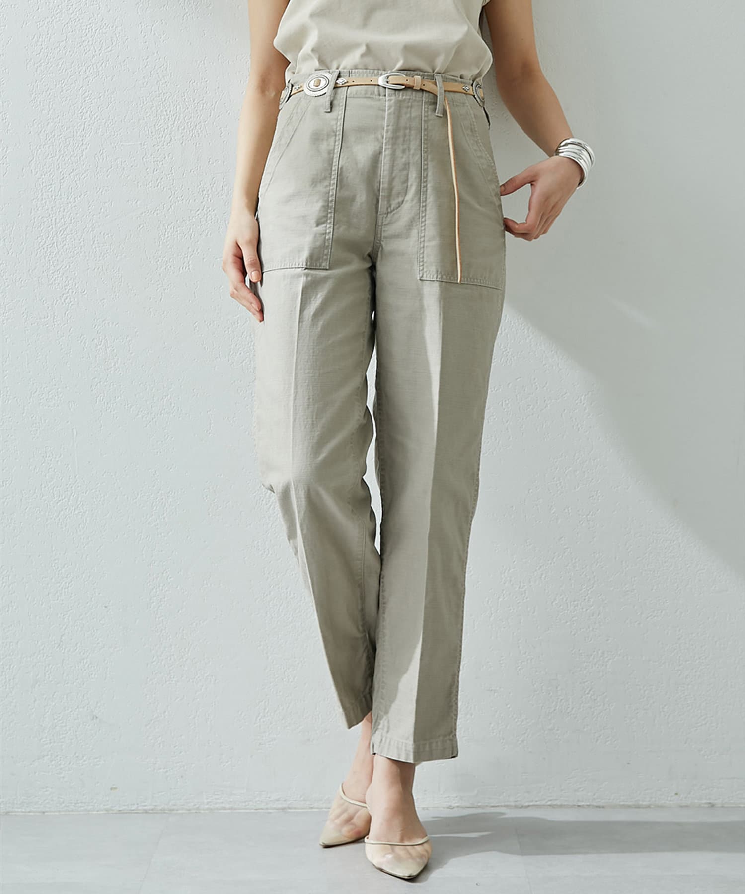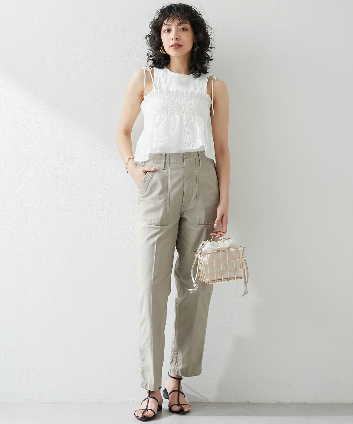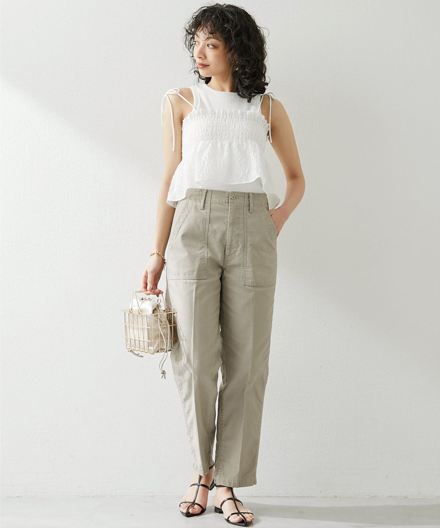 ■程よくゆとりがありつつ、テーパードのきれいめシルエットですっきりと仕上げた一着。