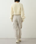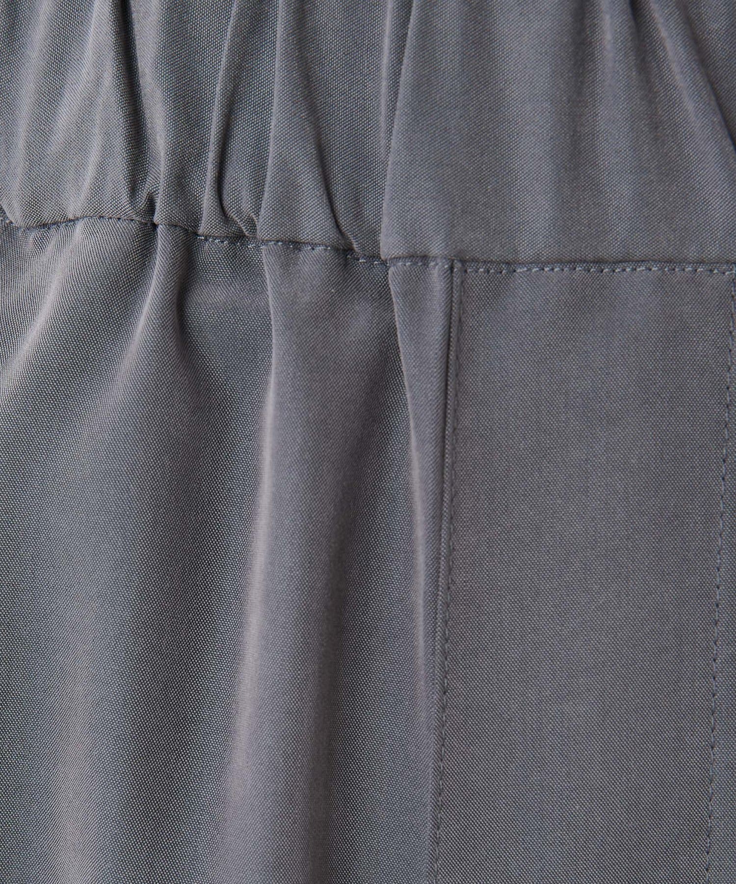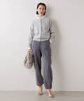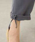 気になるお尻や太ももの張りをカバーしてくれるサイズ感と、ウエストゴム仕様の楽な着心地もポイントです。裾は紐でシルエットを変えていただけますが、絞っていただいて足首あたりが見えると女性らしさが出るのでおすすめです。
